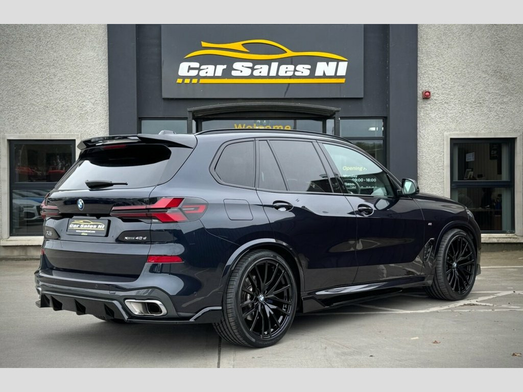 2024 BMW X5 40D M SPORT XDRIVE 347 BHP 1 Owner from new, 3.0 Diesel Model, Covered 15ik miles, Finished in Carbon Black, This Example comes equipped with £19,095 worth of factory extras, Key Features include: Glass Sky Lounge Panoramic Sunroof 22'' Upgraded alloy wheels with premium Hankook Tyres (£2,200 Optional extra) Adaptive Air Suspension Rear Privacy glass & Acoustic Glazing Front and Rear Parking sensors 360* Parking Camera Comfort Package Comfort Plus Package BMW Individual Leather Interior Leather Multifunctional steering wheel Paddle shift Heated and Ventilated front seats Rear Heated seats Heated steering wheel Electrically adjustable 1st & 2nd Row Seating Massaging Front Seats Dual Climate control Heated and Ventilated cup holders Technology Plus Package Harman Kardon Sound System Virtual cockpit DAB Radio / Bluetooth / Sat Nav Apple / Android Car Play Travel and Comfort system Additional storage compartment 3rd Row Seating Electronic Split Tailgate Drive Mode Select ISOFIX Child seat points And so much more... Call today to arrange a test drive Tailored finance packages available to suit your needs (Excludes ROI) Comprehensive warranty on all cars Trade ins welcome Delivery to North and South of Ireland if required 20in Alloy Wheels - M Star-Spoke Style 7, ABS - Anti Lock Braking System, Active Protection, Adaptive M Suspension, Air Conditioning - Automatic with 2.5 Zo, Airbags - Driver - Front Passenger- Rear, Alarm System, Ambient Interior Lighting, Armrest - Front and Rear Integrated into, Attentiveness Assistant, Automatic Hold Function, Automatic Tailgate Operation, BMW ConnectedDrive Online Services, BMW Live Cockpit Plus, Brake System, Centre Armrest - Rear - Foldable with 2 , Closing System with Central Locking, Comfort Access, Cruise Control, DAB Tuner, Door Pockets - Front and Rear, Double-Wishbone Front Axle, Driving Experience Switch, EPS - Electric Power Steering with Servo, Electric Memor