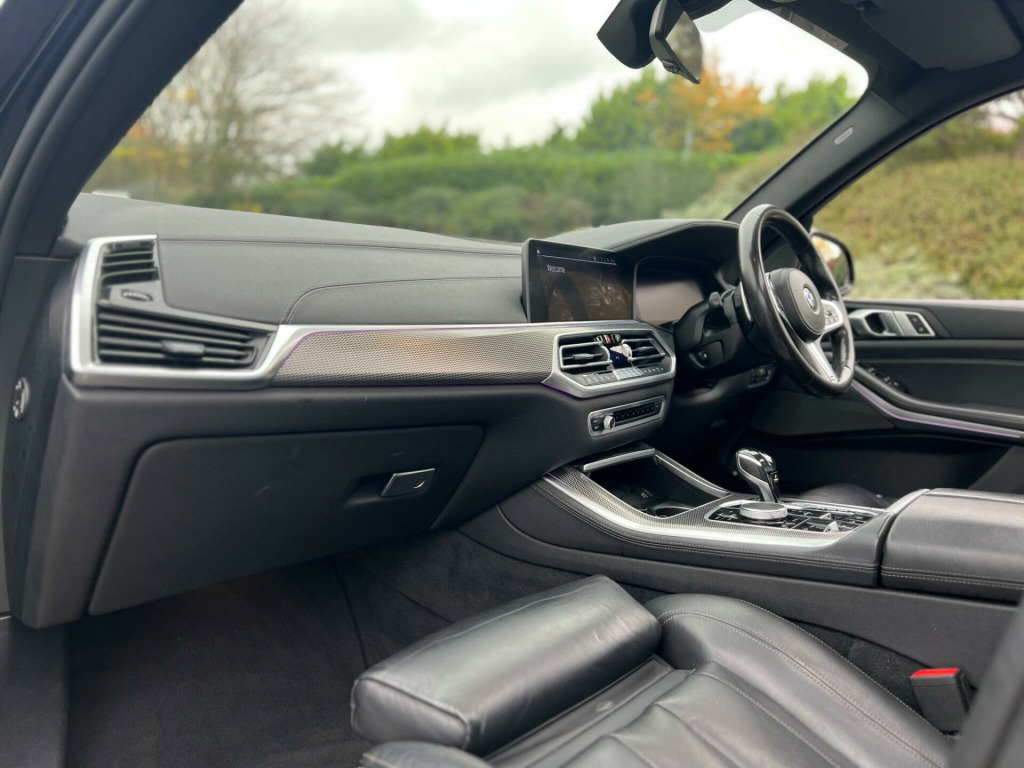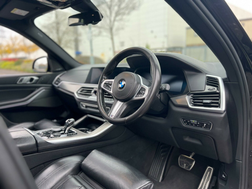 2019 BMW X5 3.0 45e 24kWh M Sport Auto xDrive Euro 6 (s/s) 5dr in Black. Only 52000 warranted miles on the clock. Comes with a 12 Month Warranty!! MOT till 16th June 2026. Only 2 previous owners from new. Full BMW Service History Available: Just been serviced by BMW. Car drives well with no mechanical faults. Full V5 available. Comes with a good spec including: Sky Lounge Panoramic Glass Sunroof, M Sport Plus Package, Comfort Package, Electric Perforated Vernasca Leather Seats, Heated Seats, Sat Nav, Harman Kardon Surround Sound System, Technology Package, Headlight - Adaptive LEDs, Leather Steering Wheel, CD/Radio/AUX, Bluetooth, AC/Climate Control, Electric Windows, Electric Mirrors, Alloy Wheels, Heated & Cooled Cup Holders, Cruise Control, Automatic Headlights, Privacy Glass, Cruise Control, Central Locking... Nationwide Delivery Available. P/X Welcome. ULEZ compliant. HPI Clear. Any questions don't hesitate to contact us on 07443456706. WhatsApp available as well gb hard disc drive hdd memory, 20in alloy wheels - m light star-spoke style 740 m bicolour with mixed tyres and run flat tyres, acoustic protection for pedestrians, active air stream kidney grille, active guard plus, adaptive 2-axle air suspension, adaptive air flap control bar - high-gloss black, air conditioning - automatic with 2.5 zone control, airbags - driver - front passenger- rear and side, alarm system - thatcham 1 with remote control and engine immobiliser, ambient interior lighting, armrest - front and rear integrated into door trim, attentiveness assistant, automatically dimming rear view mirror, bmw connected package professional, bmw connecteddrive online services, bmw gesture control, bmw individual high-gloss shadowline, bmw individual roof rails high-gloss shadow line, bmw legal emergency call, bmw live cockpit professional, bmw teleservices, brake force display, brake system, brake-pad wear indicator, centre armrest - rear - foldable with 2 cupholders and storage compartment, centre console includes storage compartment, centre lock switch - driver and front passenger door, charging flap located on the front left side, child seat isofix attachment - outer rear seats - includes top tether, closing system with central locking, compartment in front of cupholder, crash sensor - activating central locking release - hazard warning lights - fuel cut off - interior lighting and activation of the safety battery clamp, cruise control with brake function, cup holders - front x2 and rear x2, dab tuner, dsc - dynamic stability control - stabilises the vehicle in extreme situations - controls traction, daytime running lights - led, deformation zones - front and rear, door pockets - front and rear, door sill finishers with illuminated - bmw designation - front and rear, door sill inlays - bmw m designation illuminated, drive performance control with eco pro - comfort and sport, dynamic brake lights with led technology, eps - electric power steering with servotronic, electric windows - front and rear with open-close fingertip control - anti-trap facility and comfort closing function, electrical steering column with adjustable height and length, electro-mechanical parking brake with automatic drive-away release and auto-hold function, enhanced bluetooth telephone preparation with wireless charging, exhaust tailpipes - single - left and right - chrome, expanded exterior mirror package, exterior mirror housing - body colour, exterior mirrors - electrically adjustable - automatic parking function - heated and drivers anti-dazzle, favourite buttons, first aid kit and warning triangle, follow me home headlight function, footwell lights - front, front grille bars - pearlescent chrome, head airbags - for first and second row seats, head restraints - front anti-whiplash, headlining - anthracite, heated windscreen washer jets, hifi loudspeaker system, instrument panel in sensatec, interior light - rear centre, interior trim - aluminium tetragon, knee airbag, led fog lights, led headlights, led rear lights, light inside glove compartment, lockable glove compartment, locking wheel bolts, luggage compartment - light, luggage compartment floor panel with integral storage tray, m aerodynamic bodystyling, m designation on front side panels - left and right, m leather steering wheel, m specific floor mats, m specific key, m specific pedals, m specific steering wheel, m sport braking system, m sport package, make-up mirror lights, mechanical childproof lock - rear doors, multi-function controls for leather steering wheel, multifunctional hooks, non smokers package, obc - on board computer, oil sensor for level and grade, outer and centre air intakes on front bumper - high-gloss black with pearlescent chrome finish, pdc - park distance control - front and rear, parking assistant, passenger seat airbag deactivation - front, passenger seat occupancy sensor for driver and passenger side, passive protection for pedestrians, power sockets 12v - 2x centre console - 1x luggage compartment, rain sensor with automatic headlight activation and windscreen wiper control, reading lights - front, safety battery - terminal clamp, seat adjustment - front electric with driver memory, seat back with flap pocket, seat belts front and rear - seat belt tensioner - front and outer rear seats - belt force limit, seat heating for driver and front passenger, side elements - high gloss black, side impact protection, side window graphics - satin aluminium, speed limit display, speed limiting function, split folding rear seats 40-20-40 configuration, sport automatic transmission, sport seats for driver and front passenger, standard charge cable - 5 metres, start-stop toggle - diamond-shaped trim finisher in pearl chrome, storage tray and compartment with lid in centre console, sun visors with illuminated vanity mirrors, tpms - tyre pressure monitoring system, tailgate automatic - two part top-hinged section which can be opened separately and manual bottom-hinged sectio