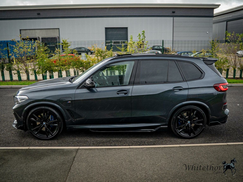 FREE DELIVERY WITHIN 200 MILES – Here we have a stunning BMW X5 45e M Sport finished in Arctic Grey Metallic. These cars come with fantastic spec from the factory, but this example also boasts a plethora of optional extras such as: Sky Lounge Panoramic Glass Sunroof – 22in BMW Individual Light V- Spoke Alloy Wheels – BMW Individual Instrument Panel Finished in Leather – Technology Package – BMW Individual Piano Black Interior Trim – Perforated Vernasca Leather in Black – Black Design Package – M Performance Bodykit – Sun Protection Glazing – and more. This car has had 4 Services in total (2 BMW, 2 Specialist) last carried out at 65,000 miles. The MOT expires July 2026. 3 Month £2000 Claim Limit Warranty is included with the sale but the option to upgrade to a 12M, 24M, & 36M £5000 Claim Limit Nation Wide Premium Autoguard Warranty with Breakdown Cover is available. Multiple Finance Options, Competitive Part Exchange Prices. All Cars Are HPI, MotorCheck & Experian Clear. Further Vehicle Delivery Options Also Available. All Rights Reserved - Whitethor cars exercise all reasonable care and skill in providing you with vehicle information and data. The specification is attained through HPI, Experian & Autotrader VRM. Options Sold as packs may be shown individually, spec check is a guide so please contact us or physically verify any info that is crucial.