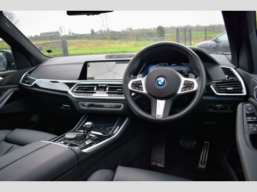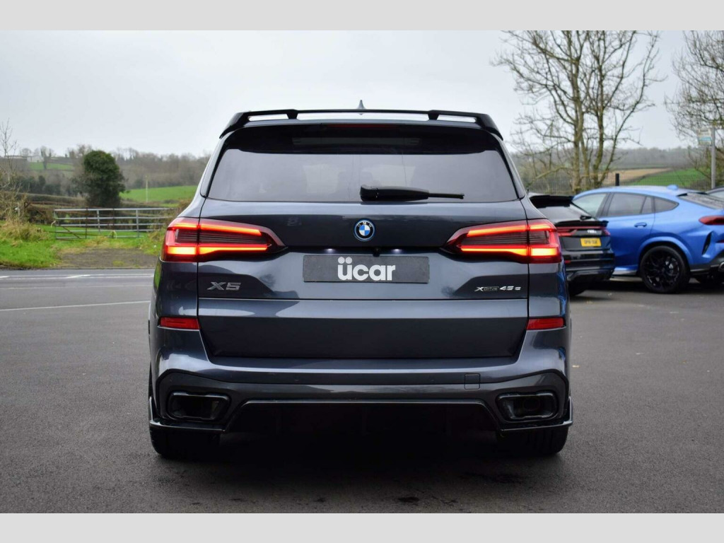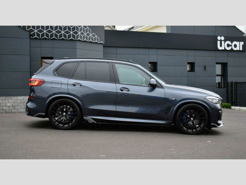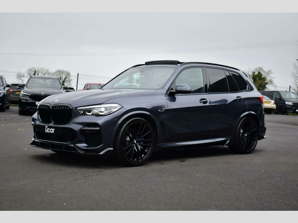 2021 BMW X5 3.0 xDrive 45E M-Sport Auto in Arctic Grey, covered 27k Miles. Comes with a Full Service History & 2 Keys. Gloss Black Aero Kit , Sky Lounge Panoramic Sunroof , Air Suspension, M Sport Pro Package, Adaptive LED Headlights, High Beam Assist , Reverse Camera, Electric Memory Seating , Heated Leather Seats , Parking Assistant Plus System , Wireless Charging , Electric Tailgate , Privacy Glass etc , Fitted with Brand New 22 Alloys (optional extra £1695)
