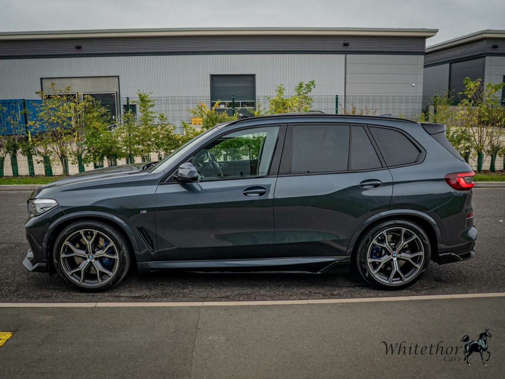 FREE DELIVERY WITHIN 200 MILES – Here we have a stunning BMW X5 3.0 45e 24kWh M Sport Auto xDrive Finished in Arctic Grey Metallic with Black Vernasca Leather Interior. Being the M-Sport this comes with a fanstic specification. On top if this it boasts: Full M Peroformance Bodykit (Gloss Black Front Splitter – Side Skirts – Rear Diffuser – Spoiler and Kidney Grills) – 21 M Light Alloy Wheels Y-Spoke 741 – Sun Protection Glazing – Metallic Paintwork – M Seatbelts and more. It also benefits from ceramic coated paintwork for added protection. The car comes with 4 Services (3 BMW and 1 Specialist) Last carried out on 56k, MOT Valid until 01/02/2026, 3 Month £2000 Claim Limit Warranty is included with the sale but the option to upgrade to a 12M, 24M, & 36M £5000 Claim Limit Nation Wide Premium Autoguard Warranty with Breakdown Cover is available. Multiple Finance Options, Competitive Part Exchange Prices. All Cars Are HPI, MotorCheck & Experian Clear. Further Vehicle Delivery Options Also Available. All Rights Reserved - Whitethor cars exercise all reasonable care and skill in providing you with vehicle information and data. The specification is attained through HPI, Experian & Autotrader VRM. Options Sold as packs may be shown individually, spec check is a guide so please contact us or physically verify any info that is crucial.
