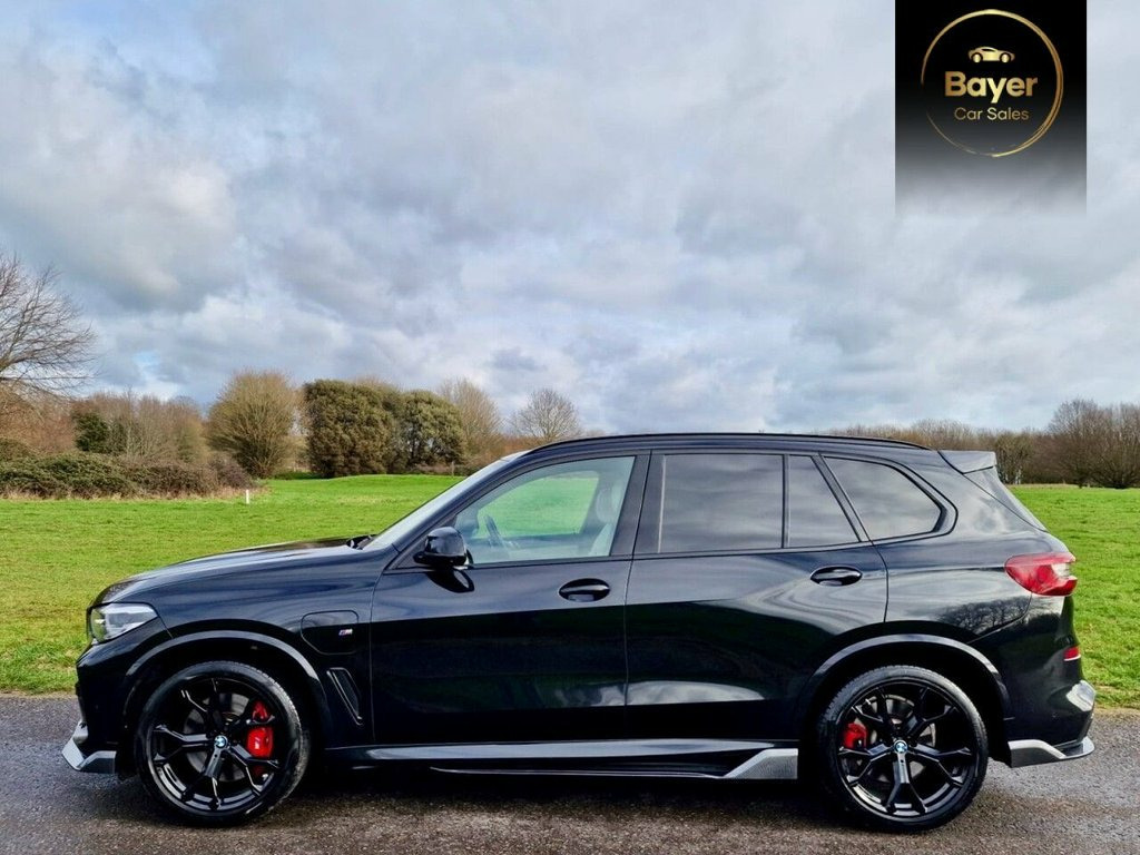M PERFORMANCE STYLE BODY KIT IN CARBON FIBRE PLUS AN EXCEPTIONALLY HIGH LEVEL OF SPECIFICATION INCLUDING M SPORT PRO PACKAGE + TECHNOLOGY PACKAGE PLUS This 2021 BMW X5 45e M Sport is a superb example, having been owned by just one careful keeper from new. This impressive plug in hybrid SUV boasts a powerful 3.0 litre petrol engine combined with electric power, delivering an exhilarating 0-60mph time of just 5.6 seconds. Its four wheel drive system ensures confident handling in all conditions, while the Euro 6 emission class reflects its modern efficiency. The M Sport trim enhances its sporty appeal, and it comes equipped with a desirable Technology Plus Pack, featuring adaptive cruise control, a head up display, and front and rear parking sensors. Further enhancing its practicality and technology, this X5 includes an electrically folding towbar with a substantial towing weight of 2700 kg, making it ideal for towing. The Parking Assistant Plus system offers a 360 degree camera and parking sensors for effortless manoeuvring. Visually, the vehicle stands out with its 21 inch M Light Y-spoke style 741 M Bicolour alloy wheels fitted with run flat tyres. The M Sport Pro Package further refines its dynamic character, setting this BMW X5 apart with its blend of performance, technology, and premium features. 20GB Hard Disc Drive HDD Memory, 20in Alloy Wheels - M light Star-Spoke S, 21in Alloy Wheels - M Light Y-Spoke Styl, ABS - Anti Lock Braking System, AC Fast Charge Cable - 5 Metres, Acoustic Protection for Pedestrians, Active Air Stream Kidney Grille - High-G, Active Guard Plus, Adaptive 2-Axle Air Suspension, Adaptive Air Flap Control Bar - High-Glo, Air Conditioning - Automatic with 2.5 Zo, Airbags - Driver - Front Passenger- Rear, Alarm System - Thatcham 1 with Remote Co, Ambient Interior Lighting, Armrest - Front and Rear Integrated into, Attentiveness Assistant, Automatically Dimming Rear View Mirror, Black Sapphire, BMW Connected Package Professional, BMW ConnectedDrive Online Services