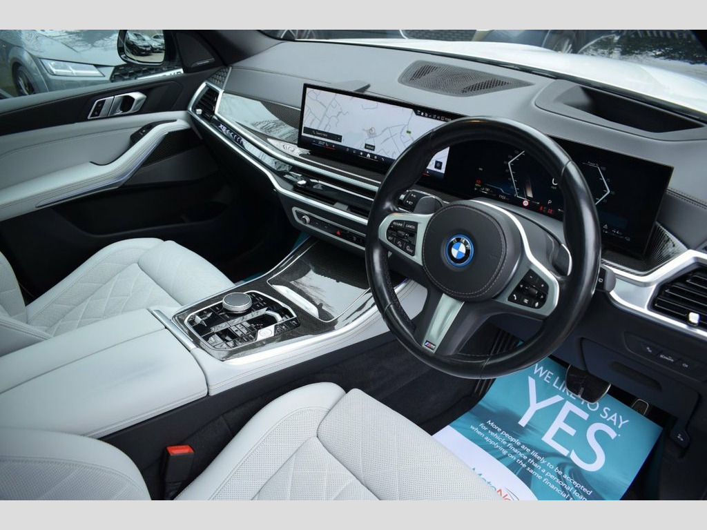 This one owner BMW X5 50e we have for sale is a stunning vehicle in a sporty colour combo complimented by a great spec including panoramic sunroof, comfort seats, 22" multi spoke wheels, head up display, harman kardon sound and more. This vehicle benefits from a full BMW service history. MINERAL GREY - SILVERSTONE FULL LEATHER INTERIOR - 22" 742M STYLE WHEELS IN GLOSS BLACK - M SPORT PLUS PACKAGE - M PERFORMANCE STYLE FRONT SPLITTER - M PERFORMANCE STYLE REAR DIFFUSER - M PERFORMANCE STYLE SIDE SKIRTS - M CARBON FIBRE WING MIRRORS - PANORAMIC GLASS SUNROOF (SKY LOUNGE) - VISIBILITY PACKAGE - TECHNOLOGY PACKAGE - COMFORT PACKAGE - HEAD UP DISPLAY - 360 SURROUND VIEW CAMERA - ACTIVE STEERING - HARMAN KARDON SURROUND SOUND - ADAPTIVE LED LIGHTS - HIGH BEAM ASSISTANT - LED DAYTIME LIGHTS - REVERSE CAMERA - POWERED BOOTLID UP & DOWN - DIGITAL COCKPIT - COMFORT FRONT SEATS - COMFORT ACCESS INCL KEYLESS GO - WIDESCREEN NAVIGATION SAT NAV - APPLE CAR PLAY - BLUETOOTH PHONE PREP - BLUETOOTH AUDIO STREAM - HEATED S/WHEEL - HEATED SEATS (FRONT & REAR) - ELECTRIC FOLDING MIRRORS - HEATED & COOLED CUPHOLDERS - REAR SIDE WINDOW BLINDS - FRONT & REAR PARKING SENSORS - DAB DIGITAL RADIO - MULTI FUNCTION S/WHEEL - CRUISE CONTROL - PRIVACY GLASS - AUTO HEADLIGHT ACTIVATION - AUTO WIPER ACTIVATION - AIR CONDITIONING - CLIMATE CONTROL - EURO 6 ULEZ COMPLIANT M PERFORMANCE STYLE BODYKIT, 21in Alloy Wheels - M Y-Spoke Bicolour S, 22in Alloy Wheels - M Double-Spoke Jet B, 22in Alloy Wheels - M Double-Spoke Bicol, 20in Alloy Wheels - M Star-Spoke Style 7, ABS - Anti Lock Braking System, Acoustic Protection for Pedestrians, Active Protection, Air Conditioning - Automatic with 2.5 Zo, Airbags - Driver - Front Passenger- Rear, Ambient Interior Lighting, Armrest - Front and Rear Integrated into, Attentiveness Assistant, Automatic Hold Function, Automatic Tailgate Operation, BMW ConnectedDrive Online Services, BMW Live Cockpit Plus, Brake System, Centre Armrest - Rear - Foldable with 2 , Closing System with Central Locking, Comfort Access, Cruise Control