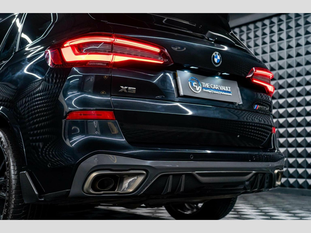 We At The Car Vault Are Proud To Offer This Stunning BMW X5 3.0 M50d Auto xDrive Euro 6 Finished In SAPPHIRE BLACK METALLIC Paint. This Vehicle Is a 1 PREVIOUS OWNER EXAMPLE SINCE BRAND NEW and Comes With a FULL BMW SPECIALIST COMPREHENSIVE SERVICE HISTORY. This Vehicle Has 2 BMW KEYS Which Consist Of 1 BMW DISPLAY KEY and 1 BMW REMOTE KEY. It Comes With The Following OPTIONAL SPECIFICATION : M PERFORMANCE CARBON BODY KIT-BMW Factory Fitted, M Sport Exhaust System, M Sport Braking System, Sky Lounge Panoramic Glass Sunroof, Visibility Pack-Laser Lights, Head Up Display (HUD), Parking Assistant Plus, Technology Package, BMW Display Key, Harman Kardon Surround Sound System, Telephony with Wireless Charging, Comfort Package, Perforated Vernasca Leather-Black, Front Electric with Driver Memory Seat Adjustment, Seat Heating for Driver and Front Passenger, Rear Seat Heating, Heated and Cooled Cupholders, Sunblinds-Rear Side Windows, Aluminium Tetragon Interior Trim, Ambient Interior Lighting, Exterior Mirrors-Electrically Adjustable/Automatic Parking Function/Heated and Drivers Anti-Dazzle, Sun Protection Glazing, 22in Alloy Wheels-M Light Double Spoke Style 742M-Gloss Black, Pan Roof