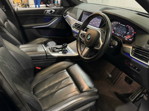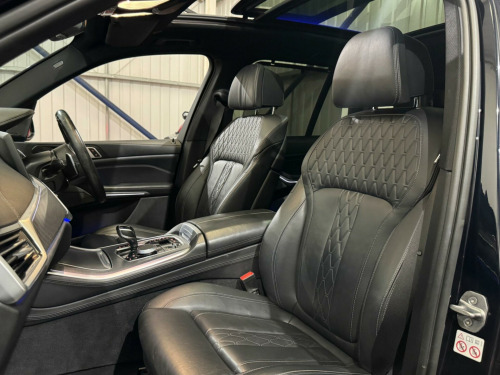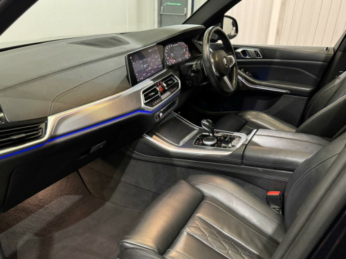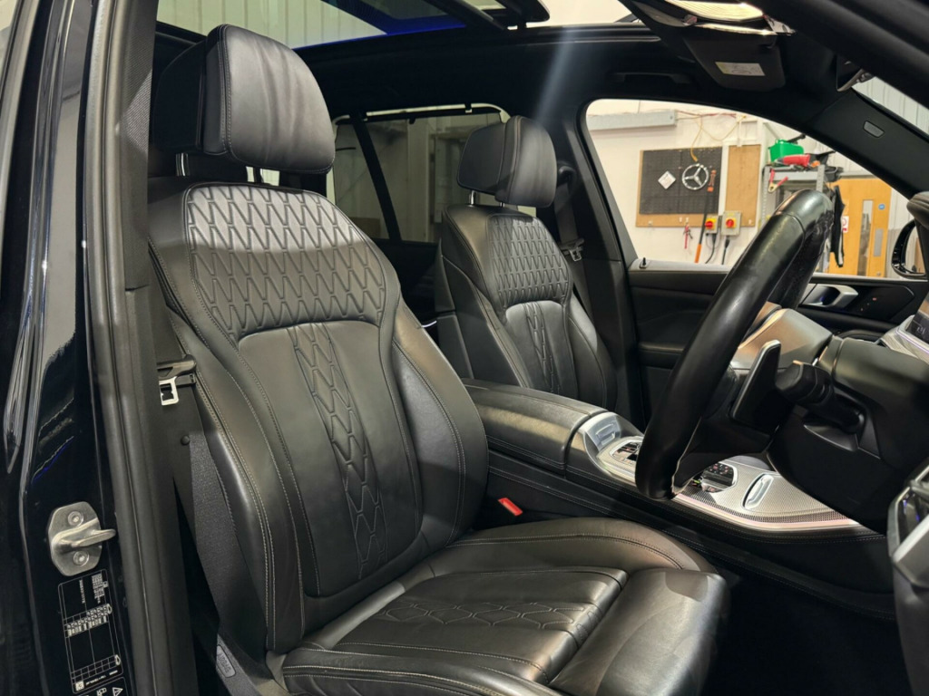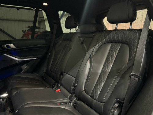 FULL SERVICE HISTORY, SKY LOUNGE PANORAMIC GLASS SUNROOF, COMFORT PACKAGE, THIRD ROW SEATING, VISIBILITY PACKAGE INCLUDING BMW LASER HEADLIGHTS, 360 CAMERA, TECHNOLOGY PACKAGE WITH HEADS UP DISPLAY, GESTURE CONTROL, HARMON KARDEN SPEAKERS, ADAPTIVE AIR SUSPENSION, FRONT & REAR PARKING SENSORS, BMW DETACHABLE TOWBAR, 22 IN ALLOY WHEELS - M LIGHT V-SPOKE STYLE 747 M BICOLOUR WITH MIXED TYRES AND RUN FLAT TYRES, SUN PROTECTION GLAZING, INTEGRAL ACTIVE STEERING, BMW INDIVIDUAL EXTENDED MERINO NAPPA LEATHER BLACK SEATS, MEMORY SEATS, HEATED SEATS, WIRELESS APPLE CARPLAY/ANDROID PLAY, BLUETOOTH, CRUISE CONTROL, A/C, AMBIENT INTERIOR LIGHTING, ELECTRONIC FOLDING/DIMMING MIRRORS, KEYLESS ENTRY/EXIT, COOLING & HEATING CUP HOLDERS, M SPORT BRAKING, M SPORT DIFFERENTIAL, M SPORT EXHAUST, 3 KEYS INCLUDING DISPLAY KEY gb hard disc drive hdd memory, 22in alloy wheels - m light v-spoke style 747 m bicolour with mixed tyres, active guard plus, adaptive air flap control bar - high-gloss black, adaptive led headlights with high-beam assistant, adaptive m suspension, air conditioning - automatic with 2.5 zone control, airbags - driver - front passenger- rear and side, alarm system - thatcham 1 with remote control and engine immobiliser, ambient interior lighting, armrest - front and rear integrated into door trim, attentiveness assistant, automatically dimming rear view mirror, bmw connected package professional, bmw connecteddrive online services, bmw emergency call, bmw gesture control, bmw individual high-gloss shadowline, bmw individual roof rails high-gloss shadow line, bmw live cockpit professional, bmw teleservices, brake force display, brake system, brake-pad wear indicator, centre armrest - rear - foldable with 2 cupholders and storage compartment, centre console includes storage compartment, centre lock switch - driver and front passenger door, child seat isofix attachment - outer rear seats - includes top tether, closing system with central locking, compartment in front of cupholder, crash sensor - activating central locking release - hazard warning lights - fuel cut off - interior lighting and activation of the safety battery clamp, cruise control with brake function, cup holders - front x2 and rear x2, dab tuner, dsc - dynamic stability control - stabilises the vehicle in extreme situations - controls traction, daytime running lights - led, deformation zones - front and rear, door pockets - front and rear, door sill finishers with illuminated m50d designation - front and rear, drive performance control with eco pro - comfort and sport, dynamic brake lights with led technology, eps - electric power steering with servotronic, electric windows - front and rear with open-close fingertip control - anti-trap facility and comfort closing function, electrical steering column with adjustable height and length, electro-mechanical parking brake with automatic drive-away release and auto-hold function, enhanced bluetooth telephone preparation with wireless charging, exhaust tailpipes - single - left and right - cerium grey, expanded exterior mirror package, exterior mirror housing - cerium grey, exterior mirrors - electrically adjustable - automatic parking function - heated and drivers anti-dazzle, favourite buttons, first aid kit and warning triangle, follow me home headlight function, footwell lights - front, head airbags - for first and second row seats, head restraints - front anti-whiplash, headlining - anthracite, heated windscreen washer jets, instrument panel in sensatec, interior light - rear centre, interior trim - aluminium tetragon, kidney grille - cerium grey, knee airbag, led fog lights, led rear lights, light inside glove compartment, lockable glove compartment, locking wheel bolts, luggage compartment - light, luggage compartment floor panel with integral storage tray, m aerodynamic bodystyling, m badge on left and right side panels - cerium grey, m leather steering wheel, m specific floor mats, m specific key, m specific pedals, m specific steering wheel, m sport braking system, m sport differential, m sport exhaust system, m50d badge on tailgate - right - cerium grey, make-up mirror lights, mechanical childproof lock - rear doors, multi-function controls for leather steering wheel, multifunctional hooks, non smokers package, obc - on board computer, oil sensor for level and grade, outer and centre air intakes on front bumper - high-gloss black with pearlescent chrome finish, pdc - park distance control - front and rear, parking assistant, passenger seat airbag deactivation - front, passenger seat occupancy sensor for driver and passenger side, passive protection for pedestrians, power sockets 12v - 2x centre console - 1x luggage compartment, rain sensor with automatic headlight activation and windscreen wiper control, reading lights - front, run-flat tyres, safety battery - terminal clamp, seat adjustment - front electric with driver memory, seat back with flap pocket, seat belts front and rear - seat belt tensioner - front and outer rear seats - belt force limit, seat heating for driver and front passenger, side elements - high gloss black, side gill - cerium grey, side impact protection, side window graphics - satin aluminium, speaker system - harman kardon, speed limit display, speed limiting function, split folding rear seats 40-20-40 configuration, sport automatic transmission, sport seats for driver and front passenger, start-stop toggle - diamond-shaped trim finisher in pearl chrome, storage tray and compartment with lid in centre console, sun visors with illuminated vanity mirrors, tpms - tyre pressure monitoring system, tailgate automatic - two part top-hinged section which can be opened separately and manual bottom-hinged section, telephony with wireless charging, third brake light - spoiler, toolkit located in luggage compartment, two tone horn, usb connection - usb type a 1.5a in cupholder - usb type c 3a in centre armrest, welcome light carpet, wifi hotspot preparation, x5 