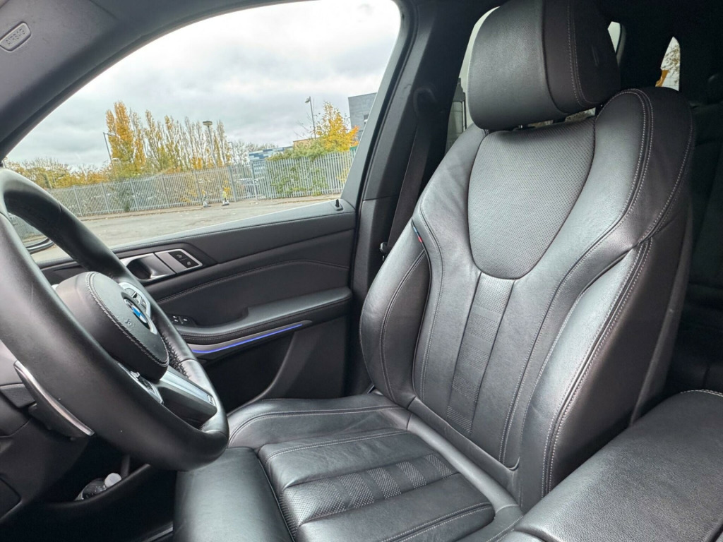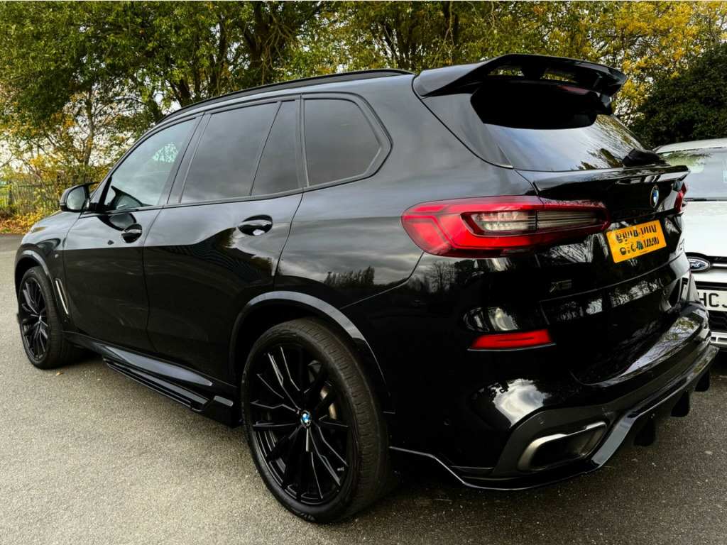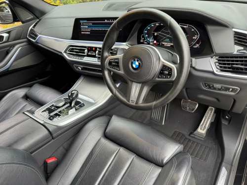 Reg no GX19HVY, Mot till:05/03/2026, just been SERVICED Low road tax of £195 for the year, 1 Former Owner from New, full BMW SERVICE HISTORY, Alloys 22 inch alloys, TECHNOLOGY PACK, BLUE CALIPERS, SUN PROTECTION GLAZING, HEATED SEATS metallic sapphire Black with Black Niro Leather Interior, This car benefits from the following features: 22-inch Alloys, M Sports Exhaust System, M Sport brake, Sun protection glazing, virtual cockpit, Auto Dip Exterior Mirrors, LED fog lights, factory M Aerodynamics package. Theinterior features of this car are: Electric adjustable seats with memory, Sports seat, Heated Driver/Passenger Seats, M leather steering wheel, Anthracite Black Headlining. The technology and systems that this car has are as follows: Parking assistance system Plus, DAB Tuner, Harman/Kardon surround sound system, Teleservices, Telephony with Wireless Charging, BMW Gesture Control, WLAN Hotspot, Active pedestrian protection. The BMW X5 will provide all the space a family is likely to need and more. It's driving a sports car in a 4x4, decent on fuel and ULez compliant, BMW X5 drivers love the mix of performance, relative economy, comfort and space, plus great build quality, Black Full leather interior, Four wheel-drive, upgraded body kit, This is a BMW X5 M50d, registered in 2019. It features a 3.0L diesel engine and a four-wheel drive drivetrain. The vehicle has very low mileage and a full dealership service history, along with a clear vehicle history check. It also boasts several features, including Driving Assistant Professional, BMW Individual Extended Merino Leather in Black-Black, Integral Active Steering, Adaptive M Suspension Professional, and acoustic glazing. offering ample room for luggage, shopping, or equipment, stock code:390490, 200gbp doc fees applies, low finance rates available on our cars in house from 9.4%, Pcp, Lease, Ballon, all available This car is used daily, please call for viewing. Specification information is supplied by CAP,HPI and may vary to the actual car. gb hard disc drive hdd memory, 22in alloy wheels - m light v-spoke style 747 m bicolour with mixed tyres, active guard plus, adaptive air flap control bar - high-gloss black, adaptive led headlights with high-beam assistant, adaptive m suspension, air conditioning - automatic with 2.5 zone control, airbags - driver - front passenger- rear and side, alarm system - thatcham 1 with remote control and engine immobiliser, ambient interior lighting, armrest - front and rear integrated into door trim, attentiveness assistant, automatically dimming rear view mirror, bmw connected package professional, bmw connecteddrive online services, bmw emergency call, bmw gesture control, bmw individual high-gloss shadowline, bmw individual roof rails high-gloss shadow line, bmw live cockpit professional, bmw teleservices, brake force display, brake system, brake-pad wear indicator, centre armrest - rear - foldable with 2 cupholders and storage compartment, centre console includes storage compartment, centre lock switch - driver and front passenger door, child seat isofix attachment - outer rear seats - includes top tether, closing system with central locking, compartment in front of cupholder, crash sensor - activating central locking release - hazard warning lights - fuel cut off - interior lighting and activation of the safety battery clamp, cruise control with brake function, cup holders - front x2 and rear x2, dab tuner, dsc - dynamic stability control - stabilises the vehicle in extreme situations - controls traction, daytime running lights - led, deformation zones - front and rear, door pockets - front and rear, door sill finishers with illuminated m50d designation - front and rear, drive performance control with eco pro - comfort and sport, dynamic brake lights with led technology, eps - electric power steering with servotronic, electric windows - front and rear with open-close fingertip control - anti-trap facility and comfort closing function, electrical steering column with adjustable height and length, electro-mechanical parking brake with automatic drive-away release and auto-hold function, enhanced bluetooth telephone preparation with wireless charging, exhaust tailpipes - single - left and right - cerium grey, expanded exterior mirror package, exterior mirror housing - cerium grey, exterior mirrors - electrically adjustable - automatic parking function - heated and drivers anti-dazzle, favourite buttons, first aid kit and warning triangle, follow me home headlight function, footwell lights - front, head airbags - for first and second row seats, head restraints - front anti-whiplash, headlining - anthracite, heated windscreen washer jets, instrument panel in sensatec, interior light - rear centre, interior trim - aluminium tetragon, kidney grille - cerium grey, knee airbag, led fog lights, led rear lights, light inside glove compartment, lockable glove compartment, locking wheel bolts, luggage compartment - light, luggage compartment floor panel with integral storage tray, m aerodynamic bodystyling, m badge on left and right side panels - cerium grey, m leather steering wheel, m specific floor mats, m specific key, m specific pedals, m specific steering wheel, m sport braking system, m sport differential, m sport exhaust system, m50d badge on tailgate - right - cerium grey, make-up mirror lights, mechanical childproof lock - rear doors, multi-function controls for leather steering wheel, multifunctional hooks, non smokers package, obc - on board computer, oil sensor for level and grade, outer and centre air intakes on front bumper - high-gloss black with pearlescent chrome finish, pdc - park distance control - front and rear, parking assistant, passenger seat airbag deactivation - front, passenger seat occupancy sensor for driver and passenger side, passive protection for pedestrians, power sockets 12v - 2x centre console - 1x luggage compartment, rain sensor with automatic headlight activation and windscree