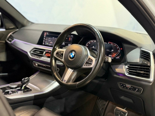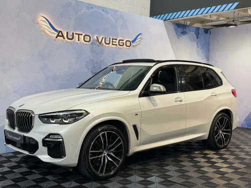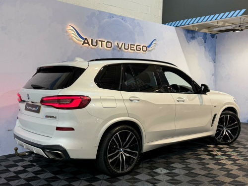 This 2019 BMW X5 M50d offers a compelling blend of performance and luxury, boasting a powerful 3.0L diesel engine and a sophisticated four wheel drive system. As a Euro 6 compliant vehicle, it meets stringent emission standards. This X5 comes equipped with a Comfort Package, featuring keyless entry, heated seats, and memory seat functions for enhanced driver convenience. The Sky Lounge Panoramic Glass Sunroof floods the cabin with natural light, and the Adaptive LED Headlights with High Beam Assistant ensure excellent visibility. For effortless manoeuvring, the Parking Assistant with rear sensors is included, complemented by Enhanced Bluetooth Telephone Preparation with wireless charging for seamless connectivity.The X5 M50d delivers an impressive 0-62mph acceleration in just 5.2 seconds, showcasing its dynamic capabilities. Its substantial 2700 kg towing weight makes it a versatile choice for various needs. The generous boot space provides ample room for luggage or equipment, further enhancing its practicality. These features collectively demonstrate how this BMW X5 M50d stands out from other vehicles in its class, offering a superior driving experience with its advanced technology and robust performance. in alloy wheels - m light double-spoke style 742 m bicolour with mixed tyres, sky lounge panoramic glass sunroof, comfort package, perforated vernasca leather - black-black, technology package, 20gb hard disc drive hdd memory, 22in alloy wheels - m light v-spoke style 747 m bicolour with mixed tyres, active guard plus, adaptive air flap control bar - high-gloss black, adaptive led headlights with high-beam assistant, adaptive m suspension, air conditioning - automatic with 2.5 zone control, airbags - driver - front passenger- rear and side, alarm system - thatcham 1 with remote control and engine immobiliser, ambient interior lighting, armrest - front and rear integrated into door trim, attentiveness assistant, automatically dimming rear view mirror, bmw connected package professional, bmw connecteddrive online services, bmw emergency call, bmw gesture control, bmw individual high-gloss shadowline, bmw individual roof rails high-gloss shadow line, bmw live cockpit professional, bmw teleservices, brake force display, brake system, brake-pad wear indicator, centre armrest - rear - foldable with 2 cupholders and storage compartment, centre console includes storage compartment, centre lock switch - driver and front passenger door, child seat isofix attachment - outer rear seats - includes top tether, closing system with central locking, compartment in front of cupholder, crash sensor - activating central locking release - hazard warning lights - fuel cut off - interior lighting and activation of the safety battery clamp, cruise control with brake function, cup holders - front x2 and rear x2, dab tuner, dsc - dynamic stability control - stabilises the vehicle in extreme situations - controls traction, daytime running lights - led, deformation zones - front and rear, door pockets - front and rear, door sill finishers with illuminated m50d designation - front and rear, drive performance control with eco pro - comfort and sport, dynamic brake lights with led technology, eps - electric power steering with servotronic, electric windows - front and rear with open-close fingertip control - anti-trap facility and comfort closing function, electrical steering column with adjustable height and length, electro-mechanical parking brake with automatic drive-away release and auto-hold function, enhanced bluetooth telephone preparation with wireless charging, exhaust tailpipes - single - left and right - cerium grey, expanded exterior mirror package, exterior mirror housing - cerium grey, exterior mirrors - electrically adjustable - automatic parking function - heated and drivers anti-dazzle, favourite buttons, first aid kit and warning triangle, follow me home headlight function, footwell lights - front, head airbags - for first and second row seats, head restraints - front anti-whiplash, headlining - anthracite, heated windscreen washer jets, instrument panel in sensatec, interior light - rear centre, interior trim - aluminium tetragon, kidney grille - cerium grey, knee airbag, led fog lights, led rear lights, light inside glove compartment, lockable glove compartment, locking wheel bolts, luggage compartment - light, luggage compartment floor panel with integral storage tray, m aerodynamic bodystyling, m badge on left and right side panels - cerium grey, m leather steering wheel, m specific floor mats, m specific key, m specific pedals, m specific steering wheel, m sport braking system, m sport differential, m sport exhaust system, m50d badge on tailgate - right - cerium grey, make-up mirror lights, mechanical childproof lock - rear doors, multi-function controls for leather steering wheel, multifunctional hooks, non smokers package, obc - on board computer, oil sensor for level and grade, outer and centre air intakes on front bumper - high-gloss black with pearlescent chrome finish, pdc - park distance control - front and rear, parking assistant, passenger seat airbag deactivation - front, passenger seat occupancy sensor for driver and passenger side, passive protection for pedestrians, power sockets 12v - 2x centre console - 1x luggage compartment, rain sensor with automatic headlight activation and windscreen wiper control, reading lights - front, run-flat tyres, safety battery - terminal clamp, seat adjustment - front electric with driver memory, seat back with flap pocket, seat belts front and rear - seat belt tensioner - front and outer rear seats - belt force limit, seat heating for driver and front passenger, side elements - high gloss black, side gill - cerium grey, side impact protection, side window graphics - satin aluminium, speaker system - harman kardon, speed limit display, speed limiting function, split folding rear seats 40-20-40 configuration, sport automatic transmission, sport seat