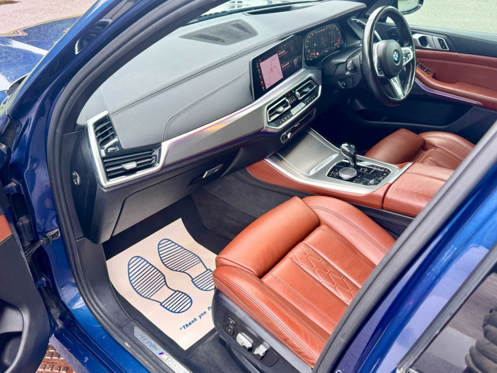 RED INDIVIDUAL LEATHER+7 SEATS+TECHNOLOGY PACK+COMFORT PACK+HEAT COMFORT PACK+HEAD UP DISPLAY+HARMON KARDON+HIGH BEAM+ADAPTIVE HEADLIGHTS+LED FOG LIGHTS+ACTIVE STEERING+HEATED ARM RESTS+HEATED AND COOLING DRINK HOLDER+REAR ELECTRIC SEATS+BODY KIT+SUN PROTECTION+HEADLINING+AIR SUSPENSION - ADAPTIVE 2 AXLE+SHADOWLINE+AMBIENT LIGHTS+MASSIVE SPEC AND BEST COLOUR COMBO+FINANCE AND PART EXCHANGE ARRANGED.This 2019 BMW X5 M50d presents an exceptional opportunity with its remarkably low mileage of just 44,000 miles for a vehicle of its age. This impressive four wheel drive SUV is powered by a potent 3.0L diesel engine, meeting Euro 6 emissions standards, and offers seating for seven passengers. Its substantial towing weight of 2700 kg makes it a capable companion for various needs. The X5 M50d is equipped with a suite of advanced features designed for comfort and performance, including Adaptive M Suspension Professional, Adaptive 2-Axle Air Suspension, and Integral Active Steering for enhanced handling. The Comfort Package adds convenience with Keyless Entry, heated seats, and memory seat functions, while the inclusion of third row seating ensures versatility for families.The performance of this BMW X5 M50d is truly noteworthy, achieving 0-62mph in a swift 5.2 seconds, a testament to its powerful engine and dynamic engineering. This acceleration figure highlights its superior performance compared to many other vehicles in its class. Furthermore, the generous boot space offers ample room for luggage or shopping, making it a practical choice for everyday life and longer journeys. The combination of its low mileage, powerful yet efficient diesel engine, advanced suspension systems, and spacious interior makes this X5 M50d a compelling proposition for those seeking a premium and capable SUV.. 20GB Hard Disc Drive HDD Memory, 22in Alloy Wheels - M Light V-Spoke Style 747 M Bicolour with Mixed Tyres, Active Guard Plus, Adaptive Air Flap Control Bar - High-Gloss Black, Adaptive LED Headlights with High-Beam Assistant, Adaptive M Suspension, Air Conditioning - Automatic with 2.5 Zone Control, Airbags - Driver - Front Passenger- Rear and Side, Alarm System - Thatcham 1 with Remote Control and Engine Immobiliser, Ambient Interior Lighting, Armrest - Front and Rear Integrated into Door Trim, Attentiveness Assistant, Automatically Dimming Rear View Mirror, BMW Connected Package Professional, BMW ConnectedDrive Online Services, BMW Emergency Call, BMW Gesture Control, BMW Individual High-Gloss Shadowline, BMW Individual Roof Rails High-Gloss Shadow Line, BMW Live Cockpit Professional, BMW TeleServices, Brake Force Display, Brake System, Brake-Pad Wear Indicator, Centre Armrest - Rear - Foldable with 2 Cupholders and Storage Compartment, Centre Console Includes Storage Compartment, Centre Lock Switch - Driver and Front Passenger Door, Child Seat ISOFIX Attachment - Outer Rear Seats - includes Top Tether, Closing System with Central Locking, Compartment in Front of Cupholder, Crash Sensor - Activating Central Locking Release - Hazard Warning Lights - Fuel Cut Off - Interior Lighting and Activation of the Safety Battery Clamp, Cruise Control with Brake Function, Cup Holders - Front x2 and Rear x2, DAB Tuner, DSC - Dynamic Stability Control - Stabilises the Vehicle in Extreme Situations - Controls Traction, Daytime Running Lights - LED, Deformation Zones - Front and Rear, Door Pockets - Front and Rear, Door Sill Finishers with Illuminated M50d Designation - Front and Rear, Drive Performance Control with ECO PRO - Comfort and Sport, Dynamic Brake Lights with LED Technology, EPS - Electric Power Steering with Servotronic, Electric Windows - Front and Rear with Open-Close Fingertip Control - Anti-Trap Facility and Comfort Closing Function, Electrical Steering Column with Adjustable Height and Length, Electro-Mechanical Parking Brake with Automatic Drive-Away Release and Auto-Hold Function, Enhanced Bluetooth Telephone Preparation with Wireless Charging, Exhaust Tailpipes - Single - Left and Right - Cerium Grey, Expanded Exterior Mirror Package, Exterior Mirror Housing - Cerium Grey, Exterior Mirrors - Electrically Adjustable - Automatic Parking Function - Heated and Drivers Anti-Dazzle, Favourite Buttons, First Aid Kit and Warning Triangle, Follow Me Home Headlight Function, Footwell Lights - Front, Head Airbags - For First and Second Row Seats, Head Restraints - Front Anti-Whiplash, Headlining - Anthracite, Heated Windscreen Washer Jets, Instrument Panel in Sensatec, Interior Light - Rear Centre, Interior Trim - Aluminium Tetragon, Kidney Grille - Cerium Grey, Knee Airbag, LED Fog Lights, LED Rear Lights, Light Inside Glove Compartment, Lockable Glove Compartment, Locking Wheel Bolts, Luggage Compartment - Light, Luggage Compartment Floor Panel with Integral Storage Tray, M Aerodynamic Bodystyling, M Badge on Left and Right Side Panels - Cerium Grey, M Leather Steering Wheel, M Specific Floor Mats, M Specific Key, M Specific Pedals, M Specific Steering Wheel, M Sport Braking System, M Sport Differential, M Sport Exhaust System, M50d Badge on Tailgate - Right - Cerium Grey, Make-Up Mirror Lights, Mechanical Childproof Lock - Rear Doors, Multi-Function Controls for Leather Steering Wheel, Multifunctional Hooks, Non Smokers Package, OBC - On Board Computer, Oil Sensor For Level and Grade, Outer and Centre Air Intakes on Front Bumper - High-Gloss Black with Pearlescent Chrome Finish, PDC - Park Distance Control - Front and Rear, Parking Assistant, Passenger Seat Airbag Deactivation - Front, Passenger Seat Occupancy Sensor For Driver and Passenger Side, Passive Protection for Pedestrians, Power Sockets 12v - 2x Centre Console - 1x Luggage Compartment, Rain Sensor with Automatic Headlight Activation and Windscreen Wiper Control, Readin. Full service history