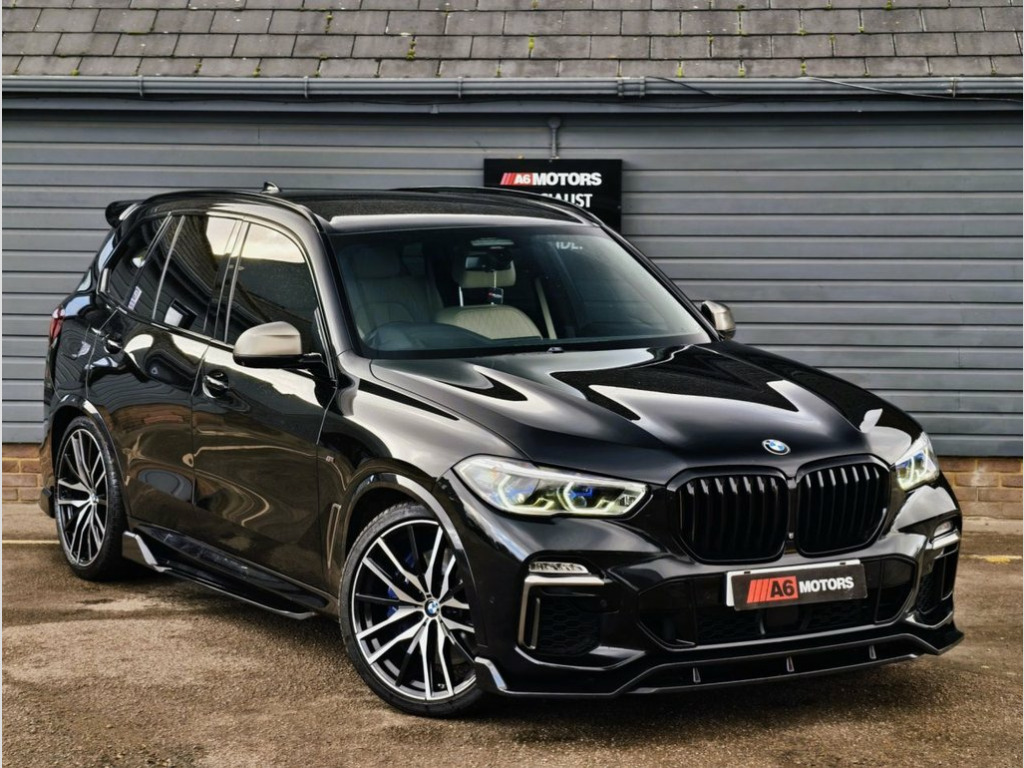 SAME DAY FINANCE AVAILABLE WITH £0 DEPOSIT. CALL OUR FINANCE TEAM FOR A QUOTATION TODAY. REQUEST A PERSONALISED VIDEO TODAY. STUNNING SAPPHIRE BLACK BMW X5 M50D M SPORT BOASTING A FULL SERVICE HISTORY & COMPLIMENTED BY A BIG FACTORY SPEC FURTHER BENEFITING FROM HAVING A M PERFORMANCE STYLE BODYKIT FITTED. THIS LOVELY EXAMPLE IS SUPPLIED HPI CLEAR & WITH A NATIONWIDE WARRANTY. GOOD CONDITION THROUGH OUT. DRIVES WELL. GOOD TYRES ALL ROUND. SPECIFICATION INCLUDES 22" ALLOY WHEELS, VISIBILITY PACK WITH LASER HEADLIGHTS, DRIVING ASSISTANT PROFESSIONAL PACK WITH ADAPTIVE CRUISE CONTROL, ADAPTIVE 2-EXLE AIR SUSPENSION, INTEGRAL ACTIVE STEERING, BMW INDIVIDUAL EXTENDED IVORY WHITE MERINO LEATHER, TECHNOLOGY PACK WITH HEADS UP DISPLAY & HARMAN KARDON SOUND SYSTEM, COMFORT PLUS PACKAGE WITH FRONT HEATED, COOLED & MASSAGE SEATS, ACOUSTIC GLAZING, SUN PROTECTION GLAZING, SAT NAV, DAB, BLUETOOTH, AMBIENT LIGHITNG & MORE. 20GB Hard Disc Drive HDD Memory, 22in Alloy Wheels - M Light V-Spoke Styl, Active Guard Plus, Adaptive Air Flap Control Bar - High-Glo, Adaptive LED Headlights with High-Beam A, Adaptive M Suspension, Air Conditioning - Automatic with 2.5 Zo, Airbags - Driver - Front Passenger- Rear, Alarm System - Thatcham 1 with Remote Co, Ambient Interior Lighting, Armrest - Front and Rear Integrated into, Attentiveness Assistant, Automatically Dimming Rear View Mirror, BMW Connected Package Professional, BMW ConnectedDrive Online Services, BMW Emergency Call, BMW Gesture Control, BMW Individual High-Gloss Shadowline, BMW Individual Roof Rails High-Gloss Sha, BMW Live Cockpit Professional, BMW TeleService