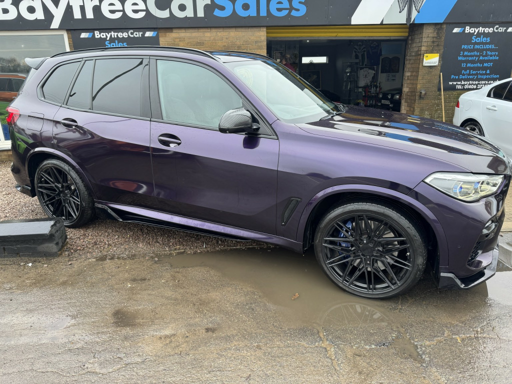 BMW X5 3.0 X5 xDrive30d M Sport finished in BMW Individual Daytona Violet Wrap (a colour reserved for the current M60i X5) (Auto), 78,000 miles, , Only £31,995, , Welcome to the sale of this truly one-of-a-kind BMW X5 M Sport. Originally finished in Alpine White, this vehicle has been professionally wrapped in BMW Individual Daytona Violet, a colour normally reserved for the flagship X5 M60i models and costing in excess of £6,200. The wrap was professionally completed by VWY Wraps of Wakefield March 2025, and they have advised the wrap has a 3 year warranty. The work came at significant expense and gives this vehicle an incredible road presence that genuinely sets it apart from any other X5 on the market. , This vehicle is further complemented by a full BMW Performance styling package including upgraded front splitter, illuminated side performance bars integrated with BMW welcome carpet lighting, rear performance diffuser and roof spoiler, creating an aggressive and high-end M Performance appearance. , The vehicle benefits from full service history and will receive a full service prior to handover. All four 22 M Competition alloy wheels will also be professionally refurbished ready for its new owner. , This X5 boasts well over £16,000 of factory options and extras, making it almost a £70,000 vehicle when new, and represents outstanding value for money today. , Key specification and optional extras include:, , ???? BMW Individual Daytona Violet Professional Wrap (VWY Wraps Wakefield), ???? Full BMW Performance Styling Package (Front splitter, side bars, rear diffuser, roof spoiler), ???? Sky Lounge Panoramic Glass Sunroof £2500, ???? Individual Comfort Quilted Leather Memory Seats £2400, ???? Fine Wood Fineline Stripe Interior Trim £600, ???? Individual Leather Covered Dashboard £1300, ???? BMW Technology Package £1900, ???? Heated and cooled drinks holders, Heads Up Display, ???? Gesture Control, ???? Drive Recorder System, ???? Harman Kardon Premium Surround Sound System, ???? BMW Laserlight Headlights £2000, ???? 22 M Competition Alloy Wheels (being fully refurbished), ???? Two Axle Air Suspension £1200, ???? Power Deployable Towbar £900, ???? Sun Protection Privacy Glazing £400, ???? Anthracite Headlining £400, ???? Driving Assistant Professional Package £2300, ???? BMW Display Key plus Spare Key, , This is a genuinely unique X5 that combines exceptional styling, rare specification, high-end performance options and premium comfort technology. The combination of the Individual colour wrap, M Performance styling, and extensive factory extras makes this one of the most distinctive X5 models available anywhere. , Because we are a RAC-approved dealer, all our vehicles come with:, ✔ Free RAC breakdown cover, ✔ Free RAC history check, ✔ 12 months MOT, ✔ Full service pre handover, , Nationwide delivery is available. , Call 01406 373474 for more information (even out of hours), , Please also feel free to contact us outside of hours to discuss this vehicle further.