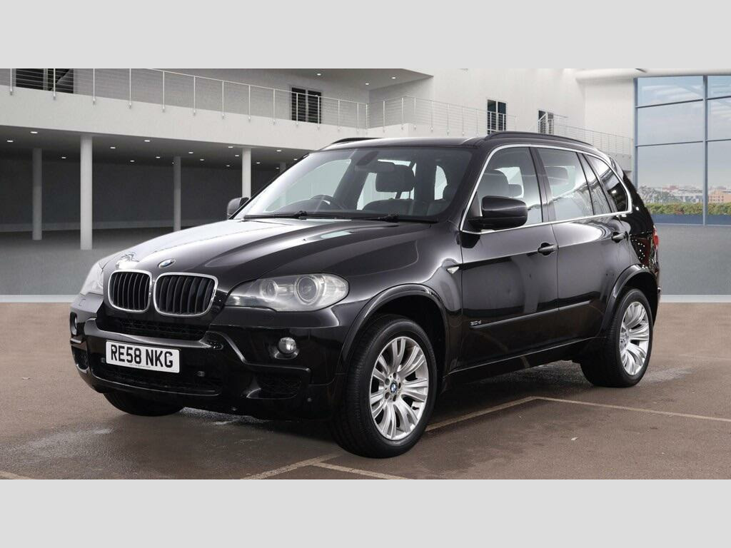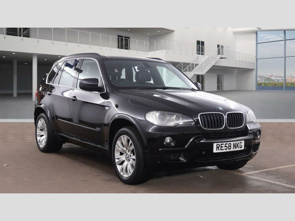 Please note the car has not arrived in from the BMW main dealership as yet it will be here in the next day or so. THIS BMW X5 3.0d M Sport SUV 5dr Diesel Auto 4WD Euro 4 (235 ps) 7 SEATER AUTOMATIC 4X4 LOOKS GREAT IN EBONY EBONY BLACK COACHWORK WITH EBONY FULL LEATHER HEATED ELECTRIC SEATS WITH DARK BAMBOO WOOD TRIM TO THE DASH AND DOOR CARDS VERY SMART. A RECENT SERVICE UNDER 2000 MILES AGO WITH A GOOD SERVICE HISTORY. THE 4X4 HAS PAS, STEREO RADIO WITH CD PLAYER, COLOUR SCREEN FACTORY SAT NAV WITH BLUETOOTH TELEPHONE CONNECTION, DUAL ZONE CLIMATE CONTROL AIR-CONDITIONING, REMOTE CONTROL CENTRAL LOCKING SYSTEM, ZENON HEADLIGHTS, FRONT & REAR PARKING SENSORS 19 INCH ALLOY WHEELS WITH GOOD TYRES. THERE ARE 2 sets REMOTE KEYS ALL THE BOOKS AND MANUALSThis 2008 BMW X5 d M Sport boasts a clear vehicle history, offering peace of mind for its next owner. This capable four wheel drive model is powered by a robust 3.0 litre diesel engine, delivering strong performance with an impressive 0-62mph acceleration time of just 8.1 seconds. Inside, you'll find a well appointed cabin featuring heated front seats for comfort, automatic air conditioning for climate control, and the SatNav Professional system to guide your journeys. Entertainment is catered for with a USB and audio interface, alongside an MP3 compatible 6CD changer conveniently located in the glovebox. The BMW X5 d M Sport stands out with its substantial towing weight of 3500 kg, making it a practical choice for those needing to tow. Furthermore, its generous boot space ensures ample room for luggage or equipment, surpassing many vehicles in its class. This particular model also benefits from a low insurance group, which can help to reduce running costs. These combined highlights demonstrate the X5's superior blend of performance, practicality, and value. seater model, leather- nevada- black, heated front seats, satnav professional, mp3 compatible 6cd changer - glovebox, usb & audio interface, bluetooth telephone preparation, xenon headlights, automatic air conditioning, heating & ventilation for third row seats, 6 speaker loudspeaker system, auto dimming rear view mirror, dark bamboo wood trim, delete sports suspension, 19in v spoke alloy wheels- style 223m, front sports seats, high gloss shadow line roofrails, light poplar wood trim, m sport package, matt aluminium roofrails, sports suspension