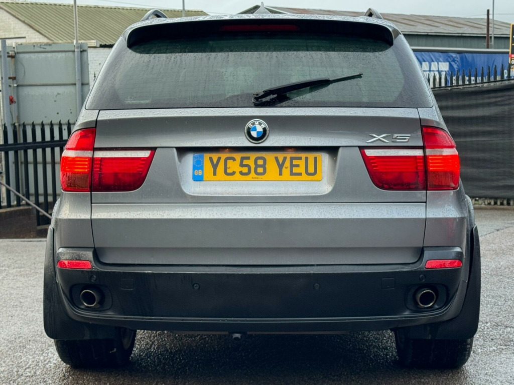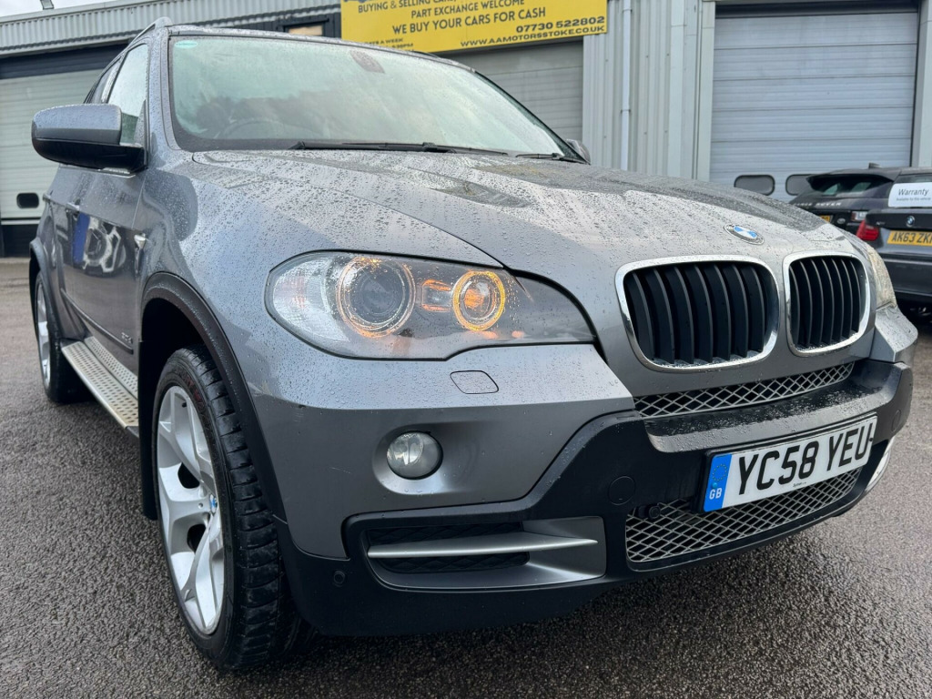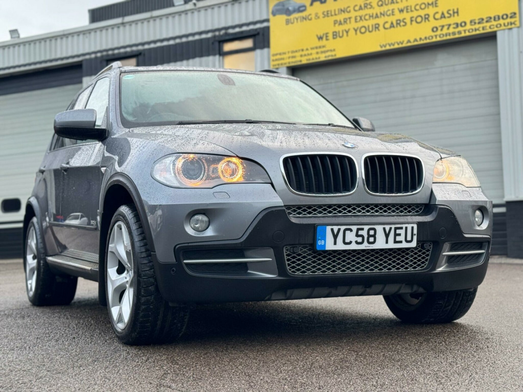 A&A MOTORS LIMITED delighted to offer this stunning 2008 BMW X5 d SE offers a compelling blend of performance and practicality, boasting a recent service and replaced front brakes pad + replaced front wheel bearing in December 2025 at 124,365 miles and a clear vehicle history check. This Four Wheel Drive model features a robust 3.0L Diesel engine, providing an impressive 0-62mph acceleration in just 8.1 seconds. Inside, you'll find luxurious Nevada Black leather upholstery, a SatNav Professional system, and a Media Pack for your entertainment needs. The electrically adjustable tilt and slide panoramic glass sunroof adds a sense of spaciousness and light to the cabin.The X5 d SE is designed for those who appreciate a refined driving experience and ample utility. Its substantial 3500 kg towing weight makes it a capable companion for various needs, while the large boot space ensures you have plenty of room for luggage or equipment. This particular model benefits from a low insurance group, offering potential cost savings. A 12 month MOT will be provided on purchase, and a 1 month warranty is included for your peace of mind, indicating its readiness for the road ahead.. 18in Light Alloy Wheels- Style 209, 19in Light Alloy Wheels- Style 213, 3Spoke Multifunction Leather Steering Wheel, 6 Speaker Loudspeaker System, All season Tyres, Auto dimming Rear view mirror, Automatic Air Conditioning, BMW Assist, BMW ConnectedDrive- Assist, BMW ConnectedDrive- Online, Brushed Aluminium Interior Trim, Dark Bamboo Wood Trim, Dark Walnut Wood Interior Trim, Heating & ventilation for third row Seats, Light Poplar Wood Trim, Matt Aluminium window surrounds when with Dynamic Pack, Model designation deletion, Part Electric adjust Seats, Dynamic Pack, Media Pack, SatNav Professional, Electrically adjust Tilt&Slide Panoramic Glass Sunroof, 20in Y Spoke Light Alloy Wheels- Style 214, Electric Front Seats & Driver Memory, Xenon Headlights, Front Sports Seats, High gloss shadow line, MP3 compatible 6CD Changer - glovebox, Sun protection Glass, Heated Front Seats, Aluminium running boards, Automatic dimming & folding door mirrors & Interior mirror, Individual Anthracite headlining, Sports suspension, High beam Assistant, 3Spoke Sports Leather Multifunction Steering Wheel, Leather- Nevada- Black. Part service history