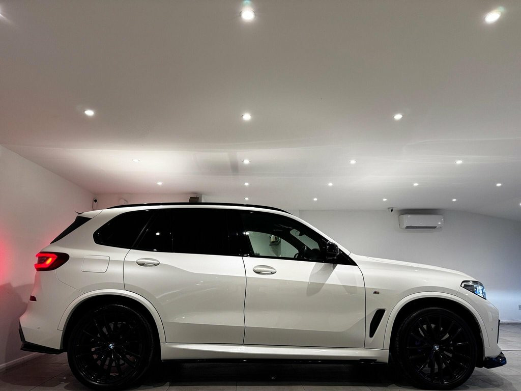 This 2020 BMW X5 M50i V8 presents a remarkable opportunity with its exceptionally low mileage of just 40,600 miles for its age. This impressive four wheel drive SUV is powered by a potent 4.4 litre petrol engine, meeting Euro 6 emission standards. It boasts a substantial towing weight of 2700 kg, making it a capable companion for various needs. The vehicle is equipped with Adaptive 2-Axle Air Suspension and Integral Active Steering for enhanced driving dynamics. Inside, the Comfort Plus Package adds features like independent rear air conditioning, climate control, keyless entry, heated and memory seats, while the Sky Lounge Panoramic Glass Sunroof with an opening function creates an airy cabin. Further enhancing the interior are the exquisite Glass Application Crafted Clarity elements. The BMW X5 M50i V8 offers a compelling blend of performance and luxury. Its acceleration is a standout feature, achieving 0-62mph in a swift 4.3 seconds, demonstrating its powerful V8 engine. This performance, combined with its advanced suspension and steering systems, positions it favourably against other vehicles in its class. The generous boot space ensures practicality for everyday use and longer journeys. This particular example, with its low mileage and desirable specification, represents a well maintained and high performing SUV. 20GB Hard Disc Drive HDD Memory, 22in Alloy Wheels - M Light Double-Spoke, 22in Alloy Wheels - M Light V-Spoke Styl, Acoustic Glazing, Active Guard Plus, Active Protection, Adaptive 2-Axle Air Suspension, Adaptive Air Flap Control Bar - High-Glo, Adaptive M Suspension, Air Conditioning - Automatic with 2.5 Zo, Airbags - Driver - Front Passenger- Rear, Alarm System - Thatcham 1 with Remote Co, Ambient Interior Lighting, Armrest - Front and Rear Integrated into, Attentiveness Assistant, Automatically Dimming Rear View Mirror, BMW Connected Package Professional, BMW ConnectedDrive Online Services, BMW Gesture Control, BMW Individual High-Gloss Shadowline, BMW Individual Roof Rails High-Gloss Sh