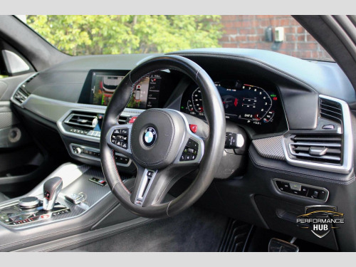 Performance Hub are proud to present this BMW X5M finished in the beautiful Metallic Donnington Grey with full Black merino leather interior. This vehicle has an overwhelming amount of luxury technology with a immense amount of desirable optional extras, this car comes with the sought after sky lounge panoramic glass sunroof, Bower & Wilkins diamond surround sound system, driving assistant professional including, adaptive cruise control, steering and lane keep/change assist, technology plus pack, 360 camera, telephone wireless charging, head up display, comfort access, heated steering, BMW gesture control, park assistance system plus, M sport exhaust, alcantara roof liner, M compound brakes, upgraded wheels, adaptive LED headlights, dab tuner, plus much more