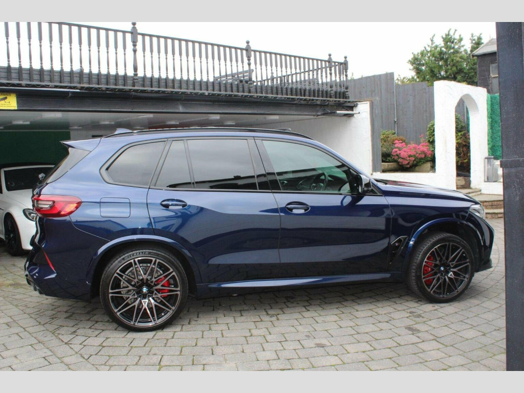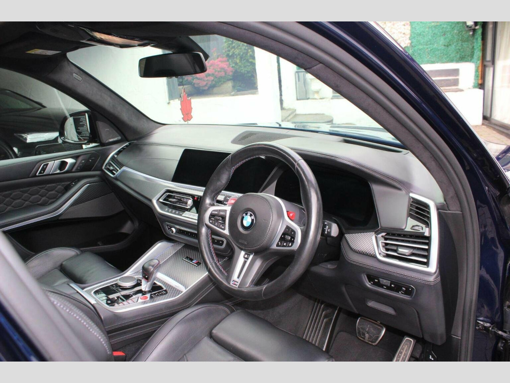This 2021 BMW X5 M i V8 Competition is a remarkable example of performance and luxury. Finished a BMW metallic blue with all black leather interior, it boasts a powerful 4.4 litre petrol engine paired with a sophisticated four wheel drive system, ensuring exhilarating performance and confident handling. The Competition trim level signifies its top tier specification, offering a truly premium driving experience. This vehicle is equipped with a host of desirable features, including the expansive Panorama Glass Roof Sky Lounge with an opening panoramic sunroof, and the Comfort Plus Package which includes heated seats & A heated steering wheel for enhanced comfort Practicality is also a key consideration, with the Luggage Compartment Package and a generous boot space designed to accommodate your needs. Manoeuvring is made effortless with Park Distance Control, covering both front and rear sensors, further supported by the Driving Assistant which incorporates Blind Spot Assistance. Experience the thrill of rapid acceleration, with this X5 M capable of reaching 0 to 62 miles per hour in a mere 3.8 seconds, a testament to its potent V8 engine. This impressive speed capability sets it apart from many other vehicles in its class. Furthermore, its robust construction allows for a substantial towing weight of 3000 kg, providing versatility for a range of activities. The combination of its dynamic capabilities, advanced technology, and luxurious appointments makes this 2021 BMW X5 M i V8 Competition a truly exceptional choice for those seeking a blend of power, comfort, and practicality.