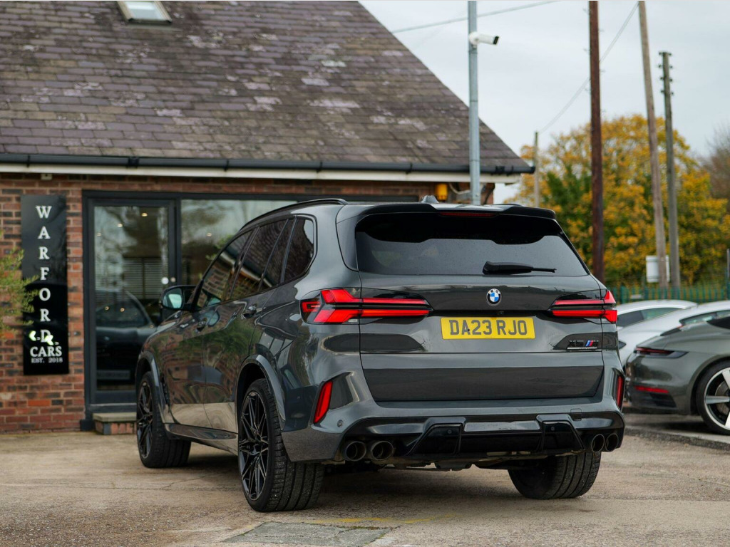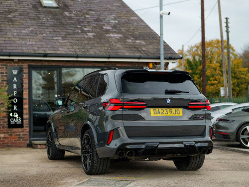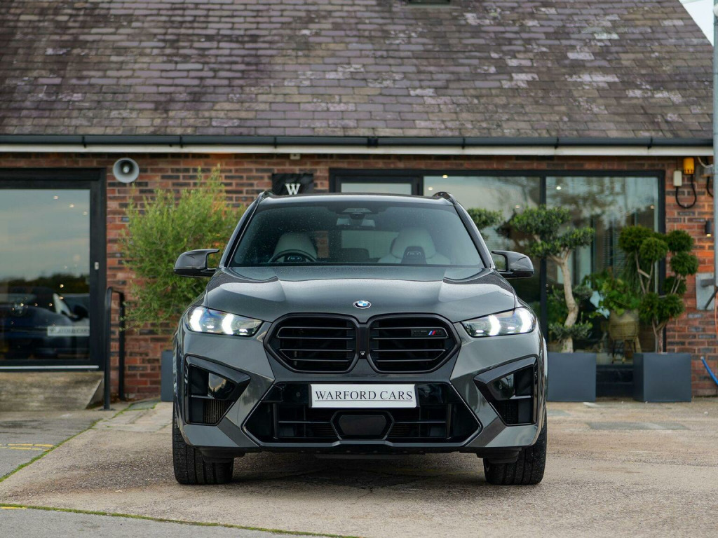 Warford Cars are proud to present this exceptional BMW X5 M Competition in Dravit Grey with Merino Leather Interior in Silverstone with Black. The car is very well optioned from new with options including Ultimate Package, Sky Lunge Panoramic Glass Sunroof, M Drivers Package, Towbar, Bowers & Wilkins Diamond Surround Sound System, Carbon Fibre Interior Trim, M Carbon Engine Cover, M Carbon Wing Mirrors, M Black Style 818 Wheels, Full Merino Leather Interior, Additional Storage Compartment and Universal Remote Control. Key features include Heated & Cooled Electric Memory Massage Front Seats, Head-Up Display, Soft Close Doors, Heated Steering Wheel, Cruise Control, Dual Zone Climate Control, Apple CarPlay / Android Auto, Wireless Charging, Cooled Cup Holders, Power Opening Tailgate, Front & Rear Parking Sensors with 360 Cameras and Privacy Glass. The car has been serviced 20/06/2023 at 2018 miles, 24/10/2023 at 7739 miles and 18/06/2024 at 16,135 miles. The car comes with Manufacturers Warranty til May 2026 and Service Package til May 2028. Viewings Strictly by Appointment Only. Competitive Finance Options Available. Professional GTechniq Accredited Detailing Available. Call directly to arrange a viewing on 07537 165874