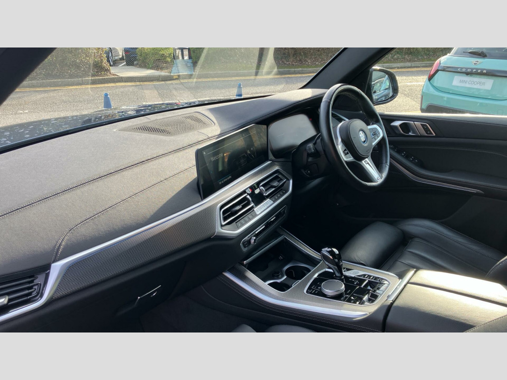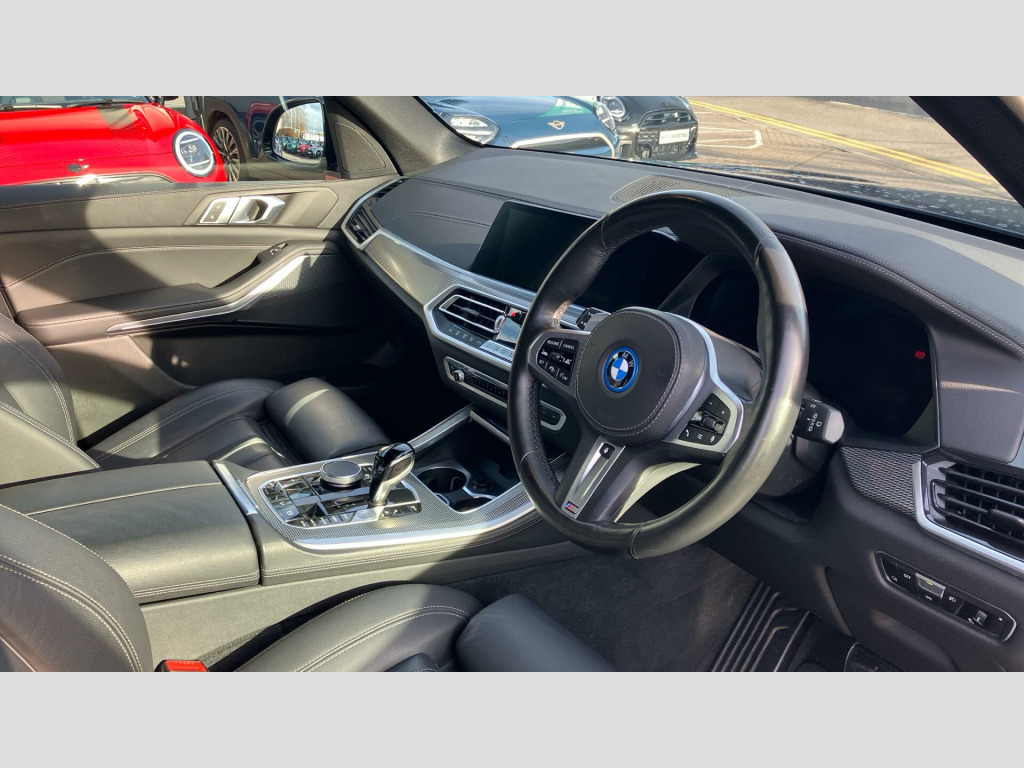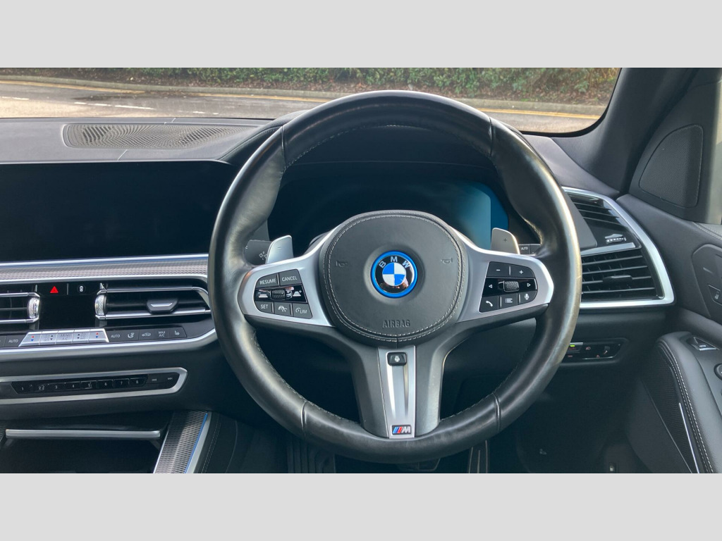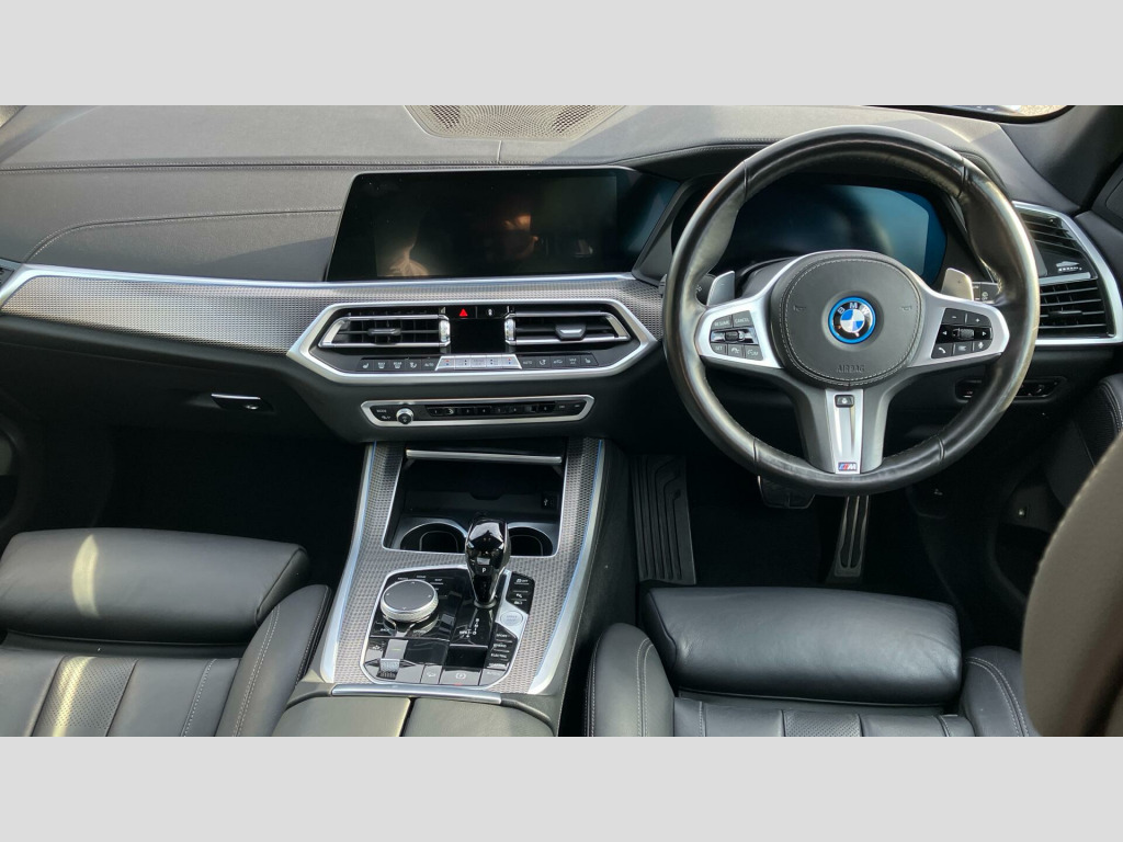 The X5 45e M Sport is equipped with a host of desirable features that enhance its appeal. The Sky Lounge Panoramic Glass Sunroof floods the cabin with light, complemented by the M Sport Pro Package and striking 21 inch M Light Y-spoke style 741 M Bicolour alloy wheels fitted with run flat tyres. Practicality is also a strong point, with ample boot space and the Comfort Package including keyless entry, heated and memory seats. Parking is made effortless thanks to the front and rear Park Distance Control. With a substantial towing weight of 2700 kg, this X5 is as capable as it is refined. Deletion of Harman/Kardon, BMW Public Charging Cable 7.4KW, Deletion of Wireless Charging, 21" 741 M Y-spoke Bi-colour Alloy Wheels, Comfort Access, M Sport Seat Belts, Front and Rear Heated Seats, Heat Comfort System, Sky Lounge Panoramic Glass Sunroof, Sun Protection Glass, Heated and Cooled Cupholder, Front Comfort Seats, Active Protection, Indv. high-gloss shadowline- extended, Comfort Pack, M Sport Pro Pack, EU6 RDE II exhaust emissions standard, M Sport Brakes with Blue Calipers, Sport Automatic Transmission with Gearsh, Front and Rear Air Suspension, Run-flat Tyres, High-gloss Shadowline Roof Rails, Alarm System, Sensatec Dashboard, Aluminium Tetragon Interior Trim, Ext. mirrors- folding with anti-dazzle, Ambient Lighting, eDrive Exterior Sound, High-Beam Assistant, Active Guard Plus, Parking Assistant, Adaptive LED Headlights, BMW TeleServices, BMW Emergency Call, BMW Online Services, Connected Package Pro (limited duration), Live Cockpit Professional, DAB Radio, HiFi Loudspeaker Audio System, M Sport Exterior Styling, High-gloss Shadowline Exterior Trim, Anthracite Headlining, Active Pedestrian Safety, Digital Aftermarket - Active Cruise Cont, WLTP grouping, M Sport Package