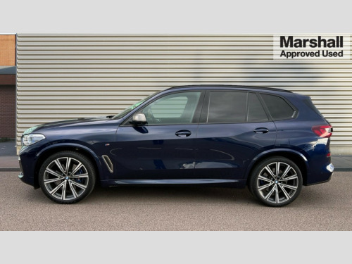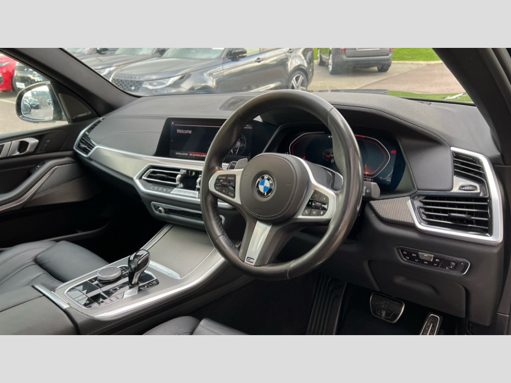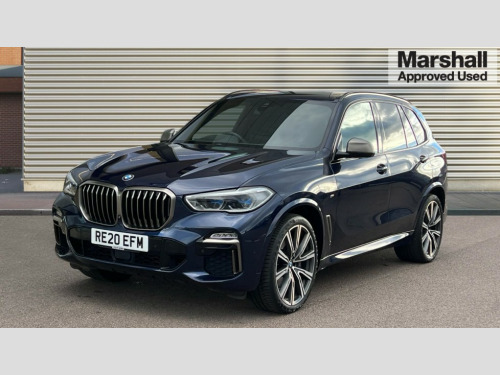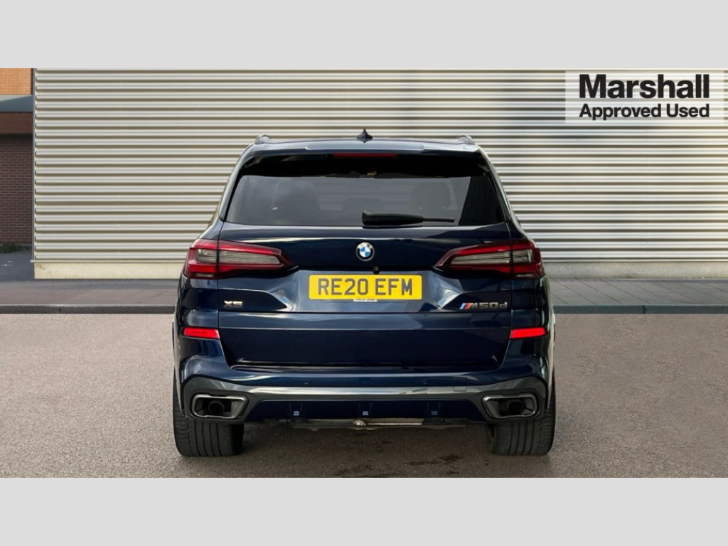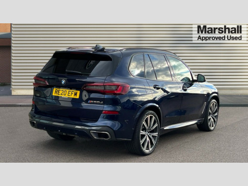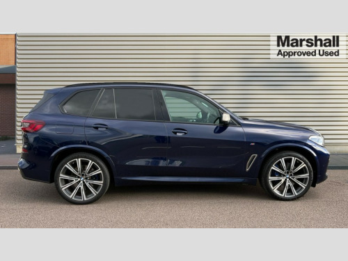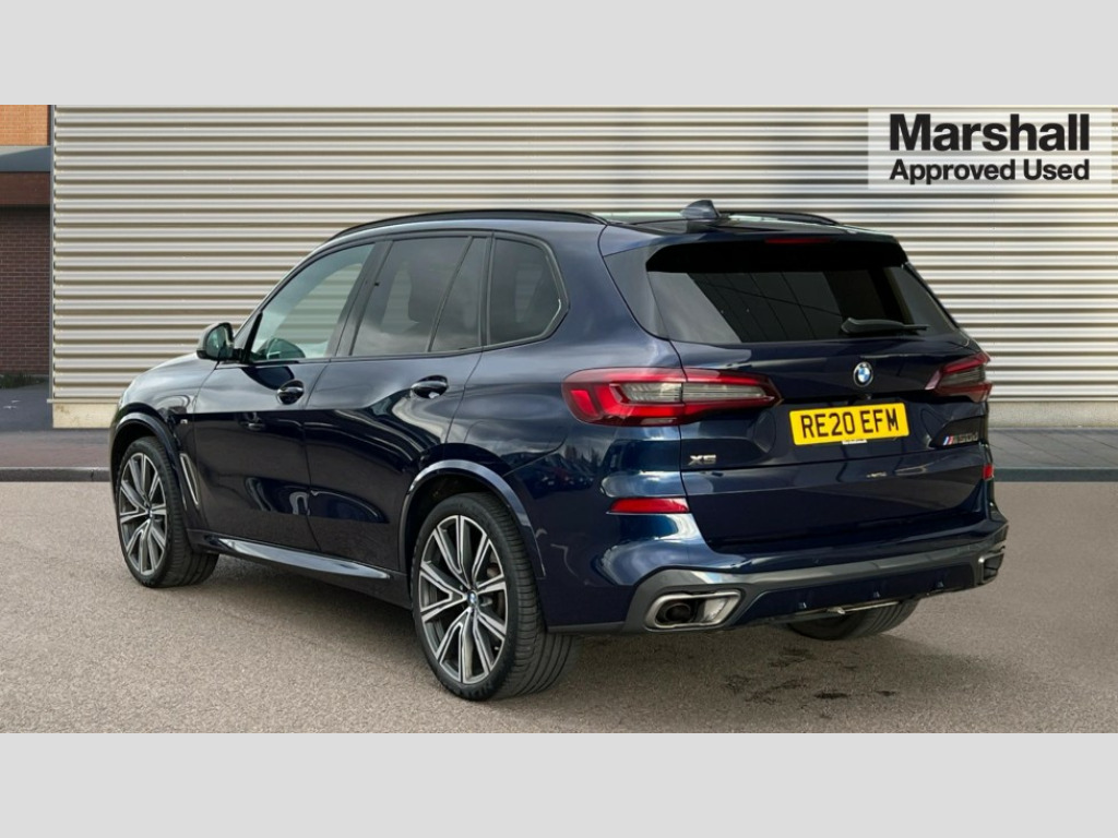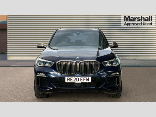 BMW X5 xDrive M50d 5dr Auto 20GB hard disc drive (HDD) memory, Active guard plus, Attentiveness assist, Automatic tailgate with top hinged section open and manual bottom hinged section, BMW ConnectedDrive online services, BMW digital live cockpit professional - 12.3" digital instrument panel and 12.3" CID, with touch/voice command, BMW legal emergency call, BMW Teleservices, Brake force display, Brake pad wear indicator warning light, Enhanced bluetooth hands free facility with Telephony wireless charging, Front/rear park distance control, iDrive touch controller with shortcut buttons, Lights on warning, Oil sensor for level and grade, On board computer inc. average speed, fuel consumption, liquid crystal Info display, journey computer, outside temperature display, personal profile, Service interval indicator, Speed limit info display, Wi-Fi hotspot, Diesel particulate filter, Double wishbone front axle, Drive performance control with ECO PRO comfort + sport mode, Eight speed steptronic sport automatic transmission and gearshift paddles on the steering wheel, M Sport differential, Safety battery terminal clamp, Variable vane geometry, DAB Tuner enables digital radio reception, Favourite buttons, USB connection, USB type A 1.5A in cupholder, USB Type C 3A in centre armrest, Adaptive air flap control bar in high-gloss black, Automatically dimming rear view mirror, Body colour bumpers, Body colour door handles, Cerium grey exterior mirror housing, Cerium grey kidney grille, Cerium grey M badge on left and right side panels, Cerium grey M50d badge on right tailgate, Cerium grey side gill, Dynamic brake lights with LED technology, Exhaust tailpipes - single, left and right in Cerium Grey, Follow me home headlight function, Front and rear electric windows with open and close fingertip control, anti trap facility and comfort closing, Heated windscreen washer jets, High beam assistant, High gloss black outer and central air intakes on front bumper with pearlescent chrome finish, High gloss black Side elements, LED daytime running lights, LED fog lights, LED rear lights, M aerodynamic body styling, M Sport exhaust system, Rain sensor with automatic headlight activation and windscreen wiper control, Satin aluminium side window graphic, Third brake light in rear spoiler, Variable intermittent rear wash/wipe, Welcome light carpet, X5 on left tailgate, xDrive designation on right tailgate, 12V - Power sockets with 2x centre console and 1x luggage compartment, 40:20:40 split folding rear seats, Ambient interior lighting with 6 pre-designed selectable lights including dynamic function, Centre and rear interior light, Child seat ISOFIX attachment with rear outer seats includes top tether, Compartment in front of cupholder, Electric front seat adjustment with driver memory, Electrical steering column with adjustable height and length with activation and control on the steering column, Foldable rear centre armrest with 2 cupholders and storage compartment, Front and rear cupholders x 2, Front and rear door pockets, Front and rear door sill finishers with illuminated M50i designation, Front and rear side armrest integrated into door trim, Front footwell lights, Front reading lights, Light inside glove compartment, Lockable glove compartment, Luggage compartment floor panel with integral storage tray, Luggage compartment lighting, M leather steering wheel, M specific key, M specific pedals, M specific steering wheel, M specific velour floor mats, Make-up mirror lights, Multifunction controls for leather steering wheel, Multifunctional hooks, Rear head restraints, Seat back with flap pocket, Securing rings in luggage compartment, Storage bins on all doors, Storage tray and compartment with cover in centre console, Sunvisors with illuminated vanity mirrors, Toolkit located in luggage compartment, Connected Package Professional - X5, Expanded exterior mirror pack - X5/X5 M, Non-smokers pack - X5, Active protection, Airbags - driver/front passenger, rear and side, first and second row seats head airbags, front passenger seat airbag deactivation + knee airbag, Anti-lock braking system (ABS), Automatic Stability Control (ASC), Brake drying, Brake energy regeneration, Brake fade compensation, Braking pre-tensioning, Cornering brake control (CBC), Crash sensor activating central locking release, hazard warning lights, fuel cut off, interior lighting + activation of safety battery terminal clamp, Deformation zones - front and rear with door reinforcements and bumpers up to 2.5 mph, DSC - Dynamic Stability Control, Dynamic brake control, Dynamic Traction Control - DTC, Electromechanical parking brake with automatic drive away release and auto hold function, Electronic brake force distribution, Front and rear seatbelts with seatbelt stopper, seatbelt tensioner for front and outer rear seats and belt force limiter, Front head restraints with anti-whiplash, Height adjustable front seatbelts, Hill start assistant, Integrated brake system, M Sport braking system in blue high gloss + blue painted brake calipers with M designation, M sport seatbelt, Mechanical child proof lock on rear doors, Passive protection for pedestrians, Seat occupancy detection for driver and passenger side, Side impact protection, Three 3 point inertia reel seatbelts, Two tone horn, Tyre pressure monitoring system, Ventilated front and rear disc brakes, Warning triangle and first aid kit, Closing system with central locking, Driver and front passenger door centre lock switch, Locking wheel bolts, Thatcham 1 alarm system with remote control and engine immobiliser, Sensatec instrument panel, Start/stop toggle diamond shaped trim finisher in pearl chrome, Tyre repair kit