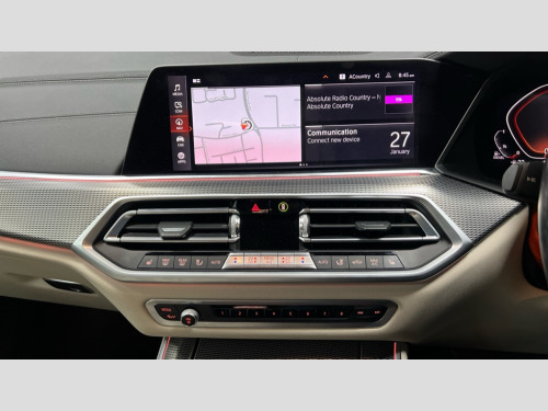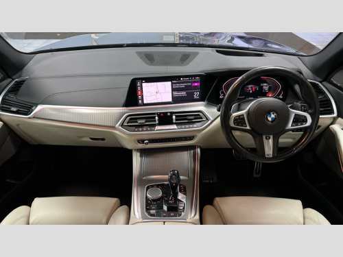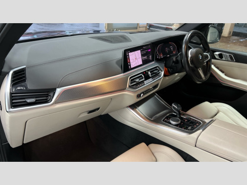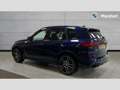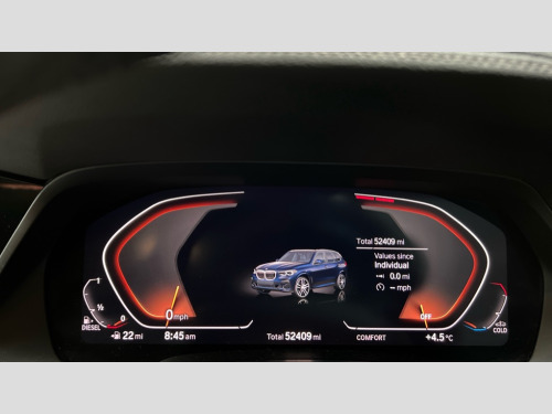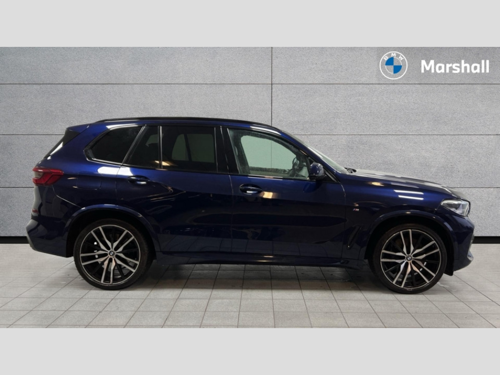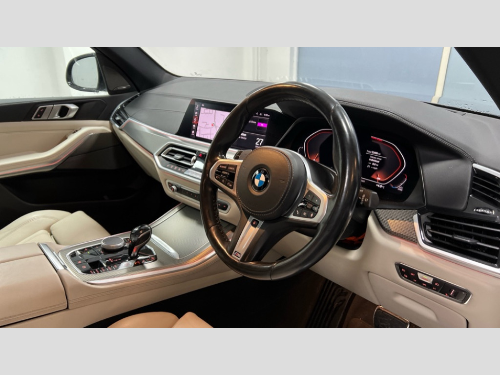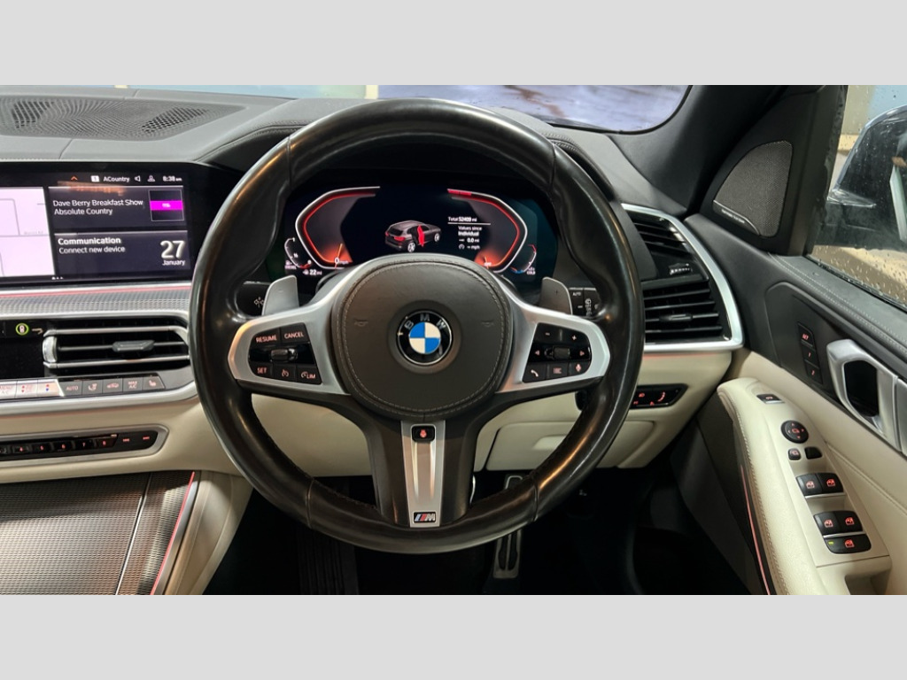 BMW X5 xDrive30d M Sport 5dr Auto 20GB hard disc drive (HDD) memory, Active guard plus, Attentiveness assist, Automatic tailgate with top hinged section open and manual bottom hinged section, BMW ConnectedDrive online services, BMW digital live cockpit professional - 12.3" digital instrument panel and 12.3" CID, with touch/voice command, BMW display key, BMW Drive recorder, BMW legal emergency call, BMW Teleservices, Brake force display, Brake pad wear indicator warning light, Enhanced bluetooth hands free facility with Telephony wireless charging, Front/rear park distance control, Head up Display, iDrive touch controller with shortcut buttons, Integral active steering, Lights on warning, Oil sensor for level and grade, On board computer inc. average speed, fuel consumption, liquid crystal Info display, journey computer, outside temperature display, personal profile, Parking assistance plus with ultrasound based assistance system, reversing assistant, lateral parking aid and surround view system, Service interval indicator, Speed limit info display, Wi-Fi hotspot, Adaptive 2-axle air suspension, Diesel particulate filter, Double wishbone front axle, Drive performance control with ECO PRO comfort + sport mode, Eight speed steptronic sport automatic transmission and gearshift paddles on the steering wheel, Safety battery terminal clamp, Variable vane geometry, DAB Tuner enables digital radio reception, Favourite buttons, Gesture control for infotainment system, USB connection, USB type A 1.5A in cupholder, USB Type C 3A in centre armrest, Active Air Stream kidney grille with high-gloss chrome, Adaptive air flap control bar in high-gloss black, Automatically dimming rear view mirror, Body colour bumpers, Body colour door handles, Body colour mirror housing, Dynamic brake lights with LED technology, Exhaust tailpipes - single, left and right with Chrome finisher, Follow me home headlight function, Front and rear electric windows with open and close fingertip control, anti trap facility and comfort closing, Heated windscreen washer jets, High gloss black outer and central air intakes on front bumper with pearlescent chrome finish, High gloss black Side elements, LED daytime running lights, LED fog lights, LED rear lights, M aerodynamic body styling, M designation on left and right front side panels, Pearlescent chrome front grille bars, Rain sensor with automatic headlight activation and windscreen wiper control, Satin aluminium side window graphic, Third brake light in rear spoiler, Variable intermittent rear wash/wipe, Welcome light carpet, X5 on left tailgate, xDrive designation on right tailgate, 12V - Power sockets with 2x centre console and 1x luggage compartment, 40:20:40 split folding rear seats, Ambient interior lighting with 6 pre-designed selectable lights including dynamic function, Centre and rear interior light, Child seat ISOFIX attachment with rear outer seats includes top tether, Compartment in front of cupholder, Electric front seat adjustment with driver memory, Electrical steering column with adjustable height and length with activation and control on the steering column, Foldable rear centre armrest with 2 cupholders and storage compartment, Front and rear cupholders x 2, Front and rear door pockets, Front and rear door sill finishers with illuminated BMW designation, Front and rear door sill inlays with illuminated BMW M designation, Front and rear side armrest integrated into door trim, Front footwell lights, Front reading lights, Light inside glove compartment, Lockable glove compartment, Luggage compartment lighting, M leather steering wheel, M specific key, M specific pedals, M specific steering wheel, M specific velour floor mats, Make-up mirror lights, Multifunction controls for leather steering wheel, Multifunctional hooks, Rear head restraints, Seat back with flap pocket, Securing rings in luggage compartment, Storage bins on all doors, Storage tray and compartment with cover in centre console, Sunvisors with illuminated vanity mirrors, Third-row seating, Toolkit located in luggage compartment, Connected Package Professional - X5, Expanded exterior mirror pack - X5/X5 M, Non-smokers pack - X5, Airbags - driver/front passenger, rear and side, first and second row seats head airbags, front passenger seat airbag deactivation + knee airbag, Anti-lock braking system (ABS), Automatic Stability Control (ASC), Brake drying, Brake energy regeneration, Brake fade compensation, Braking pre-tensioning, Cornering brake control (CBC), Crash sensor activating central locking release, hazard warning lights, fuel cut off, interior lighting + activation of safety battery terminal clamp, Deformation zones - front and rear with door reinforcements and bumpers up to 2.5 mph, DSC - Dynamic Stability Control, Dynamic brake control, Dynamic Traction Control - DTC, Electromechanical parking brake with automatic drive away release and auto hold function, Electronic brake force distribution, Front and rear seatbelts with seatbelt stopper, seatbelt tensioner for front and outer rear seats and belt force limiter, Front head restraints with anti-whiplash, Height adjustable front seatbelts, Hill start assistant, Integrated brake system, M Sport braking system in blue high gloss + blue painted brake calipers with M designation, Mechanical child proof lock on rear doors, Passive protection for pedestrians, Seat occupancy detection for driver and passenger side, Side impact protection, Three 3 point inertia reel seatbelts, Two tone horn, Tyre pressure monitoring system, Ventilated front and rear disc brakes, Warning triangle and first aid kit, Closing system with central locking, Driver and front passenger door centre lock switch, Locking wheel bolts, Thatcham 1 alarm system with remote control and engine immobiliser, Sensatec instrument panel, Start/stop toggle diamond shaped trim finisher in pearl chrome