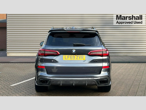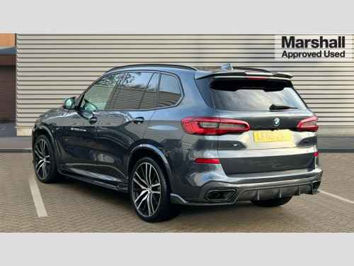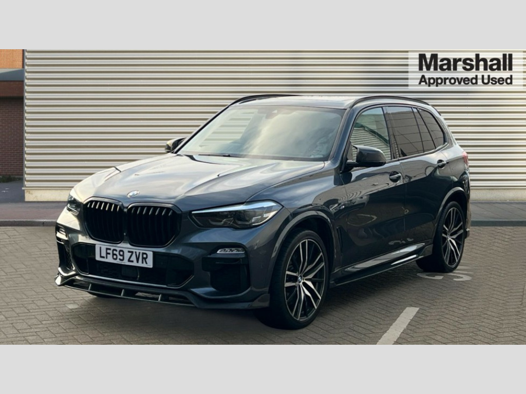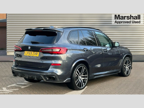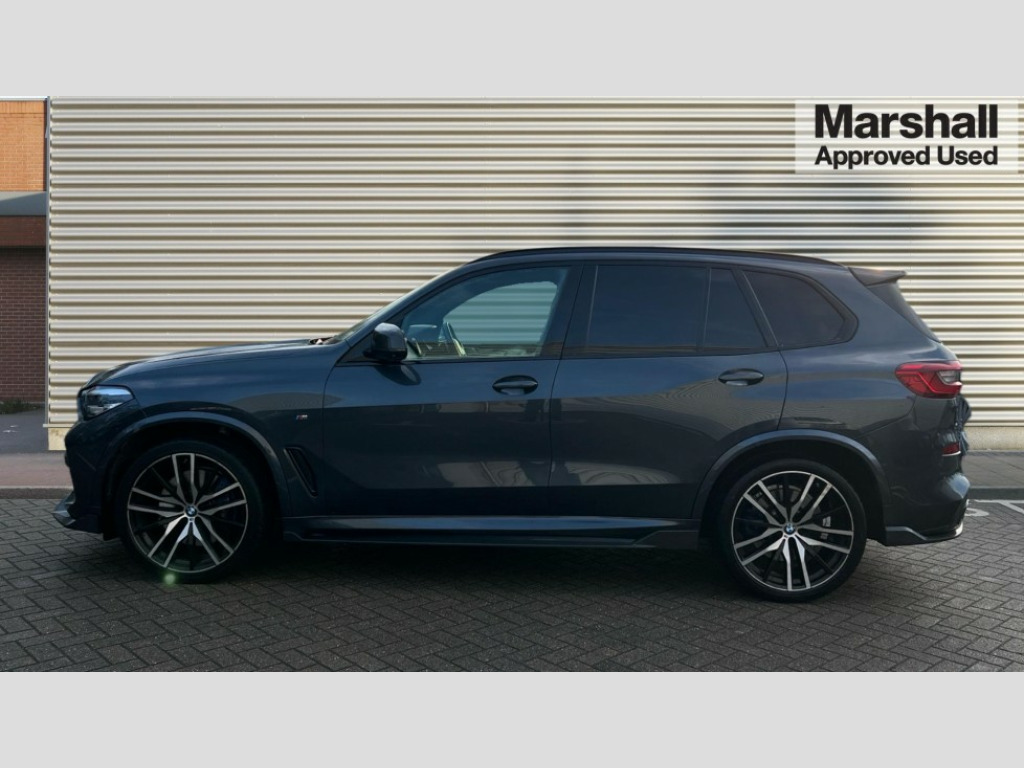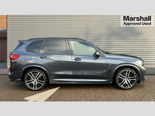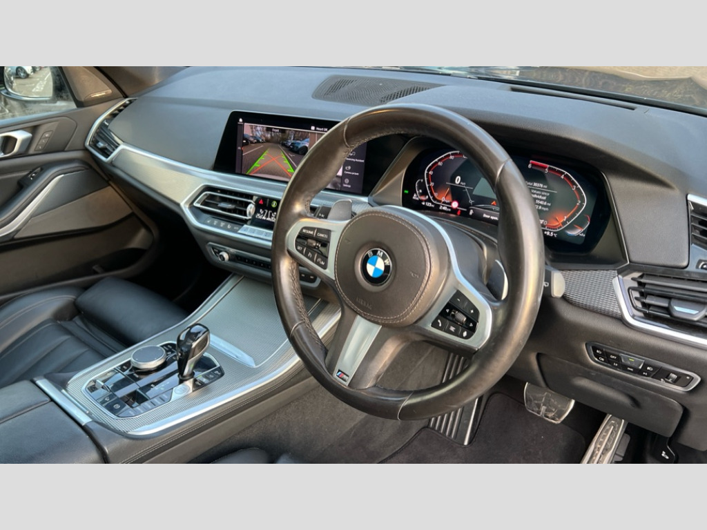 BMW X5 xDrive30d M Sport 5dr Auto 20GB hard disc drive (HDD) memory, Active guard plus, Attentiveness assist, Automatic tailgate with top hinged section open and manual bottom hinged section, BMW ConnectedDrive online services, BMW digital live cockpit professional - 12.3" digital instrument panel and 12.3" CID, with touch/voice command, BMW legal emergency call, BMW Teleservices, Brake force display, Brake pad wear indicator warning light, Cruise control with brake assist, Enhanced bluetooth hands free facility with Telephony wireless charging, Front/rear park distance control, iDrive touch controller with shortcut buttons, Lights on warning, Oil sensor for level and grade, On board computer inc. average speed, fuel consumption, liquid crystal Info display, journey computer, outside temperature display, personal profile, Parking assistant with ultrasound based assistance system, reversing assistant, lateral parking aid and rear view camera, Service interval indicator, Speed limit info display, Speed limiting function, Wi-Fi hotspot, Adaptive 2-axle air suspension, Diesel particulate filter, Double wishbone front axle, Drive performance control with ECO PRO comfort + sport mode, Eight speed steptronic sport automatic transmission and gearshift paddles on the steering wheel, Safety battery terminal clamp, Variable vane geometry, DAB Tuner enables digital radio reception, Favourite buttons, Gesture control for infotainment system, Hi-Fi loudspeaker system, USB connection, USB type A 1.5A in cupholder, USB Type C 3A in centre armrest, Active Air Stream kidney grille with high-gloss chrome, Adaptive air flap control bar in high-gloss black, Automatically dimming rear view mirror, Body colour bumpers, Body colour door handles, Body colour mirror housing, Dynamic brake lights with LED technology, Exhaust tailpipes - single, left and right with Chrome finisher, Follow me home headlight function, Front and rear electric windows with open and close fingertip control, anti trap facility and comfort closing, Heated windscreen washer jets, High gloss black outer and central air intakes on front bumper with pearlescent chrome finish, High gloss black Side elements, LED daytime running lights, LED fog lights, LED rear lights, M aerodynamic body styling, M designation on left and right front side panels, Pearlescent chrome front grille bars, Rain sensor with automatic headlight activation and windscreen wiper control, Satin aluminium side window graphic, Third brake light in rear spoiler, Variable intermittent rear wash/wipe, Welcome light carpet, X5 on left tailgate, xDrive designation on right tailgate, 12V - Power sockets with 2x centre console and 1x luggage compartment, 40:20:40 split folding rear seats, Ambient interior lighting with 6 pre-designed selectable lights including dynamic function, Centre and rear interior light, Child seat ISOFIX attachment with rear outer seats includes top tether, Compartment in front of cupholder, Electric front seat adjustment with driver memory, Electrical steering column with adjustable height and length with activation and control on the steering column, Foldable rear centre armrest with 2 cupholders and storage compartment, Front and rear cupholders x 2, Front and rear door pockets, Front and rear door sill finishers with illuminated BMW designation, Front and rear door sill inlays with illuminated BMW M designation, Front and rear side armrest integrated into door trim, Front footwell lights, Front reading lights, Light inside glove compartment, Lockable glove compartment, Luggage compartment floor panel with integral storage tray, Luggage compartment lighting, M leather steering wheel, M specific key, M specific pedals, M specific steering wheel, M specific velour floor mats, Make-up mirror lights, Multifunction controls for leather steering wheel, Multifunctional hooks, Seat back with flap pocket, Securing rings in luggage compartment, Storage bins on all doors, Storage tray and compartment with cover in centre console, Sunvisors with illuminated vanity mirrors, Toolkit located in luggage compartment, Connected Package Professional - X5, Expanded exterior mirror pack - X5/X5 M, Non-smokers pack - X5, Active protection, Airbags - driver/front passenger, rear and side, first and second row seats head airbags, front passenger seat airbag deactivation + knee airbag, Anti-lock braking system (ABS), Automatic Stability Control (ASC), Brake drying, Brake energy regeneration, Brake fade compensation, Braking pre-tensioning, Cornering brake control (CBC), Crash sensor activating central locking release, hazard warning lights, fuel cut off, interior lighting + activation of safety battery terminal clamp, Deformation zones - front and rear with door reinforcements and bumpers up to 2.5 mph, DSC - Dynamic Stability Control, Dynamic brake control, Dynamic Traction Control - DTC, Electromechanical parking brake with automatic drive away release and auto hold function, Electronic brake force distribution, Front and rear seatbelts with seatbelt stopper, seatbelt tensioner for front and outer rear seats and belt force limiter, Front head restraints with anti-whiplash, Height adjustable front seatbelts, Hill start assistant, Integrated brake system, M Sport braking system in blue high gloss + blue painted brake calipers with M designation, Mechanical child proof lock on rear doors, Passive protection for pedestrians, Seat occupancy detection for driver and passenger side, Side impact protection, Three 3 point inertia reel seatbelts, Two tone horn, Tyre pressure monitoring system, Ventilated front and rear disc brakes, Warning triangle and first aid kit, Closing system with central locking, Driver and front passenger door centre lock switch, Locking wheel bolts, Thatcham 1 alarm system with remote control and engine immobiliser, Start/stop toggle diamond shaped trim finisher in pearl chrome