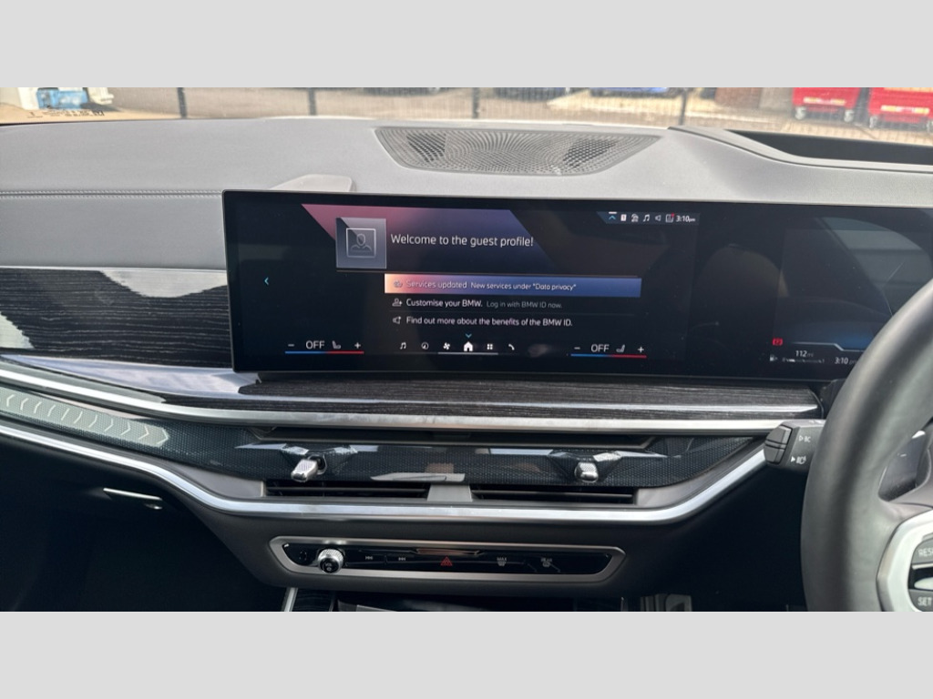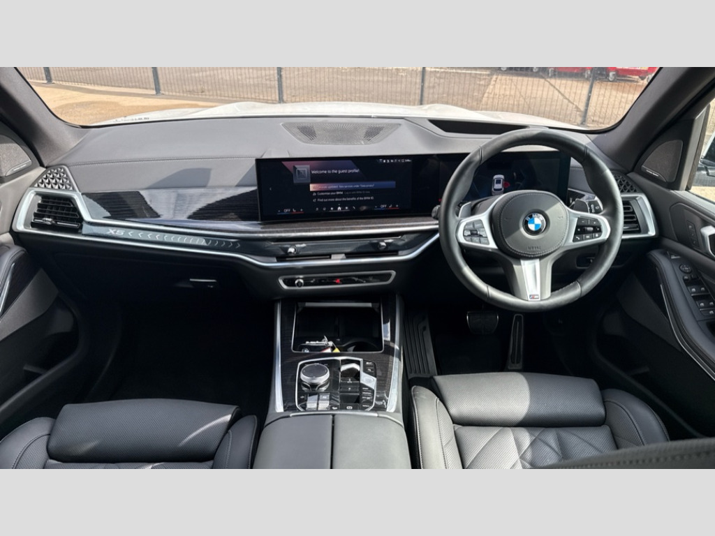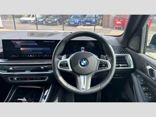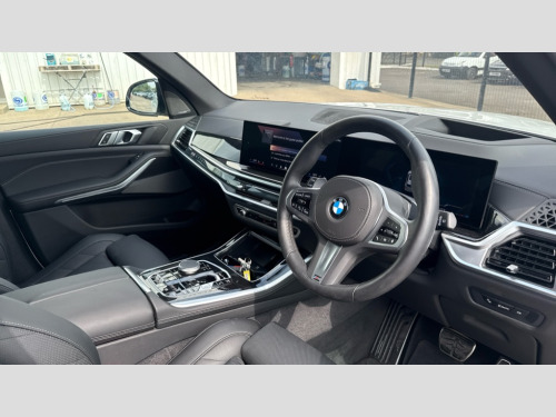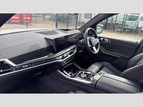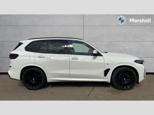BMW X5 xDrive30d MHT M Sport 5dr Auto Attentiveness assist, Automatic tailgate operation, BMW ConnectedDrive online services, BMW live cockpit + with curved 12.3 instrument cluster/14.9 central display,nav/Tuner with diversity reception,RDS/4GLTE/remote software upgrade, BMW Recovery system, BMW Teleservices, Condition based service, Cruise control with brake assist, eCall emergency call system, Enhanced bluetooth with wireless charging, Integrated owner's handbook, PAS, Speed limiter, Wi-Fi hotspot, Drive performance control with ECO PRO comfort + sport mode, Eight speed steptronic sport automatic transmission and gearshift paddles on the steering wheel, Hi-Fi loudspeaker system, Adaptive LED Headlights, Front and rear electric windows, High beam assistant, High gloss black shadow line roof rails, LED daytime running lights, Rain sensor, Rear side wing doors, Third brake light in rear spoiler, Variable intermittent rear wash/wipe, 12V - Power sockets with 2x centre console and 1x luggage compartment, 3 seat bench in 2nd row, Foldable rear centre armrest with 2 cupholders and storage compartment, Front and rear side armrest integrated into door trim, Headrests for all seats, Luggage compartment separating net, Single front passenger seat, Three spoke sport M leather steering wheel, Velour floormats, Ambient light interior pack - X5, Driving assistant pack with radar based driver assistance system - X5, Expanded exterior mirror pack - X5/X5 M, M aerodynamics pack - X5, 3 rear seatbelts, Active protection, Airbags - driver/front passenger, rear and side, first and second row seats head airbags, front passenger seat airbag deactivation + knee airbag, Anti-lock braking system (ABS), Automatic Stability Control (ASC), Brake energy regeneration, Cornering brake control (CBC), Crash sensor activating central locking release, hazard warning lights, fuel cut off, interior lighting + activation of safety battery terminal clamp, DSC - Dynamic Stability Control, Dynamic Traction Control - DTC, Electromechanical parking brake with automatic drive away release and auto hold function, Electronic brake force distribution, Hill start assistant, M Sport blue painted brake calipers with 'M' designation, Mechanical child proof lock on rear doors, Tyre pressure monitoring system, Tyre pressure sensors, Ventilated front and rear disc brakes, Warning triangle and first aid kit, Alarm system, Closing system with central locking, Comfort access system, Locking wheel bolts