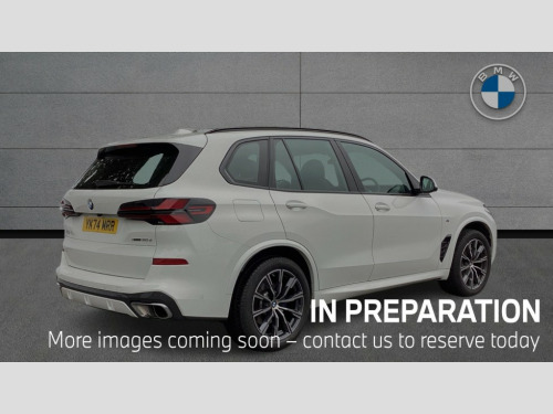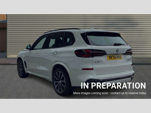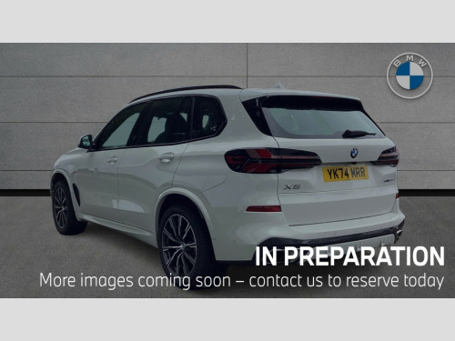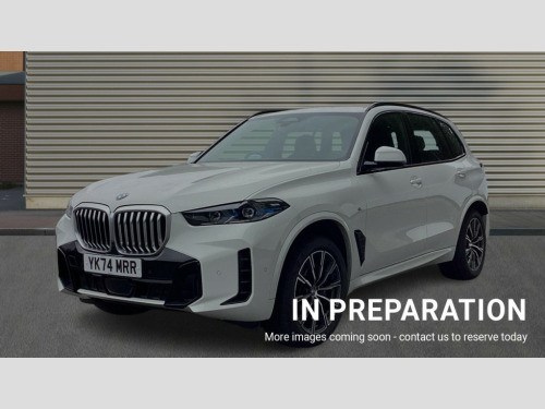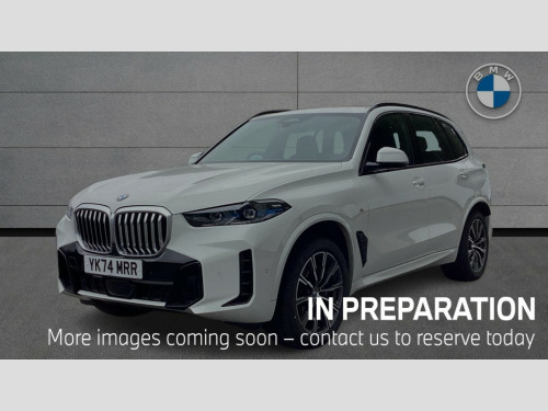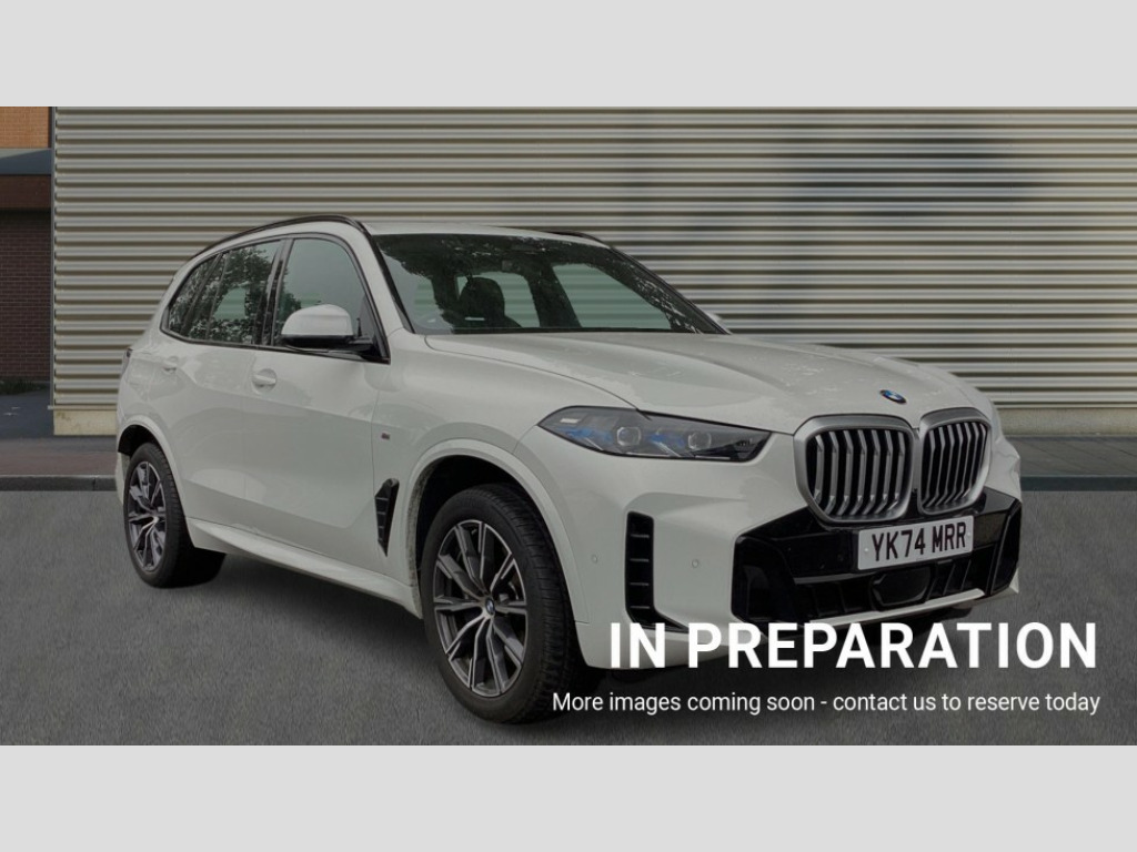 BMW X5 xDrive30d MHT M Sport 5dr Auto Attentiveness assist, Automatic tailgate operation, BMW ConnectedDrive online services, BMW live cockpit + with curved 12.3 instrument cluster/14.9 central display,nav/Tuner with diversity reception,RDS/4GLTE/remote software upgrade, BMW Recovery system, BMW Teleservices, Condition based service, Cruise control with brake assist, eCall emergency call system, Enhanced bluetooth with wireless charging, Integrated owner's handbook, PAS, Speed limiter, Wi-Fi hotspot, Drive performance control with ECO PRO comfort + sport mode, Eight speed steptronic sport automatic transmission and gearshift paddles on the steering wheel, Adaptive LED Headlights, Front and rear electric windows, High beam assistant, High gloss black shadow line roof rails, LED daytime running lights, Rain sensor, Rear side wing doors, Third brake light in rear spoiler, Variable intermittent rear wash/wipe, 12V - Power sockets with 2x centre console and 1x luggage compartment, 3 seat bench in 2nd row, Foldable rear centre armrest with 2 cupholders and storage compartment, Front and rear side armrest integrated into door trim, Headrests for all seats, Luggage compartment separating net, Lumbar support with height and depth adjustment in backrest, Single front passenger seat, Three spoke sport M leather steering wheel, Velour floormats, Ambient light interior pack - X5, Driving assistant pack with radar based driver assistance system - X5, Expanded exterior mirror pack - X5/X5 M, M aerodynamics pack - X5, Parking assistant pack - X5, 3 rear seatbelts, Active protection, Airbags - driver/front passenger, rear and side, first and second row seats head airbags, front passenger seat airbag deactivation + knee airbag, Anti-lock braking system (ABS), Automatic Stability Control (ASC), Brake energy regeneration, Cornering brake control (CBC), Crash sensor activating central locking release, hazard warning lights, fuel cut off, interior lighting + activation of safety battery terminal clamp, DSC - Dynamic Stability Control, Dynamic Traction Control - DTC, Electromechanical parking brake with automatic drive away release and auto hold function, Electronic brake force distribution, Hill start assistant, M Sport blue painted brake calipers with 'M' designation, Mechanical child proof lock on rear doors, Tyre pressure monitoring system, Tyre pressure sensors, Ventilated front and rear disc brakes, Warning triangle and first aid kit, Alarm system, Closing system with central locking, Comfort access system, Locking wheel bolts