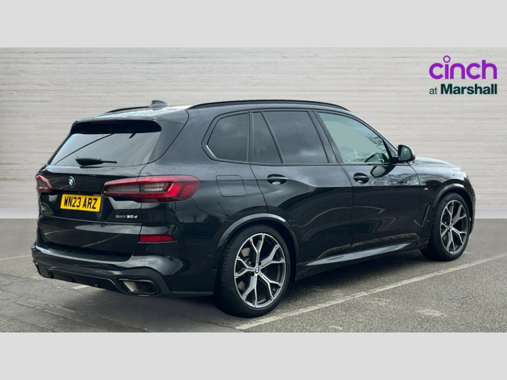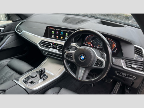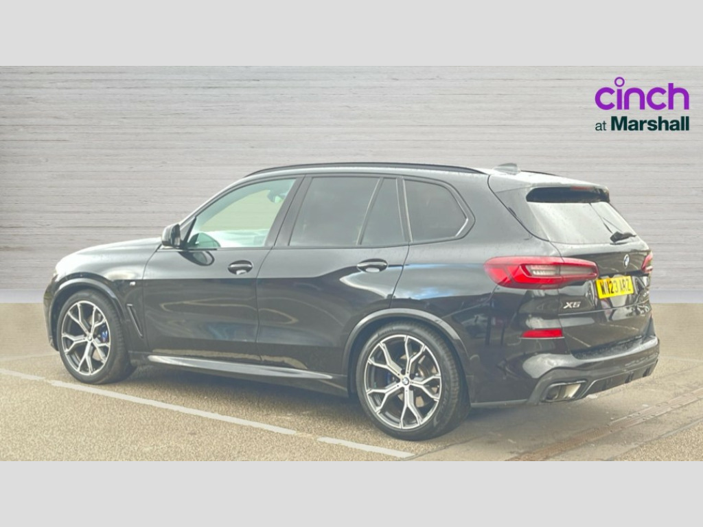 USB Connection - USB Type A 1.5A in Cupholder - USB Type C 3A in Centre Armrest 20GB hard disc drive (HDD) memory, Active guard plus, Attentiveness assist, Automatic tailgate with top hinged section open and manual bottom hinged section, BMW ConnectedDrive online services, BMW digital live cockpit professional - 12.3" digital instrument panel and 12.3" CID, with touch/voice command, BMW legal emergency call, BMW Teleservices, Brake force display, Brake pad wear indicator warning light, Cruise control with brake assist, Enhanced bluetooth with wireless charging, Front/rear park distance control, iDrive controller with shortcut buttons, Lights on warning, Oil sensor for level and grade, On board computer inc. average speed, fuel consumption, liquid crystal Info display, journey computer, outside temperature display, personal profile, Service interval indicator, Speed limit info display, Speed limiting function, Wi-Fi hotspot, 48V Mild hybrid technology, Adaptive 2-axle air suspension, Common rail technology, Diesel particulate filter, Double wishbone front axle, Drive performance control with ECO PRO comfort + sport mode, Eight speed steptronic sport automatic transmission and gearshift paddles on the steering wheel, Safety battery terminal clamp, Variable vane geometry, DAB Tuner enables digital radio reception, Favourite buttons, Hi-Fi loudspeaker system, USB connection, USB type A 1.5A in cupholder, USB Type C 3A in centre armrest, Active Air Stream kidney grille with high-gloss chrome, Adaptive air flap control bar in high-gloss black, Automatically dimming rear view mirror, BMW Individual high gloss black shadow line roof rails, BMW Individual high gloss shadow line, Body colour bumpers, Body colour door handles, Dynamic brake lights with LED technology, Exhaust tailpipes - single, left and right with Chrome finisher, Follow me home headlight function, Front and rear electric windows with open and close fingertip control, anti trap facility and comfort closing, Heated windscreen washer jets, High beam assistant, High gloss black outer and central air intakes on front bumper with pearlescent chrome finish, High gloss black Side elements, LED daytime running lights, LED rear lights, M aerodynamic body styling, M designation on left and right front side panels, Pearlescent chrome front grille bars, Rain sensor with automatic headlight activation and windscreen wiper control, Rear side wing doors, Satin aluminium side window graphic, Third brake light in rear spoiler, Variable intermittent rear wash/wipe, Welcome light carpet, X5 on left tailgate, xDrive designation on right tailgate, 12V - Power sockets with 2x centre console and 1x luggage compartment, 3 seat bench in 2nd row, 40:20:40 split folding rear seats, Ambient interior lighting with 6 pre-designed selectable lights including dynamic function, Centre and rear interior light, Child seat ISOFIX attachment with rear outer seats includes top tether, Compartment in front of cupholder, Electric front seat adjustment with driver and front passenger memory function, Electrical steering column with adjustable height and length with activation and control on the steering column, Foldable rear centre armrest with 2 cupholders and storage compartment, Front and rear cupholders x 2, Front and rear door pockets, Front and rear door sill inlays with illuminated BMW M designation, Front and rear side armrest integrated into door trim, Front footwell lights, Front reading lights, Light inside glove compartment, Lockable glove compartment, Luggage compartment floor panel with integral storage tray, Luggage compartment lighting, M leather steering wheel, M specific key, M specific steering wheel, Make-up mirror lights, Multifunction controls for leather steering wheel, Multifunctional hooks, Rear head restraints, Seat back with flap pocket, Securing rings in luggage compartment, Single front passenger seat, Storage bins on all doors, Storage tray and compartment with cover in centre console, Sunvisors with illuminated vanity mirrors, Toolkit located in luggage compartment, Velour floormats, Connected Package Professional - X5, Expanded exterior mirror pack - X5/X5 M, Non-smokers pack - X5, Airbags - driver/front passenger, rear and side, first and second row seats head airbags, front passenger seat airbag deactivation + knee airbag, Anti-lock braking system (ABS), Automatic Stability Control (ASC), Brake drying, Brake energy regeneration, Brake fade compensation, Braking pre-tensioning, Cornering brake control (CBC), Crash sensor activating central locking release, hazard warning lights, fuel cut off, interior lighting + activation of safety battery terminal clamp, Deformation zones - front and rear with door reinforcements and bumpers up to 2.5 mph, DSC - Dynamic Stability Control, Dynamic brake control, Dynamic Traction Control - DTC, Electromechanical parking brake with automatic drive away release and auto hold function, Electronic brake force distribution, Front and rear seatbelts with seatbelt stopper, seatbelt tensioner for front and outer rear seats and belt force limiter, Front head restraints with anti-whiplash, Height adjustable front seatbelts, Hill start assistant, Integrated brake system, M Sport braking system in blue high gloss + blue painted brake calipers with M designation, Mechanical child proof lock on rear doors, Passive protection for pedestrians, Seat occupancy detection for driver and passenger side, Side impact protection, Three 3 point inertia reel seatbelts, Two tone horn, Tyre pressure monitoring system, Ventilated front and rear disc brakes, Warning triangle and first aid kit, Closing system with central locking, Driver and front passenger door centre lock switch, Locking wheel bolts, Thatcham 1 alarm system with remote control and engine immobiliser, Start/stop toggle diamond shaped trim finisher in pearl chrome