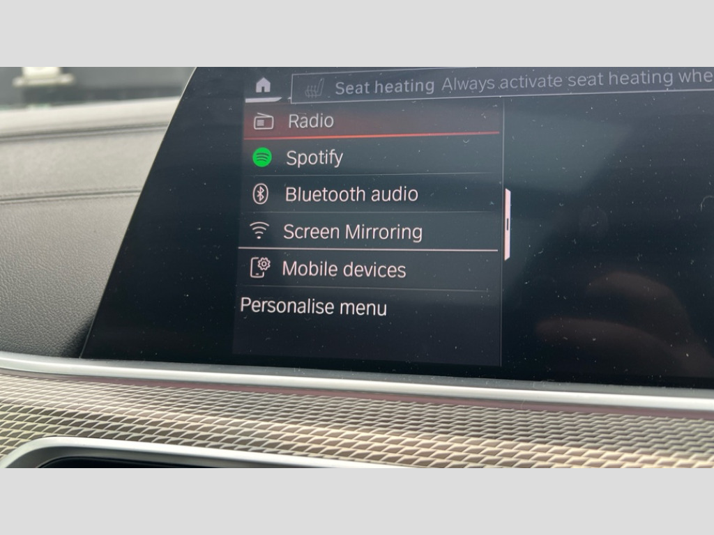 BMW X5 xDrive30d MHT M Sport 5dr Auto 20GB hard disc drive (HDD) memory, Active guard plus, Attentiveness assist, Automatic tailgate with top hinged section open and manual bottom hinged section, BMW ConnectedDrive online services, BMW digital live cockpit professional - 12.3" digital instrument panel and 12.3" CID, with touch/voice command, BMW Drive recorder, BMW gesture control, BMW legal emergency call, BMW Teleservices, Brake force display, Brake pad wear indicator warning light, Enhanced bluetooth hands free facility with Telephony wireless charging, Front/rear park distance control, Galvanised plastic keyfob, Head up Display, iDrive touch controller with shortcut buttons, Infinity symbol with line graphic on reset of average consumption, Lights on warning, Oil sensor for level and grade, On board computer inc. average speed, fuel consumption, liquid crystal Info display, journey computer, outside temperature display, personal profile, Parking assistance plus with ultrasound based assistance system, reversing assistant, lateral parking aid and surround view system, Service interval indicator, Speed limit info display, Wi-Fi hotspot, 48V Mild hybrid technology, Adaptive 2-axle air suspension, Diesel particulate filter, Double wishbone front axle, Drive performance control with ECO PRO comfort + sport mode, Eight speed steptronic sport automatic transmission and gearshift paddles on the steering wheel, Safety battery terminal clamp, Variable vane geometry, DAB Tuner enables digital radio reception, Favourite buttons, USB connection, USB type A 1.5A in cupholder, USB Type C 3A in centre armrest, Active Air Stream kidney grille with high-gloss chrome, Adaptive air flap control bar in high-gloss black, Automatically dimming rear view mirror, Body colour bumpers, Body colour door handles, Dynamic brake lights with LED technology, Exhaust tailpipes - single, left and right with Chrome finisher, Follow me home headlight function, Front and rear electric windows with open and close fingertip control, anti trap facility and comfort closing, Heated windscreen washer jets, High gloss black outer and central air intakes on front bumper with pearlescent chrome finish, High gloss black Side elements, LED daytime running lights, LED fog lights, LED rear lights, M aerodynamic body styling, M designation on left and right front side panels, Pearlescent chrome front grille bars, Rain sensor with automatic headlight activation and windscreen wiper control, Satin aluminium side window graphic, Third brake light in rear spoiler, Variable intermittent rear wash/wipe, Welcome light carpet, X5 on left tailgate, xDrive designation on right tailgate, 12V - Power sockets with 2x centre console and 1x luggage compartment, 40:20:40 split folding rear seats, Ambient interior lighting with 6 pre-designed selectable lights including dynamic function, Centre and rear interior light, Child seat ISOFIX attachment with rear outer seats includes top tether, Electric front seat adjustment with driver and front passenger memory function, Electrical steering column with adjustable height and length with activation and control on the steering column, Foldable rear centre armrest with 2 cupholders and storage compartment, Front and rear cupholders x 2, Front and rear door pockets, Front and rear door sill inlays with illuminated BMW M designation, Front and rear side armrest integrated into door trim, Front footwell lights, Front reading lights, Light inside glove compartment, Lockable glove compartment, Luggage compartment floor panel with integral storage tray, Luggage compartment lighting, M leather steering wheel, M specific key, M specific pedals, M specific steering wheel, M specific velour floor mats, Make-up mirror lights, Multifunction controls for leather steering wheel, Multifunctional hooks, Rear head restraints, Seat back with flap pocket, Securing rings in luggage compartment, Storage bins on all doors, Storage tray and compartment with cover in centre console, Sunvisors with illuminated vanity mirrors, Toolkit located in luggage compartment, Connected Package Professional - X5, Expanded exterior mirror pack - X5/X5 M, Non-smokers pack - X5, Airbags - driver/front passenger, rear and side, first and second row seats head airbags, front passenger seat airbag deactivation + knee airbag, Anti-lock braking system (ABS), Automatic Stability Control (ASC), Brake drying, Brake energy regeneration, Brake fade compensation, Braking pre-tensioning, Cornering brake control (CBC), Crash sensor activating central locking release, hazard warning lights, fuel cut off, interior lighting + activation of safety battery terminal clamp, Deformation zones - front and rear with door reinforcements and bumpers up to 2.5 mph, DSC - Dynamic Stability Control, Dynamic brake control, Dynamic Traction Control - DTC, Electromechanical parking brake with automatic drive away release and auto hold function, Electronic brake force distribution, Front and rear seatbelts with seatbelt stopper, seatbelt tensioner for front and outer rear seats and belt force limiter, Front head restraints with anti-whiplash, Height adjustable front seatbelts, Hill start assistant, Integrated brake system, M Sport braking system in blue high gloss + blue painted brake calipers with M designation, Mechanical child proof lock on rear doors, Passive protection for pedestrians, Seat occupancy detection for driver and passenger side, Side impact protection, Three 3 point inertia reel seatbelts, Two tone horn, Tyre pressure monitoring system, Ventilated front and rear disc brakes, Warning triangle and first aid kit, Closing system with central locking, Driver and front passenger door centre lock switch, Locking wheel bolts, Thatcham 1 alarm system with remote control and engine immobiliser, Start/stop toggle diamond shaped trim finisher in pearl chrome