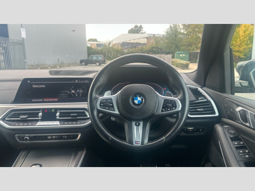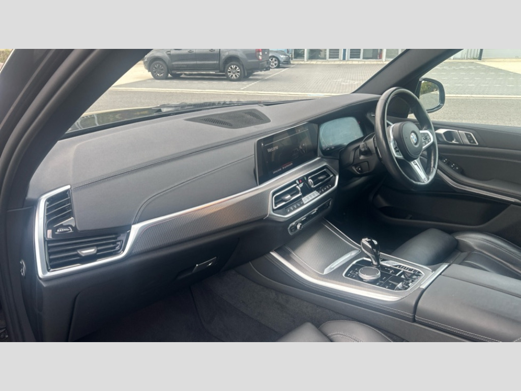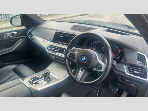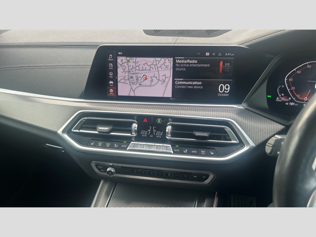 BMW X5 xDrive30d MHT M Sport 5dr Auto 20GB hard disc drive (HDD) memory, Active guard plus, Attentiveness assist, Automatic tailgate with top hinged section open and manual bottom hinged section, BMW ConnectedDrive online services, BMW digital live cockpit professional - 12.3" digital instrument panel and 12.3" CID, with touch/voice command, BMW legal emergency call, BMW Teleservices, Brake force display, Brake pad wear indicator warning light, Front/rear park distance control, iDrive touch controller with shortcut buttons, Lights on warning, Oil sensor for level and grade, On board computer inc. average speed, fuel consumption, liquid crystal Info display, journey computer, outside temperature display, personal profile, Service interval indicator, Speed limit info display, 48V Mild hybrid technology, Adaptive 2-axle air suspension, Diesel particulate filter, Double wishbone front axle, Drive performance control with ECO PRO comfort + sport mode, Eight speed steptronic sport automatic transmission and gearshift paddles on the steering wheel, Safety battery terminal clamp, Variable vane geometry, DAB Tuner enables digital radio reception, Favourite buttons, USB connection, USB type A 1.5A in cupholder, USB Type C 3A in centre armrest, Active Air Stream kidney grille with high-gloss chrome, Adaptive air flap control bar in high-gloss black, Automatically dimming rear view mirror, BMW Individual high gloss black shadow line roof rails, Body colour bumpers, Body colour door handles, Dynamic brake lights with LED technology, Exhaust tailpipes - single, left and right with Chrome finisher, Follow me home headlight function, Front and rear electric windows with open and close fingertip control, anti trap facility and comfort closing, Heated windscreen washer jets, High beam assistant, High gloss black outer and central air intakes on front bumper with pearlescent chrome finish, High gloss black Side elements, LED daytime running lights, LED rear lights, M aerodynamic body styling, M designation on left and right front side panels, Pearlescent chrome front grille bars, Rain sensor with automatic headlight activation and windscreen wiper control, Satin aluminium side window graphic, Third brake light in rear spoiler, Variable intermittent rear wash/wipe, Welcome light carpet, X5 on left tailgate, xDrive designation on right tailgate, 12V - Power sockets with 2x centre console and 1x luggage compartment, 40:20:40 split folding rear seats, Ambient interior lighting with 6 pre-designed selectable lights including dynamic function, Centre and rear interior light, Child seat ISOFIX attachment with rear outer seats includes top tether, Compartment in front of cupholder, Electric front seat adjustment with driver and front passenger memory function, Electrical steering column with adjustable height and length with activation and control on the steering column, Foldable rear centre armrest with 2 cupholders and storage compartment, Front and rear cupholders x 2, Front and rear door pockets, Front and rear door sill inlays with illuminated BMW M designation, Front and rear side armrest integrated into door trim, Front footwell lights, Front reading lights, Light inside glove compartment, Lockable glove compartment, Luggage compartment floor panel with integral storage tray, Luggage compartment lighting, M leather steering wheel, M specific key, M specific steering wheel, M specific velour floor mats, Make-up mirror lights, Multifunction controls for leather steering wheel, Multifunctional hooks, Rear head restraints, Seat back with flap pocket, Securing rings in luggage compartment, Storage bins on all doors, Storage tray and compartment with cover in centre console, Sunvisors with illuminated vanity mirrors, Toolkit located in luggage compartment, Connected Package Professional - X5, Expanded exterior mirror pack - X5/X5 M, Non-smokers pack - X5, Airbags - driver/front passenger, rear and side, first and second row seats head airbags, front passenger seat airbag deactivation + knee airbag, Anti-lock braking system (ABS), Automatic Stability Control (ASC), Brake drying, Brake energy regeneration, Brake fade compensation, Braking pre-tensioning, Cornering brake control (CBC), Crash sensor activating central locking release, hazard warning lights, fuel cut off, interior lighting + activation of safety battery terminal clamp, Deformation zones - front and rear with door reinforcements and bumpers up to 2.5 mph, DSC - Dynamic Stability Control, Dynamic brake control, Dynamic Traction Control - DTC, Electromechanical parking brake with automatic drive away release and auto hold function, Electronic brake force distribution, Front and rear seatbelts with seatbelt stopper, seatbelt tensioner for front and outer rear seats and belt force limiter, Front head restraints with anti-whiplash, Height adjustable front seatbelts, Hill start assistant, Integrated brake system, Mechanical child proof lock on rear doors, Passive protection for pedestrians, Seat occupancy detection for driver and passenger side, Side impact protection, Three 3 point inertia reel seatbelts, Two tone horn, Tyre pressure monitoring system, Ventilated front and rear disc brakes, Warning triangle and first aid kit, Closing system with central locking, Driver and front passenger door centre lock switch, Locking wheel bolts, Thatcham 1 alarm system with remote control and engine immobiliser, Start/stop toggle diamond shaped trim finisher in pearl chrome