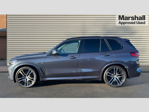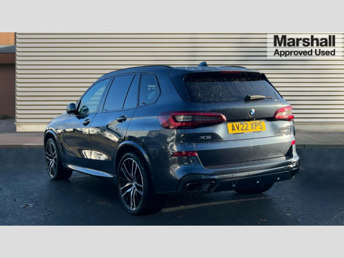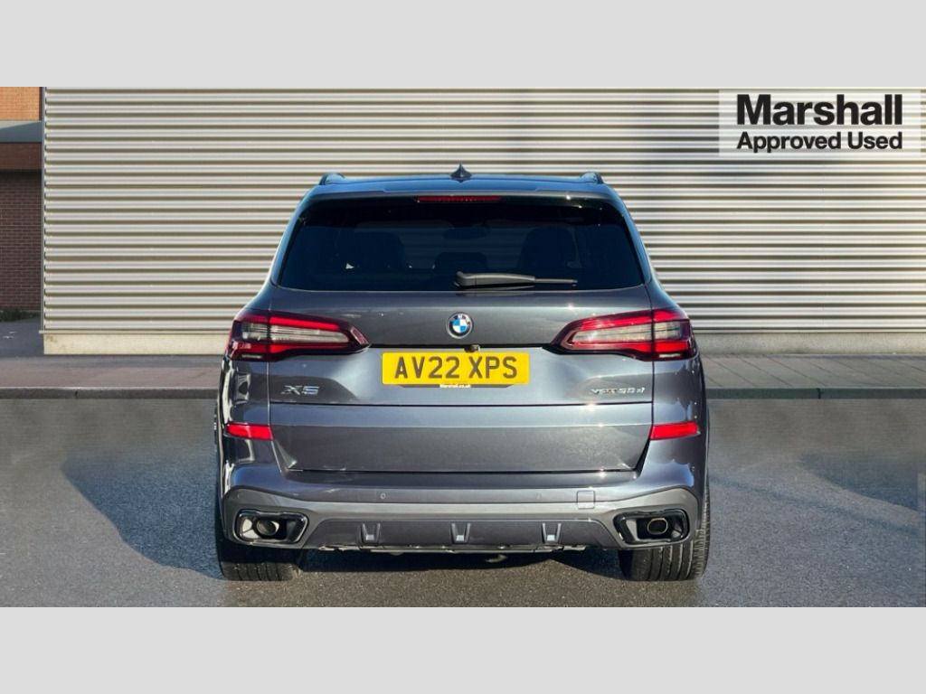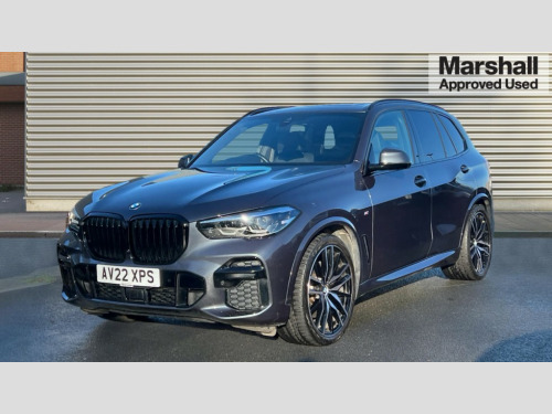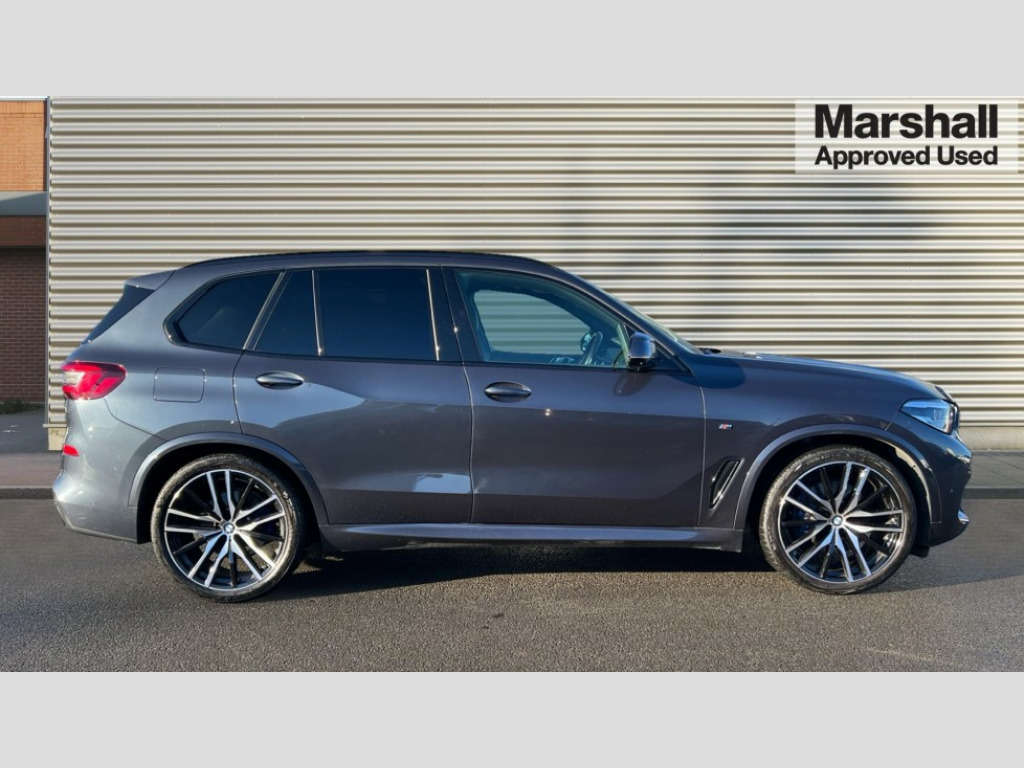 BMW X5 xDrive30d MHT M Sport 5dr Auto 20GB hard disc drive (HDD) memory, Active guard plus, Attentiveness assist, Automatic tailgate with top hinged section open and manual bottom hinged section, BMW ConnectedDrive online services, BMW digital live cockpit professional - 12.3" digital instrument panel and 12.3" CID, with touch/voice command, BMW legal emergency call, BMW Teleservices, Brake force display, Brake pad wear indicator warning light, Enhanced bluetooth with wireless charging, Front/rear park distance control, iDrive controller with shortcut buttons, Lights on warning, Oil sensor for level and grade, On board computer inc. average speed, fuel consumption, liquid crystal Info display, journey computer, outside temperature display, personal profile, Service interval indicator, Speed limit info display, Wi-Fi hotspot, 48V Mild hybrid technology, Adaptive 2-axle air suspension, Common rail technology, Diesel particulate filter, Double wishbone front axle, Drive performance control with ECO PRO comfort + sport mode, Eight speed steptronic sport automatic transmission and gearshift paddles on the steering wheel, Safety battery terminal clamp, Variable vane geometry, DAB Tuner enables digital radio reception, Favourite buttons, USB connection, USB type A 1.5A in cupholder, USB Type C 3A in centre armrest, Active Air Stream kidney grille with high-gloss chrome, Adaptive air flap control bar in high-gloss black, Automatically dimming rear view mirror, BMW Individual high gloss black shadow line roof rails, BMW Individual high gloss shadow line with extended contents, Body colour bumpers, Body colour door handles, Dynamic brake lights with LED technology, Exhaust tailpipes - single, left and right with Chrome finisher, Follow me home headlight function, Front and rear electric windows with open and close fingertip control, anti trap facility and comfort closing, Heated windscreen washer jets, High beam assistant, High gloss black outer and central air intakes on front bumper with pearlescent chrome finish, High gloss black Side elements, LED daytime running lights, LED rear lights, M aerodynamic body styling, M designation on left and right front side panels, M Sport exhaust system, Pearlescent chrome front grille bars, Rain sensor with automatic headlight activation and windscreen wiper control, Rear side wing doors, Satin aluminium side window graphic, Sun protection glazing, Third brake light in rear spoiler, Variable intermittent rear wash/wipe, Welcome light carpet, X5 on left tailgate, xDrive designation on right tailgate, 12V - Power sockets with 2x centre console and 1x luggage compartment, 3 seat bench in 2nd row, 40:20:40 split folding rear seats, Ambient interior lighting with 6 pre-designed selectable lights including dynamic function, Centre and rear interior light, Child seat ISOFIX attachment with rear outer seats includes top tether, Compartment in front of cupholder, Electric front seat adjustment with driver and front passenger memory function, Electrical steering column with adjustable height and length with activation and control on the steering column, Foldable rear centre armrest with 2 cupholders and storage compartment, Front and rear cupholders x 2, Front and rear door pockets, Front and rear door sill inlays with illuminated BMW M designation, Front and rear side armrest integrated into door trim, Front footwell lights, Front reading lights, Light inside glove compartment, Lockable glove compartment, Luggage compartment floor panel with integral storage tray, Luggage compartment lighting, M leather steering wheel, M specific key, M specific steering wheel, M specific velour floor mats, Make-up mirror lights, Multifunction controls for leather steering wheel, Multifunctional hooks, Rear head restraints, Seat back with flap pocket, Securing rings in luggage compartment, Single front passenger seat, Storage bins on all doors, Storage tray and compartment with cover in centre console, Sunvisors with illuminated vanity mirrors, Toolkit located in luggage compartment, Connected Package Professional - X5, Expanded exterior mirror pack - X5/X5 M, Non-smokers pack - X5, Active protection, Airbags - driver/front passenger, rear and side, first and second row seats head airbags, front passenger seat airbag deactivation + knee airbag, Anti-lock braking system (ABS), Automatic Stability Control (ASC), Brake drying, Brake energy regeneration, Brake fade compensation, Braking pre-tensioning, Cornering brake control (CBC), Crash sensor activating central locking release, hazard warning lights, fuel cut off, interior lighting + activation of safety battery terminal clamp, Deformation zones - front and rear with door reinforcements and bumpers up to 2.5 mph, DSC - Dynamic Stability Control, Dynamic brake control, Dynamic Traction Control - DTC, Electromechanical parking brake with automatic drive away release and auto hold function, Electronic brake force distribution, Front and rear seatbelts with seatbelt stopper, seatbelt tensioner for front and outer rear seats and belt force limiter, Front head restraints with anti-whiplash, Height adjustable front seatbelts, Hill start assistant, Integrated brake system, M sport seatbelt, Mechanical child proof lock on rear doors, Passive protection for pedestrians, Seat occupancy detection for driver and passenger side, Side impact protection, Three 3 point inertia reel seatbelts, Two tone horn, Tyre pressure monitoring system, Ventilated front and rear disc brakes, Warning triangle and first aid kit, Closing system with central locking, Driver and front passenger door centre lock switch, Locking wheel bolts, Thatcham 1 alarm system with remote control and engine immobiliser, Start/stop toggle diamond shaped trim finisher in pearl chrome