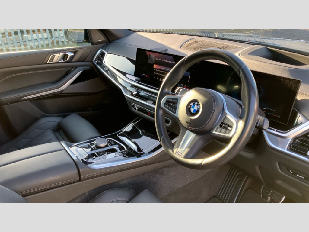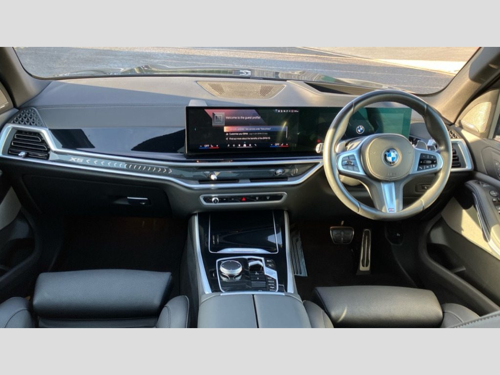 BMW X5 xDrive30d MHT M Sport 5dr Auto Attentiveness assist, Automatic tailgate operation, BMW ConnectedDrive online services, BMW Recovery system, BMW Teleservices, Condition based service, Cruise control with brake assist, eCall emergency call system, Enhanced bluetooth with wireless charging, Integrated owner's handbook, Navigation/Tuner with diversity reception,RDS/4GLTE/remote software upgrade, PAS, Speed limiter, Wi-Fi hotspot, Drive performance control with ECO PRO comfort + sport mode, Eight speed steptronic sport automatic transmission and gearshift paddles on the steering wheel, Adaptive LED Headlights, Front and rear electric windows, High beam assistant, High gloss black shadow line roof rails, LED daytime running lights, Rear side wing doors, Third brake light in rear spoiler, Variable intermittent rear wash/wipe, 12V - Power sockets with 2x centre console and 1x luggage compartment, 3 seat bench in 2nd row, Foldable rear centre armrest with 2 cupholders and storage compartment, Front and rear side armrest integrated into door trim, Headrests for all seats, Luggage compartment separating net, Single front passenger seat, Three spoke sport M leather steering wheel, Velour floormats, Ambient light interior pack - X5, Driving assistant pack with radar based driver assistance system - X5, Expanded exterior mirror pack - X5/X5 M, M aerodynamics pack - X5, M sport pro package - X5, 3 rear seatbelts, Active protection, Airbags - driver/front passenger, rear and side, first and second row seats head airbags, front passenger seat airbag deactivation + knee airbag, Anti-lock braking system (ABS), Automatic Stability Control (ASC), Brake energy regeneration, Cornering brake control (CBC), Crash sensor activating central locking release, hazard warning lights, fuel cut off, interior lighting + activation of safety battery terminal clamp, DSC - Dynamic Stability Control, Dynamic Traction Control - DTC, Electromechanical parking brake with automatic drive away release and auto hold function, Electronic brake force distribution, Hill start assistant, Mechanical child proof lock on rear doors, Tyre pressure monitoring system, Tyre pressure sensors, Ventilated front and rear disc brakes, Warning triangle and first aid kit, Closing system with central locking, Comfort access system, Locking wheel bolts, Sensatec instrument panel
