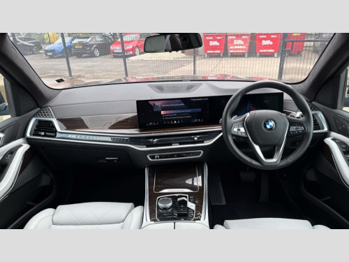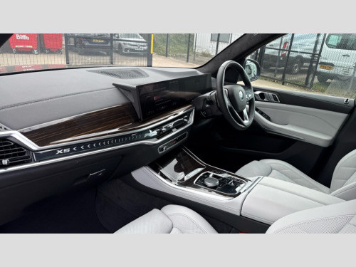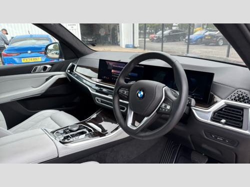 BMW X5 xDrive30d MHT xLine 5dr Auto Attentiveness assist, Automatic tailgate operation, BMW ConnectedDrive online services, BMW Recovery system, BMW Teleservices, Condition based service, Cruise control with brake assist, eCall emergency call system, Enhanced bluetooth with wireless charging, Integrated owner's handbook, PAS, Speed limiter, Wi-Fi hotspot, Drive performance control with ECO PRO comfort + sport mode, Eight speed steptronic sport automatic transmission and gearshift paddles on the steering wheel, Adaptive LED Headlights, Aluminium roof rails, Front and rear electric windows, High beam assistant, LED daytime running lights, Rain sensor, Rear side wing doors, Third brake light in rear spoiler, Variable intermittent rear wash/wipe, 12V - Power sockets with 2x centre console and 1x luggage compartment, 3 seat bench in 2nd row, Electric front seat adjustment with driver and front passenger memory function, Foldable rear centre armrest with 2 cupholders and storage compartment, Front and rear side armrest integrated into door trim, Headrests for all seats, Luggage compartment separating net, Lumbar support with height and depth adjustment in backrest, Single front passenger seat, Three spoke sport leather steering wheel, Velour floormats, Ambient light interior pack - X5, Driving assistant pack with radar based driver assistance system - X5, Expanded exterior mirror pack - X5/X5 M, 3 rear seatbelts, Active protection, Airbags - driver/front passenger, rear and side, first and second row seats head airbags, front passenger seat airbag deactivation + knee airbag, Anti-lock braking system (ABS), Automatic Stability Control (ASC), Brake energy regeneration, Cornering brake control (CBC), Crash sensor activating central locking release, hazard warning lights, fuel cut off, interior lighting + activation of safety battery terminal clamp, DSC - Dynamic Stability Control, Dynamic Traction Control - DTC, Electromechanical parking brake with automatic drive away release and auto hold function, Electronic brake force distribution, Hill start assistant, Mechanical child proof lock on rear doors, Tyre pressure monitoring system, Tyre pressure sensors, Ventilated front and rear disc brakes, Warning triangle and first aid kit, Alarm system, Closing system with central locking, Comfort access system, Locking wheel bolts