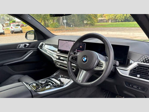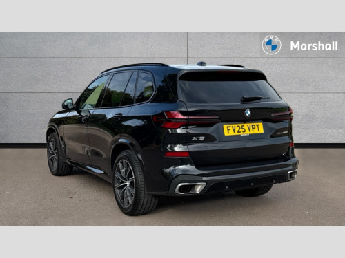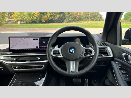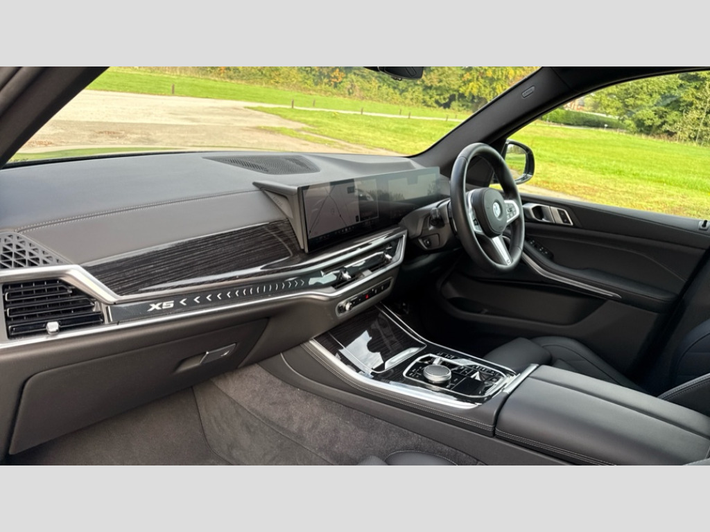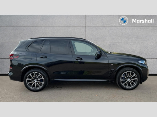 BMW X5 xDrive40d MHT M Sport 5dr Auto Attentiveness assist, Automatic tailgate operation, BMW ConnectedDrive online services, BMW live cockpit + with curved 12.3 instrument cluster/14.9 central display,nav/Tuner with diversity reception,RDS/4GLTE/remote software upgrade, BMW Recovery system, BMW Teleservices, Condition based service, Cruise control with brake assist, eCall emergency call system, Enhanced bluetooth with wireless charging, Integrated owner's handbook, PAS, Speed limiter, Wi-Fi hotspot, Drive performance control with ECO PRO comfort + sport mode, Eight speed steptronic sport automatic transmission and gearshift paddles on the steering wheel, Adaptive LED Headlights, Front and rear electric windows, High beam assistant, High gloss black shadow line roof rails, LED daytime running lights, Rain sensor, Rear side wing doors, Third brake light in rear spoiler, Variable intermittent rear wash/wipe, 12V - Power sockets with 2x centre console and 1x luggage compartment, 3 seat bench in 2nd row, Foldable rear centre armrest with 2 cupholders and storage compartment, Front and rear side armrest integrated into door trim, Headrests for all seats, Luggage compartment separating net, Lumbar support with height and depth adjustment in backrest, Single front passenger seat, Three spoke sport M leather steering wheel, Velour floormats, Ambient light interior pack - X5, Driving assistant pack with radar based driver assistance system - X5, Expanded exterior mirror pack - X5/X5 M, M aerodynamics pack - X5, Parking assistant pack - X5, 3 rear seatbelts, Active protection, Airbags - driver/front passenger, rear and side, first and second row seats head airbags, front passenger seat airbag deactivation + knee airbag, Anti-lock braking system (ABS), Automatic Stability Control (ASC), Brake energy regeneration, Cornering brake control (CBC), Crash sensor activating central locking release, hazard warning lights, fuel cut off, interior lighting + activation of safety battery terminal clamp, DSC - Dynamic Stability Control, Dynamic Traction Control - DTC, Electromechanical parking brake with automatic drive away release and auto hold function, Electronic brake force distribution, Hill start assistant, M Sport blue painted brake calipers with 'M' designation, Mechanical child proof lock on rear doors, Tyre pressure monitoring system, Tyre pressure sensors, Ventilated front and rear disc brakes, Warning triangle and first aid kit, Alarm system, Closing system with central locking, Comfort access system, Locking wheel bolts
