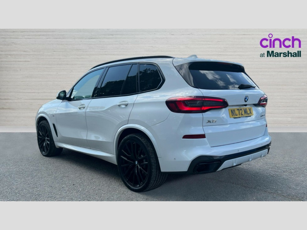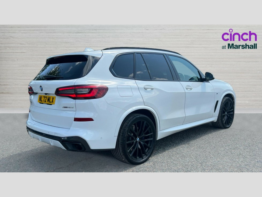 BMW X5 xDrive40d MHT M Sport 5dr Auto 20GB hard disc drive (HDD) memory, Active guard plus, Attentiveness assist, Automatic tailgate with top hinged section open and manual bottom hinged section, BMW ConnectedDrive online services, BMW digital live cockpit professional - 12.3" digital instrument panel and 12.3" CID, with touch/voice command, BMW legal emergency call, BMW Teleservices, Brake force display, Brake pad wear indicator warning light, Cruise control with brake assist, Enhanced bluetooth with wireless charging, Front/rear park distance control, iDrive controller with shortcut buttons, Lights on warning, Oil sensor for level and grade, On board computer inc. average speed, fuel consumption, liquid crystal Info display, journey computer, outside temperature display, personal profile, Service interval indicator, Speed limit info display, Speed limiting function, Wi-Fi hotspot, 48V Mild hybrid technology, Adaptive 2-axle air suspension, Common rail technology, Diesel particulate filter, Double wishbone front axle, Drive performance control with ECO PRO comfort + sport mode, Eight speed steptronic sport automatic transmission and gearshift paddles on the steering wheel, Safety battery terminal clamp, Variable vane geometry, DAB Tuner enables digital radio reception, Favourite buttons, Hi-Fi loudspeaker system, USB connection, USB type A 1.5A in cupholder, USB Type C 3A in centre armrest, Active Air Stream kidney grille with high-gloss chrome, Adaptive air flap control bar in high-gloss black, Automatically dimming rear view mirror, BMW Individual high gloss black shadow line roof rails, BMW Individual high gloss shadow line with extended contents, Body colour bumpers, Body colour door handles, Dynamic brake lights with LED technology, Exhaust tailpipes - single, left and right with Chrome finisher, Follow me home headlight function, Front and rear electric windows with open and close fingertip control, anti trap facility and comfort closing, Heated windscreen washer jets, High beam assistant, High gloss black outer and central air intakes on front bumper with pearlescent chrome finish, High gloss black Side elements, LED daytime running lights, LED rear lights, M aerodynamic body styling, M designation on left and right front side panels, M Sport exhaust system, Pearlescent chrome front grille bars, Rain sensor with automatic headlight activation and windscreen wiper control, Rear side wing doors, Satin aluminium side window graphic, Sun protection glazing, Third brake light in rear spoiler, Variable intermittent rear wash/wipe, Welcome light carpet, X5 on left tailgate, xDrive designation on right tailgate, 12V - Power sockets with 2x centre console and 1x luggage compartment, 3 seat bench in 2nd row, 40:20:40 split folding rear seats, Ambient interior lighting with 6 pre-designed selectable lights including dynamic function, Centre and rear interior light, Child seat ISOFIX attachment with rear outer seats includes top tether, Compartment in front of cupholder, Electric front seat adjustment with driver and front passenger memory function, Electrical steering column with adjustable height and length with activation and control on the steering column, Foldable rear centre armrest with 2 cupholders and storage compartment, Front and rear cupholders x 2, Front and rear door pockets, Front and rear door sill inlays with illuminated BMW M designation, Front and rear side armrest integrated into door trim, Front footwell lights, Front reading lights, Light inside glove compartment, Lockable glove compartment, Luggage compartment floor panel with integral storage tray, Luggage compartment lighting, M leather steering wheel, M specific key, M specific steering wheel, Make-up mirror lights, Multifunction controls for leather steering wheel, Multifunctional hooks, Rear head restraints, Seat back with flap pocket, Securing rings in luggage compartment, Single front passenger seat, Storage bins on all doors, Storage tray and compartment with cover in centre console, Sunvisors with illuminated vanity mirrors, Toolkit located in luggage compartment, Velour floormats, Connected Package Professional - X5, Expanded exterior mirror pack - X5/X5 M, Non-smokers pack - X5, Active protection, Airbags - driver/front passenger, rear and side, first and second row seats head airbags, front passenger seat airbag deactivation + knee airbag, Anti-lock braking system (ABS), Automatic Stability Control (ASC), Brake drying, Brake energy regeneration, Brake fade compensation, Braking pre-tensioning, Cornering brake control (CBC), Crash sensor activating central locking release, hazard warning lights, fuel cut off, interior lighting + activation of safety battery terminal clamp, Deformation zones - front and rear with door reinforcements and bumpers up to 2.5 mph, DSC - Dynamic Stability Control, Dynamic brake control, Dynamic Traction Control - DTC, Electromechanical parking brake with automatic drive away release and auto hold function, Electronic brake force distribution, Front and rear seatbelts with seatbelt stopper, seatbelt tensioner for front and outer rear seats and belt force limiter, Front head restraints with anti-whiplash, Height adjustable front seatbelts, Hill start assistant, Integrated brake system, M sport seatbelt, Mechanical child proof lock on rear doors, Passive protection for pedestrians, Seat occupancy detection for driver and passenger side, Side impact protection, Three 3 point inertia reel seatbelts, Two tone horn, Tyre pressure monitoring system, Ventilated front and rear disc brakes, Warning triangle and first aid kit, Closing system with central locking, Driver and front passenger door centre lock switch, Locking wheel bolts, Thatcham 1 alarm system with remote control and engine immobiliser, Start/stop toggle diamond shaped trim finisher in pearl chrome