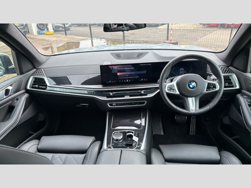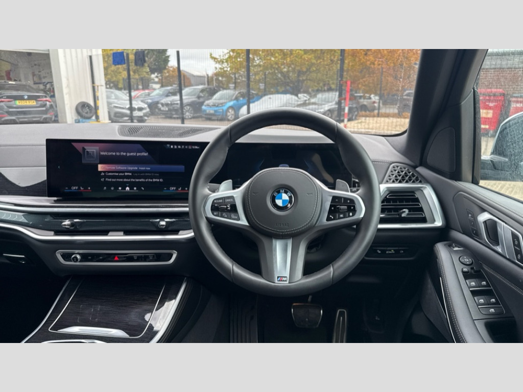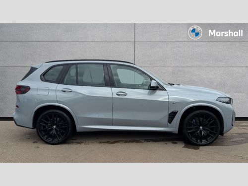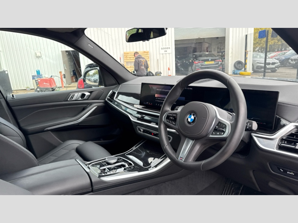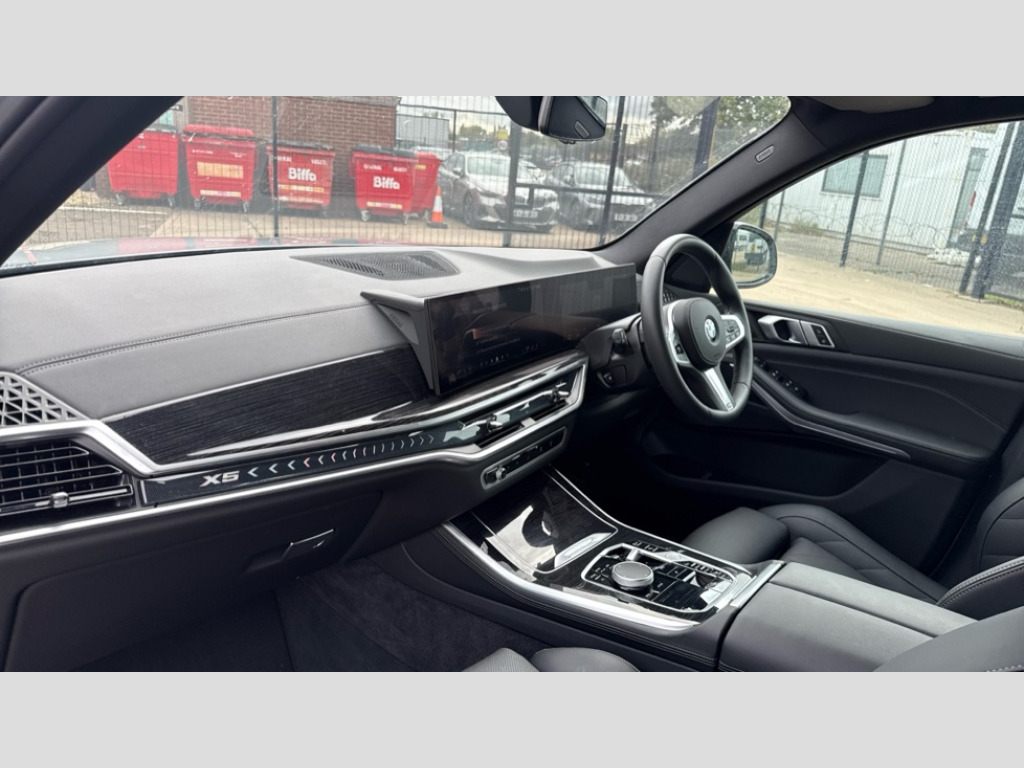 BMW X5 xDrive40d MHT M Sport 5dr Auto Attentiveness assist, Automatic tailgate operation, BMW ConnectedDrive online services, BMW live cockpit + with curved 12.3 instrument cluster/14.9 central display,nav/Tuner with diversity reception,RDS/4GLTE/remote software upgrade, BMW Recovery system, BMW Teleservices, Condition based service, Cruise control with brake assist, eCall emergency call system, Enhanced bluetooth with wireless charging, Integrated owner's handbook, PAS, Speed limiter, Wi-Fi hotspot, Drive performance control with ECO PRO comfort + sport mode, Eight speed steptronic sport automatic transmission and gearshift paddles on the steering wheel, Adaptive LED Headlights, BMW Iconic glow kidney grille, Front and rear electric windows, High beam assistant, High gloss black shadow line roof rails, LED daytime running lights, Rain sensor, Rear side wing doors, Third brake light in rear spoiler, Variable intermittent rear wash/wipe, 12V - Power sockets with 2x centre console and 1x luggage compartment, 3 seat bench in 2nd row, Foldable rear centre armrest with 2 cupholders and storage compartment, Front and rear side armrest integrated into door trim, Headrests for all seats, Luggage compartment separating net, Lumbar support with height and depth adjustment in backrest, Single front passenger seat, Three spoke sport M leather steering wheel, Velour floormats, Ambient light interior pack - X5, Driving assistant pack with radar based driver assistance system - X5, Expanded exterior mirror pack - X5/X5 M, M aerodynamics pack - X5, M sport pro package - X5, Parking assistant pack - X5, 3 rear seatbelts, Active protection, Airbags - driver/front passenger, rear and side, first and second row seats head airbags, front passenger seat airbag deactivation + knee airbag, Anti-lock braking system (ABS), Automatic Stability Control (ASC), Brake energy regeneration, Cornering brake control (CBC), Crash sensor activating central locking release, hazard warning lights, fuel cut off, interior lighting + activation of safety battery terminal clamp, DSC - Dynamic Stability Control, Dynamic Traction Control - DTC, Electromechanical parking brake with automatic drive away release and auto hold function, Electronic brake force distribution, Hill start assistant, Mechanical child proof lock on rear doors, Tyre pressure monitoring system, Tyre pressure sensors, Ventilated front and rear disc brakes, Warning triangle and first aid kit, Alarm system, Closing system with central locking, Comfort access system, Locking wheel bolts