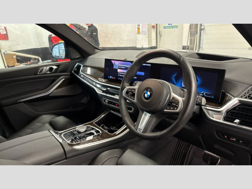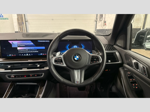 BMW X5 xDrive40d MHT M Sport 5dr Auto Attentiveness assist, Automatic tailgate operation, BMW ConnectedDrive online services, BMW Recovery system, BMW Teleservices, Condition based service, Cruise control with brake assist, eCall emergency call system, Enhanced bluetooth with wireless charging, Integrated owner's handbook, Navigation/Tuner with diversity reception,RDS/4GLTE/remote software upgrade, PAS, Speed limiter, Wi-Fi hotspot, Drive performance control with ECO PRO comfort + sport mode, Eight speed steptronic sport automatic transmission and gearshift paddles on the steering wheel, Adaptive LED Headlights, Front and rear electric windows, High beam assistant, High gloss black shadow line roof rails, LED daytime running lights, Rain sensor, Rear side wing doors, Third brake light in rear spoiler, Variable intermittent rear wash/wipe, 12V - Power sockets with 2x centre console and 1x luggage compartment, 3 seat bench in 2nd row, Foldable rear centre armrest with 2 cupholders and storage compartment, Front and rear side armrest integrated into door trim, Headrests for all seats, Luggage compartment separating net, Lumbar support with height and depth adjustment in backrest, Single front passenger seat, Three spoke sport M leather steering wheel, Velour floormats, Ambient light interior pack - X5, Driving assistant pack with radar based driver assistance system - X5, Expanded exterior mirror pack - X5/X5 M, M aerodynamics pack - X5, 3 rear seatbelts, Active protection, Airbags - driver/front passenger, rear and side, first and second row seats head airbags, front passenger seat airbag deactivation + knee airbag, Anti-lock braking system (ABS), Automatic Stability Control (ASC), Brake energy regeneration, Cornering brake control (CBC), Crash sensor activating central locking release, hazard warning lights, fuel cut off, interior lighting + activation of safety battery terminal clamp, DSC - Dynamic Stability Control, Dynamic Traction Control - DTC, Electromechanical parking brake with automatic drive away release and auto hold function, Electronic brake force distribution, Hill start assistant, M Sport blue painted brake calipers with 'M' designation, Mechanical child proof lock on rear doors, Tyre pressure monitoring system, Tyre pressure sensors, Ventilated front and rear disc brakes, Warning triangle and first aid kit, Alarm system, Closing system with central locking, Comfort access system, Locking wheel bolts