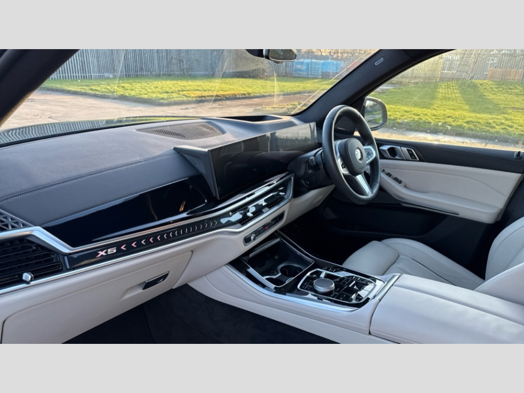 BMW X5 xDrive40d MHT M Sport 5dr Auto Attentiveness assist, Automatic tailgate operation, BMW ConnectedDrive online services, BMW Recovery system, BMW Teleservices, Condition based service, Cruise control with brake assist, eCall emergency call system, Enhanced bluetooth with wireless charging, Integrated owner's handbook, Navigation/Tuner with diversity reception,RDS/4GLTE/remote software upgrade, PAS, Speed limiter, Wi-Fi hotspot, Drive performance control with ECO PRO comfort + sport mode, Eight speed steptronic sport automatic transmission and gearshift paddles on the steering wheel, Adaptive LED Headlights, BMW Iconic glow kidney grille, Front and rear electric windows, High beam assistant, High gloss black shadow line roof rails, LED daytime running lights, Rain sensor, Rear side wing doors, Third brake light in rear spoiler, Variable intermittent rear wash/wipe, 12V - Power sockets with 2x centre console and 1x luggage compartment, 3 seat bench in 2nd row, Foldable rear centre armrest with 2 cupholders and storage compartment, Front and rear side armrest integrated into door trim, Headrests for all seats, Luggage compartment separating net, Lumbar support with height and depth adjustment in backrest, Single front passenger seat, Three spoke sport M leather steering wheel, Velour floormats, Ambient light interior pack - X5, Driving assistant pack with radar based driver assistance system - X5, Expanded exterior mirror pack - X5/X5 M, M aerodynamics pack - X5, M sport pro package - X5, 3 rear seatbelts, Active protection, Airbags - driver/front passenger, rear and side, first and second row seats head airbags, front passenger seat airbag deactivation + knee airbag, Anti-lock braking system (ABS), Automatic Stability Control (ASC), Brake energy regeneration, Cornering brake control (CBC), Crash sensor activating central locking release, hazard warning lights, fuel cut off, interior lighting + activation of safety battery terminal clamp, DSC - Dynamic Stability Control, Dynamic Traction Control - DTC, Electromechanical parking brake with automatic drive away release and auto hold function, Electronic brake force distribution, Hill start assistant, Mechanical child proof lock on rear doors, Tyre pressure monitoring system, Tyre pressure sensors, Ventilated front and rear disc brakes, Warning triangle and first aid kit, Alarm system, Closing system with central locking, Comfort access system, Locking wheel bolts