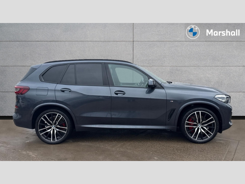 BMW X5 xDrive40i MHT M Sport 5dr Auto 20GB hard disc drive (HDD) memory, Active guard plus, Attentiveness assist, Automatic tailgate with top hinged section open and manual bottom hinged section, BMW ConnectedDrive online services, BMW digital live cockpit professional - 12.3" digital instrument panel and 12.3" CID, with touch/voice command, BMW legal emergency call, BMW Teleservices, Brake force display, Brake pad wear indicator warning light, Cruise control with brake assist, Front/rear park distance control, Galvanised plastic keyfob, iDrive touch controller with shortcut buttons, Infinity symbol with line graphic on reset of average consumption, Lights on warning, Oil sensor for level and grade, On board computer inc. average speed, fuel consumption, liquid crystal Info display, journey computer, outside temperature display, personal profile, Service interval indicator, Speed limit info display, Speed limiting function, 48V Mild hybrid technology, Adaptive 2-axle air suspension, Double VANOS, Double wishbone front axle, Drive performance control with ECO PRO comfort + sport mode, Eight speed steptronic sport automatic transmission and gearshift paddles on the steering wheel, High precision injection, Petrol Particulate Filter, Safety battery terminal clamp, Twin scroll turbocharger with Valvetronic, DAB Tuner enables digital radio reception, Favourite buttons, USB connection, USB type A 1.5A in cupholder, USB Type C 3A in centre armrest, Active Air Stream kidney grille with high-gloss chrome, Adaptive air flap control bar in high-gloss black, Automatically dimming rear view mirror, BMW Individual high gloss black shadow line roof rails, Body colour bumpers, Body colour door handles, Dynamic brake lights with LED technology, Exhaust tailpipes - single, left and right with Chrome finisher, Follow me home headlight function, Front and rear electric windows with open and close fingertip control, anti trap facility and comfort closing, Heated windscreen washer jets, High beam assistant, High gloss black outer and central air intakes on front bumper with pearlescent chrome finish, High gloss black Side elements, LED daytime running lights, LED rear lights, M aerodynamic body styling, M designation on left and right front side panels, Pearlescent chrome front grille bars, Rain sensor with automatic headlight activation and windscreen wiper control, Satin aluminium side window graphic, Third brake light in rear spoiler, Variable intermittent rear wash/wipe, Welcome light carpet, X5 on left tailgate, xDrive designation on right tailgate, 12V - Power sockets with 2x centre console and 1x luggage compartment, 40:20:40 split folding rear seats, Ambient interior lighting with 6 pre-designed selectable lights including dynamic function, Centre and rear interior light, Child seat ISOFIX attachment with rear outer seats includes top tether, Compartment in front of cupholder, Electric front seat adjustment with driver and front passenger memory function, Electrical steering column with adjustable height and length with activation and control on the steering column, Foldable rear centre armrest with 2 cupholders and storage compartment, Front and rear cupholders x 2, Front and rear door pockets, Front and rear door sill inlays with illuminated BMW M designation, Front and rear side armrest integrated into door trim, Front footwell lights, Front reading lights, Light inside glove compartment, Lockable glove compartment, Luggage compartment floor panel with integral storage tray, Luggage compartment lighting, M leather steering wheel, M specific key, M specific steering wheel, M specific velour floor mats, Make-up mirror lights, Multifunction controls for leather steering wheel, Multifunctional hooks, Rear head restraints, Seat back with flap pocket, Securing rings in luggage compartment, Storage bins on all doors, Storage tray and compartment with cover in centre console, Sunvisors with illuminated vanity mirrors, Toolkit located in luggage compartment, Connected Package Professional - X5, Expanded exterior mirror pack - X5/X5 M, Non-smokers pack - X5, Airbags - driver/front passenger, rear and side, first and second row seats head airbags, front passenger seat airbag deactivation + knee airbag, Anti-lock braking system (ABS), Automatic Stability Control (ASC), Brake drying, Brake energy regeneration, Brake fade compensation, Braking pre-tensioning, Cornering brake control (CBC), Crash sensor activating central locking release, hazard warning lights, fuel cut off, interior lighting + activation of safety battery terminal clamp, Deformation zones - front and rear with door reinforcements and bumpers up to 2.5 mph, DSC - Dynamic Stability Control, Dynamic brake control, Dynamic Traction Control - DTC, Electromechanical parking brake with automatic drive away release and auto hold function, Electronic brake force distribution, Front and rear seatbelts with seatbelt stopper, seatbelt tensioner for front and outer rear seats and belt force limiter, Front head restraints with anti-whiplash, Height adjustable front seatbelts, Hill start assistant, Integrated brake system, M Sport braking system in blue high gloss + blue painted brake calipers with M designation, Mechanical child proof lock on rear doors, Passive protection for pedestrians, Seat occupancy detection for driver and passenger side, Side impact protection, Three 3 point inertia reel seatbelts, Two tone horn, Tyre pressure monitoring system, Ventilated front and rear disc brakes, Warning triangle and first aid kit, Closing system with central locking, Driver and front passenger door centre lock switch, Locking wheel bolts, Thatcham 1 alarm system with remote control and engine immobiliser, Start/stop toggle diamond shaped trim finisher in pearl chrome