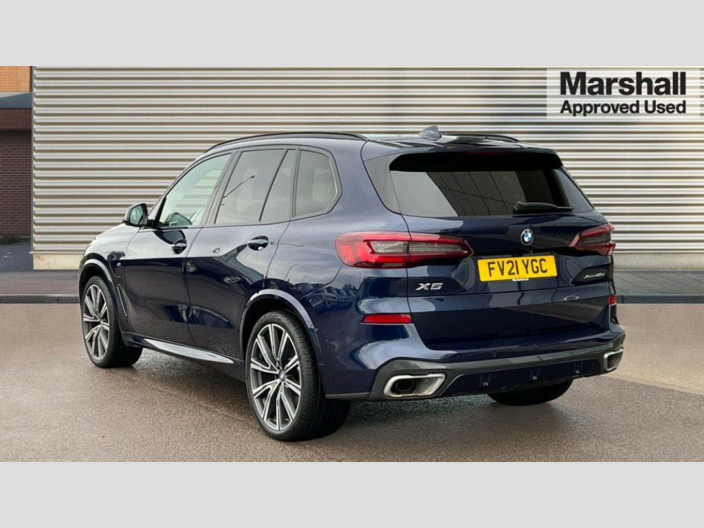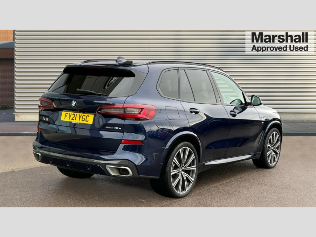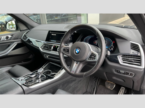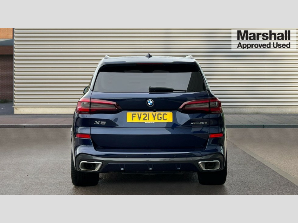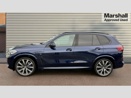 BMW X5 xDrive45e M Sport 5dr Auto 20GB hard disc drive (HDD) memory, Active guard plus, Attentiveness assist, Automatic tailgate with top hinged section open and manual bottom hinged section, BMW ConnectedDrive online services, BMW digital live cockpit professional - 12.3" digital instrument panel and 12.3" CID, with touch/voice command, BMW legal emergency call, BMW Teleservices, Brake force display, Brake pad wear indicator warning light, Driving readiness sound, eDrive button to select between AUTO eDrive, MAX eDrive and SAVE Battery settings, Enhanced bluetooth hands free facility with Telephony wireless charging, Front/rear park distance control, Galvanised plastic keyfob, Infinity symbol with line graphic on reset of average consumption, Lights on warning, Oil sensor for level and grade, On board computer inc. average speed, fuel consumption, liquid crystal Info display, journey computer, outside temperature display, personal profile, Service interval indicator, Speed limit info display, Wi-Fi hotspot, 5 metre standard charge cable, AC Fast charge cable, Adaptive 2-axle air suspension, Double VANOS, Double wishbone front axle, Drive performance control with ECO PRO comfort + sport mode, Eight speed steptronic sport automatic transmission and gearshift paddles on the steering wheel, High precision injection, Petrol Particulate Filter, Safety battery terminal clamp, Twin scroll turbocharger with Valvetronic, DAB Tuner enables digital radio reception, Favourite buttons, USB connection, USB type A 1.5A in cupholder, USB Type C 3A in centre armrest, Active Air Stream kidney grille with high-gloss chrome, Adaptive air flap control bar in high-gloss black, Automatically dimming rear view mirror, BMW Individual high gloss black shadow line roof rails, Body colour bumpers, Body colour door handles, Dynamic brake lights with LED technology, Exhaust tailpipes - single, left and right with Chrome finisher, Follow me home headlight function, Front and rear electric windows with open and close fingertip control, anti trap facility and comfort closing, Heated windscreen washer jets, High beam assistant, High gloss black outer and central air intakes on front bumper with pearlescent chrome finish, High gloss black Side elements, LED daytime running lights, LED fog lights, LED rear lights, Left charging flap on the front side, M aerodynamic body styling, M designation on left and right front side panels, Pearlescent chrome front grille bars, Rain sensor with automatic headlight activation and windscreen wiper control, Satin aluminium side window graphic, Third brake light in rear spoiler, Variable intermittent rear wash/wipe, Welcome light carpet, X5 on left tailgate, xDrive designation on right tailgate, 12V - Power sockets with 2x centre console and 1x luggage compartment, 40:20:40 split folding rear seats, Ambient interior lighting with 6 pre-designed selectable lights including dynamic function, Centre and rear interior light, Child seat ISOFIX attachment with rear outer seats includes top tether, Electric front seat adjustment with driver and front passenger memory function, Electrical steering column with adjustable height and length with activation and control on the steering column, Foldable rear centre armrest with 2 cupholders and storage compartment, Front and rear cupholders x 2, Front and rear door pockets, Front and rear door sill inlays with illuminated BMW M designation, Front and rear side armrest integrated into door trim, Front footwell lights, Front reading lights, Light inside glove compartment, Lockable glove compartment, Luggage compartment floor panel with integral storage tray, Luggage compartment lighting, M leather steering wheel, M specific key, M specific pedals, M specific steering wheel, M specific velour floor mats, Make-up mirror lights, Multifunction controls for leather steering wheel, Multifunctional hooks, Rear head restraints, Seat back with flap pocket, Securing rings in luggage compartment, Storage bins on all doors, Storage tray and compartment with cover in centre console, Sunvisors with illuminated vanity mirrors, Toolkit located in luggage compartment, Connected Package Professional - X5 xDrive45e, Expanded exterior mirror pack - X5/X5 M, Non-smokers pack - X5, Acoustic protection for pedestrians, Airbags - driver/front passenger, rear and side, first and second row seats head airbags, front passenger seat airbag deactivation + knee airbag, Anti-lock braking system (ABS), Automatic Stability Control (ASC), Brake drying, Brake energy regeneration, Brake fade compensation, Braking pre-tensioning, Cornering brake control (CBC), Crash sensor activating central locking release, hazard warning lights, fuel cut off, interior lighting + activation of safety battery terminal clamp, Deformation zones - front and rear with door reinforcements and bumpers up to 2.5 mph, DSC - Dynamic Stability Control, Dynamic brake control, Dynamic Traction Control - DTC, Electromechanical parking brake with automatic drive away release and auto hold function, Electronic brake force distribution, Front and rear seatbelts with seatbelt stopper, seatbelt tensioner for front and outer rear seats and belt force limiter, Front head restraints with anti-whiplash, Height adjustable front seatbelts, Hill start assistant, Integrated brake system, M Sport braking system in blue high gloss + blue painted brake calipers with M designation, Mechanical child proof lock on rear doors, Passive protection for pedestrians, Seat occupancy detection for driver and passenger side, Side impact protection, Three 3 point inertia reel seatbelts, Two tone horn, Tyre pressure monitoring system, Ventilated front and rear disc brakes, Warning triangle and first aid kit, Closing system with central locking, Driver and front passenger door centre lock switch, Locking wheel bolts, Thatcham 1 alarm system with remote control and engine immobiliser, Start/stop toggle diamond shaped trim finisher in pearl chrome