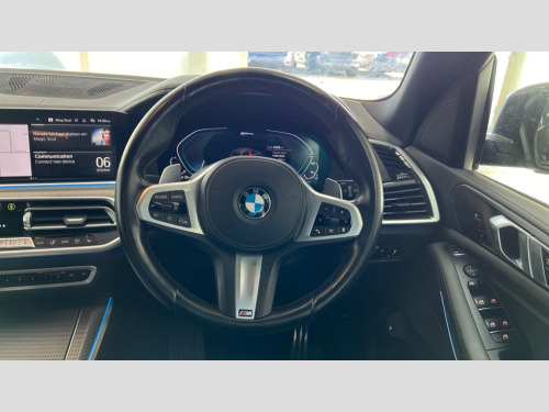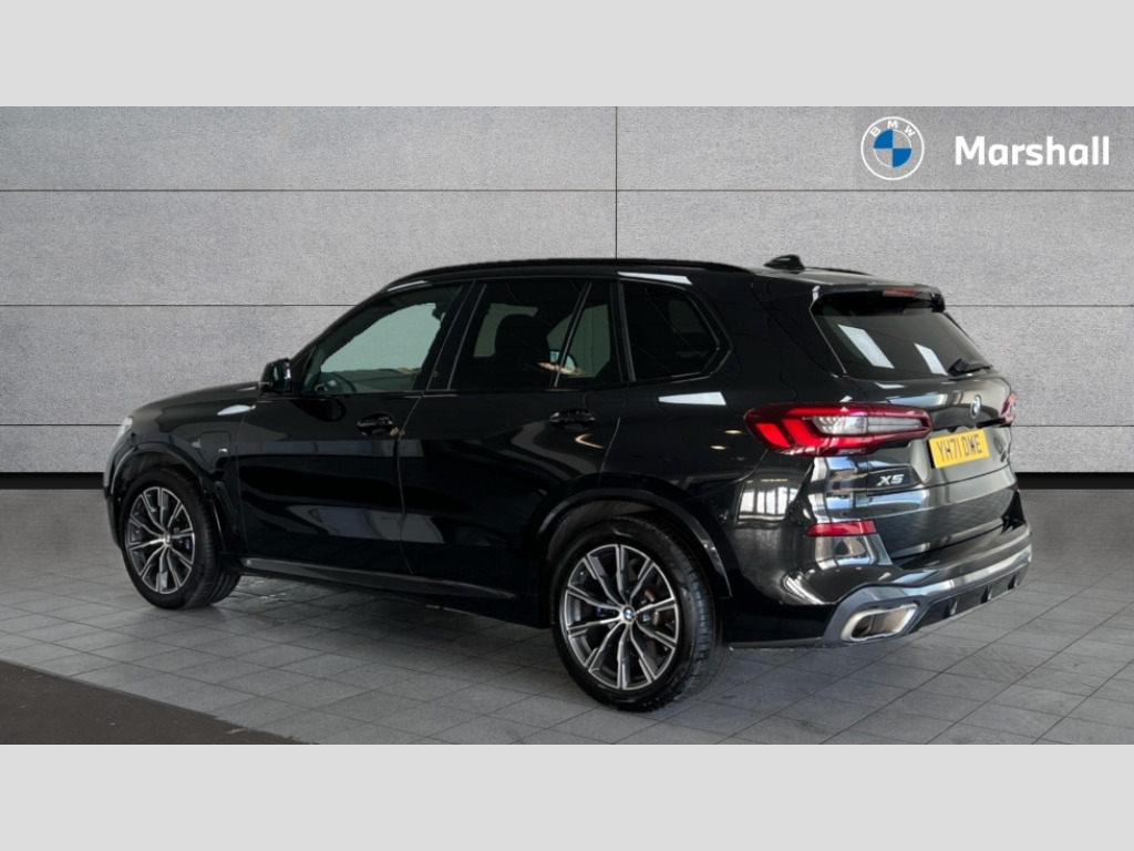 BMW X5 xDrive45e M Sport 5dr Auto 20GB hard disc drive (HDD) memory, Active guard plus, Attentiveness assist, Automatic tailgate with top hinged section open and manual bottom hinged section, BMW ConnectedDrive online services, BMW digital live cockpit professional - 12.3" digital instrument panel and 12.3" CID, with touch/voice command, BMW legal emergency call, BMW Teleservices, Brake force display, Brake pad wear indicator warning light, Cruise control with brake assist, eDrive button to select between AUTO eDrive, MAX eDrive and SAVE Battery settings, Front/rear park distance control, Galvanised plastic keyfob, Infinity symbol with line graphic on reset of average consumption, Lights on warning, Oil sensor for level and grade, On board computer inc. average speed, fuel consumption, liquid crystal Info display, journey computer, outside temperature display, personal profile, Service interval indicator, Speed limit info display, Speed limiting function, 5 metre AC Fast charge cable, Adaptive 2-axle air suspension, Double VANOS, Double wishbone front axle, Drive performance control with ECO PRO comfort + sport mode, eDrive exterior sound, Eight speed steptronic sport automatic transmission and gearshift paddles on the steering wheel, High precision injection, Petrol Particulate Filter, Safety battery terminal clamp, Standard Charging cable (Mode 2) for home socket, Twin scroll turbocharger with Valvetronic, DAB Tuner enables digital radio reception, Favourite buttons, USB connection, USB type A 1.5A in cupholder, USB Type C 3A in centre armrest, Active Air Stream kidney grille with high-gloss chrome, Adaptive air flap control bar in high-gloss black, Automatically dimming rear view mirror, BMW Individual high gloss black shadow line roof rails, Body colour bumpers, Body colour door handles, Dynamic brake lights with LED technology, Exhaust tailpipes - single, left and right with Chrome finisher, Follow me home headlight function, Front and rear electric windows with open and close fingertip control, anti trap facility and comfort closing, Heated windscreen washer jets, High beam assistant, High gloss black outer and central air intakes on front bumper with pearlescent chrome finish, High gloss black Side elements, LED daytime running lights, LED rear lights, Left charging flap on the front side, M aerodynamic body styling, M designation on left and right front side panels, Pearlescent chrome front grille bars, Rain sensor with automatic headlight activation and windscreen wiper control, Satin aluminium side window graphic, Third brake light in rear spoiler, Variable intermittent rear wash/wipe, Welcome light carpet, X5 on left tailgate, xDrive designation on right tailgate, 12V - Power sockets with 2x centre console and 1x luggage compartment, 40:20:40 split folding rear seats, Ambient interior lighting with 6 pre-designed selectable lights including dynamic function, Centre and rear interior light, Child seat ISOFIX attachment with rear outer seats includes top tether, Compartment in front of cupholder, Electric front seat adjustment with driver and front passenger memory function, Electrical steering column with adjustable height and length with activation and control on the steering column, Foldable rear centre armrest with 2 cupholders and storage compartment, Front and rear cupholders x 2, Front and rear door pockets, Front and rear door sill inlays with illuminated BMW M designation, Front and rear side armrest integrated into door trim, Front footwell lights, Front reading lights, Light inside glove compartment, Lockable glove compartment, Luggage compartment floor panel with integral storage tray, Luggage compartment lighting, M leather steering wheel, M specific key, M specific pedals, M specific steering wheel, M specific velour floor mats, Make-up mirror lights, Multifunction controls for leather steering wheel, Multifunctional hooks, Rear head restraints, Seat back with flap pocket, Securing rings in luggage compartment, Storage bins on all doors, Storage tray and compartment with cover in centre console, Sunvisors with illuminated vanity mirrors, Toolkit located in luggage compartment, Connected Package Professional - X5 xDrive45e, Expanded exterior mirror pack - X5/X5 M, Non-smokers pack - X5, Acoustic protection for pedestrians, Airbags - driver/front passenger, rear and side, first and second row seats head airbags, front passenger seat airbag deactivation + knee airbag, Anti-lock braking system (ABS), Automatic Stability Control (ASC), Brake drying, Brake energy regeneration, Brake fade compensation, Braking pre-tensioning, Cornering brake control (CBC), Crash sensor activating central locking release, hazard warning lights, fuel cut off, interior lighting + activation of safety battery terminal clamp, Deformation zones - front and rear with door reinforcements and bumpers up to 2.5 mph, DSC - Dynamic Stability Control, Dynamic brake control, Dynamic Traction Control - DTC, Electromechanical parking brake with automatic drive away release and auto hold function, Electronic brake force distribution, Front and rear seatbelts with seatbelt stopper, seatbelt tensioner for front and outer rear seats and belt force limiter, Front head restraints with anti-whiplash, Height adjustable front seatbelts, Hill start assistant, Integrated brake system, M Sport braking system in blue high gloss + blue painted brake calipers with M designation, Mechanical child proof lock on rear doors, Passive protection for pedestrians, Seat occupancy detection for driver and passenger side, Side impact protection, Three 3 point inertia reel seatbelts, Two tone horn, Tyre pressure monitoring system, Ventilated front and rear disc brakes, Warning triangle and first aid kit, Closing system with central locking, Driver and front passenger door centre lock switch, Locking wheel bolts, Thatcham 1 alarm system with remote control and engine immobiliser, Start/stop toggle diamond shaped trim finisher in pe