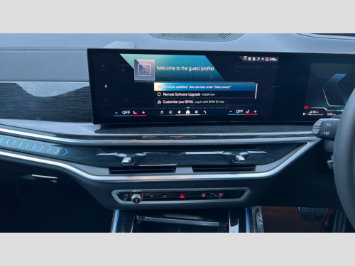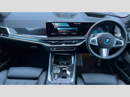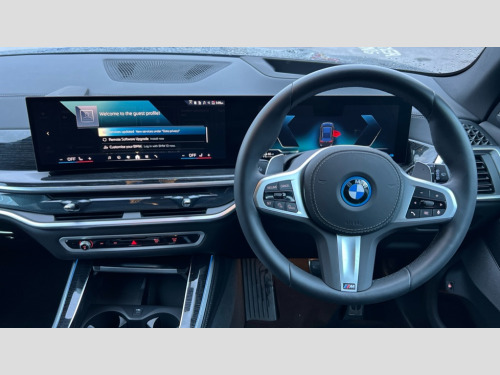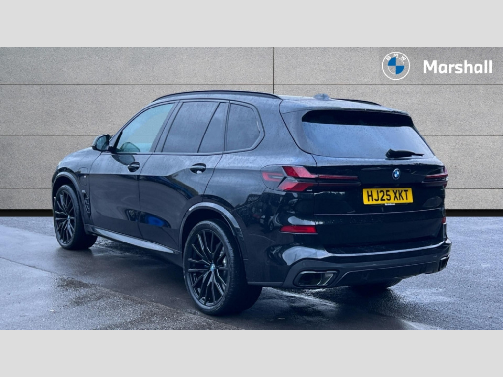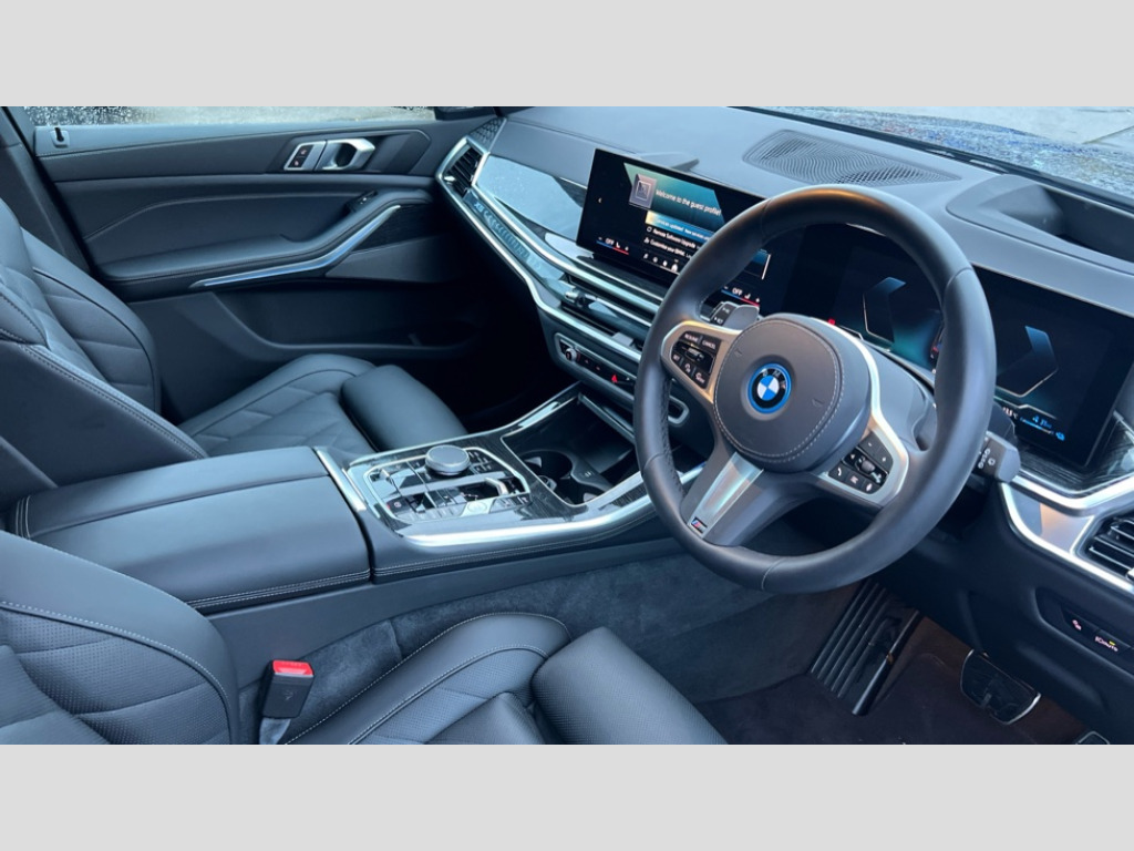 BMW X5 xDrive50e M Sport 5dr Auto Attentiveness assist, Automatic tailgate operation, BMW ConnectedDrive online services, BMW live cockpit + with curved 12.3 instrument cluster/14.9 central display,nav/Tuner with diversity reception,RDS/4GLTE/remote software upgrade, BMW Teleservices, Condition based service, Cruise control with brake assist, eCall emergency call system, Enhanced bluetooth with wireless charging, Integrated owner's handbook, PAS, Speed limiter, Wi-Fi hotspot, AC Fast charging preparation (Maximum charging power 11kW), Adaptive 2-axle Front and rear air suspension, Drive performance control with ECO PRO comfort + sport mode, Eight speed steptronic sport automatic transmission and gearshift paddles on the steering wheel, Adaptive LED Headlights, Front and rear electric windows, High beam assistant, High gloss black shadow line roof rails, LED daytime running lights, Rain sensor, Rear side wing doors, Third brake light in rear spoiler, Variable intermittent rear wash/wipe, 12V - Power sockets with 2x centre console and 1x luggage compartment, 3 seat bench in 2nd row, Foldable rear centre armrest with 2 cupholders and storage compartment, Front and rear side armrest integrated into door trim, Headrests for all seats, Luggage compartment separating net, Lumbar support with height and depth adjustment in backrest, Single front passenger seat, Three spoke sport M leather steering wheel, Velour floormats, Ambient light interior pack - X5, Driving assistant pack with radar based driver assistance system - X5, Expanded exterior mirror pack - X5/X5 M, M aerodynamics pack - X5, Parking assistant pack - X5, 3 rear seatbelts, Acoustic protection for pedestrians, Active protection, Airbags - driver/front passenger, rear and side, first and second row seats head airbags, front passenger seat airbag deactivation + knee airbag, Anti-lock braking system (ABS), Automatic Stability Control (ASC), Brake energy regeneration, Cornering brake control (CBC), Crash sensor activating central locking release, hazard warning lights, fuel cut off, interior lighting + activation of safety battery terminal clamp, DSC - Dynamic Stability Control, Dynamic Traction Control - DTC, Electromechanical parking brake with automatic drive away release and auto hold function, Electronic brake force distribution, Hill start assistant, M Sport blue painted brake calipers with 'M' designation, Mechanical child proof lock on rear doors, Tyre pressure monitoring system, Tyre pressure sensors, Ventilated front and rear disc brakes, Warning triangle and first aid kit, Alarm system, Closing system with central locking, Comfort access system, Locking wheel bolts