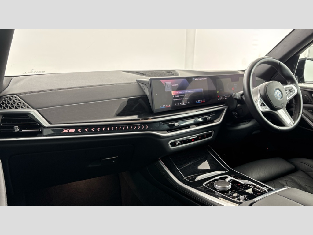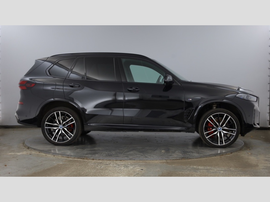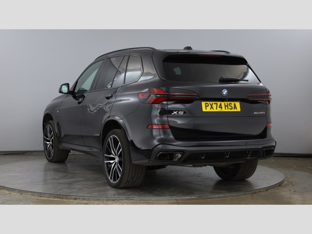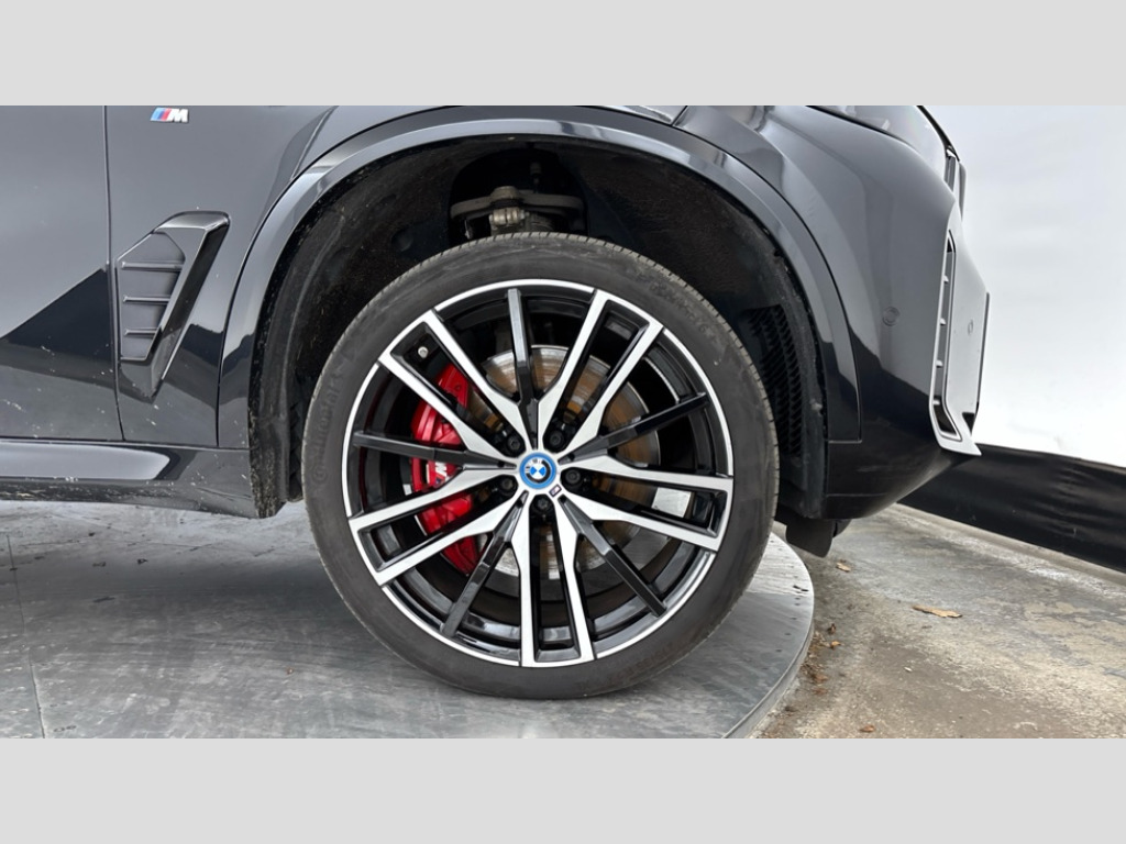 BMW X5 xDrive50e M Sport 5dr Auto Attentiveness assist, Automatic tailgate operation, BMW ConnectedDrive online services, BMW live cockpit + with curved 12.3 instrument cluster/14.9 central display,nav/Tuner with diversity reception,RDS/4GLTE/remote software upgrade, BMW Teleservices, Condition based service, Cruise control with brake assist, eCall emergency call system, Enhanced bluetooth with wireless charging, Integrated owner's handbook, PAS, Speed limiter, Wi-Fi hotspot, AC Fast charging preparation (Maximum charging power 11kW), Adaptive 2-axle Front and rear air suspension, Drive performance control with ECO PRO comfort + sport mode, Eight speed steptronic sport automatic transmission and gearshift paddles on the steering wheel, Adaptive LED Headlights, BMW Iconic glow kidney grille, Front and rear electric windows, High beam assistant, High gloss black shadow line roof rails, LED daytime running lights, Rain sensor, Rear side wing doors, Third brake light in rear spoiler, Variable intermittent rear wash/wipe, 12V - Power sockets with 2x centre console and 1x luggage compartment, 3 seat bench in 2nd row, Entry sills illuminated BMW inscription front and rear, Foldable rear centre armrest with 2 cupholders and storage compartment, Front and rear side armrest integrated into door trim, Grab handles in 1st and 2nd row of seats with Integrated in headliner, at rear with coat hooks, plastic, Headrests for all seats, Luggage compartment separating net, Lumbar support with height and depth adjustment in backrest, Single front passenger seat, Sunvisors with illuminated vanity mirrors and ticket pocket, Three spoke sport M leather steering wheel, Velour floormats, Ambient light interior pack - X5, Driving assistant pack with radar based driver assistance system - X5, Expanded exterior mirror pack - X5/X5 M, M aerodynamics pack - X5, M sport pro package - X5 50e, Parking assistant pack - X5, Acoustic protection for pedestrians, Active protection, Airbags - driver/front passenger, rear and side, first and second row seats head airbags, front passenger seat airbag deactivation + knee airbag, Anti-lock braking system (ABS), Automatic Stability Control (ASC), Black M sports seatbelts with coloured M seam for all seats, Brake energy regeneration, Cornering brake control (CBC), Crash sensor activating central locking release, hazard warning lights, fuel cut off, interior lighting + activation of safety battery terminal clamp, DSC - Dynamic Stability Control, Dynamic Traction Control - DTC, Electromechanical parking brake with automatic drive away release and auto hold function, Electronic brake force distribution, Hill start assistant, Mechanical child proof lock on rear doors, Tyre pressure monitoring system, Tyre pressure sensors, Ventilated front and rear disc brakes, Warning triangle and first aid kit, Alarm system, Closing system with central locking, Comfort access system, Locking wheel bolts