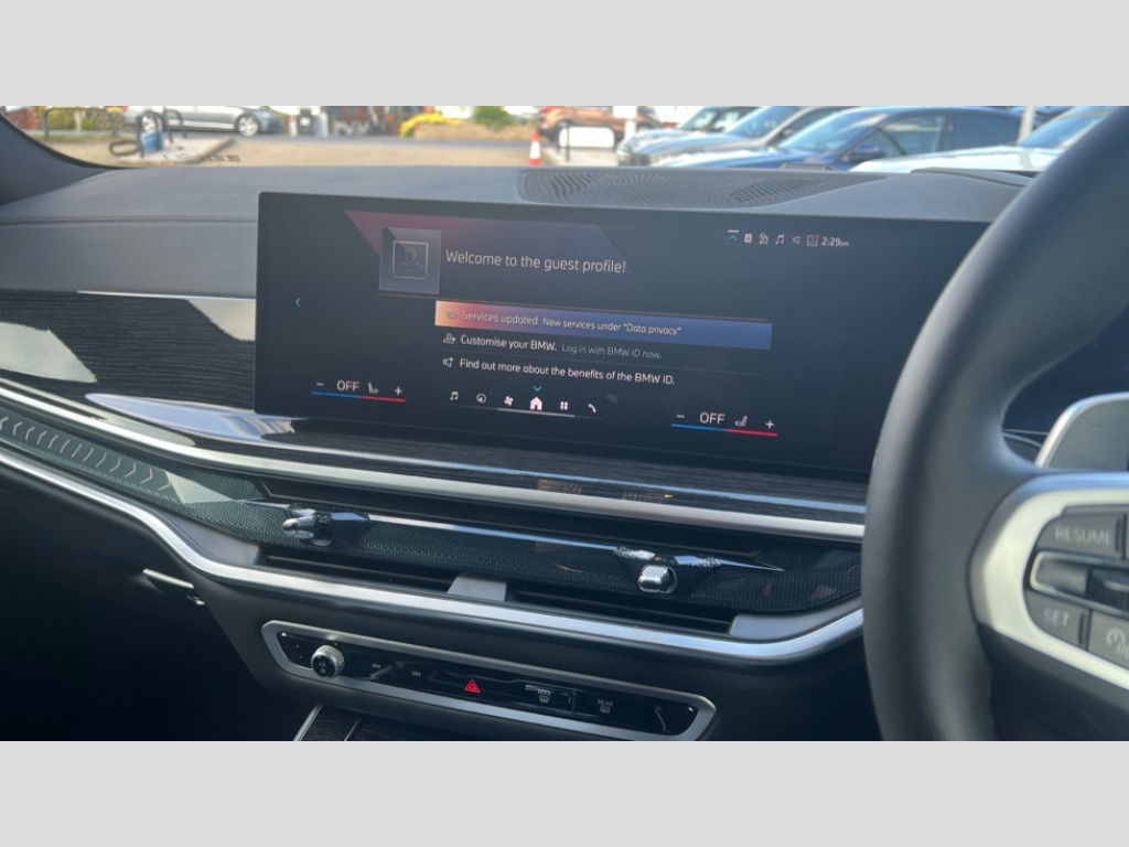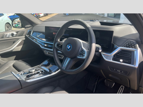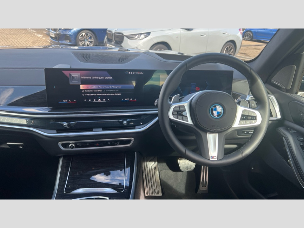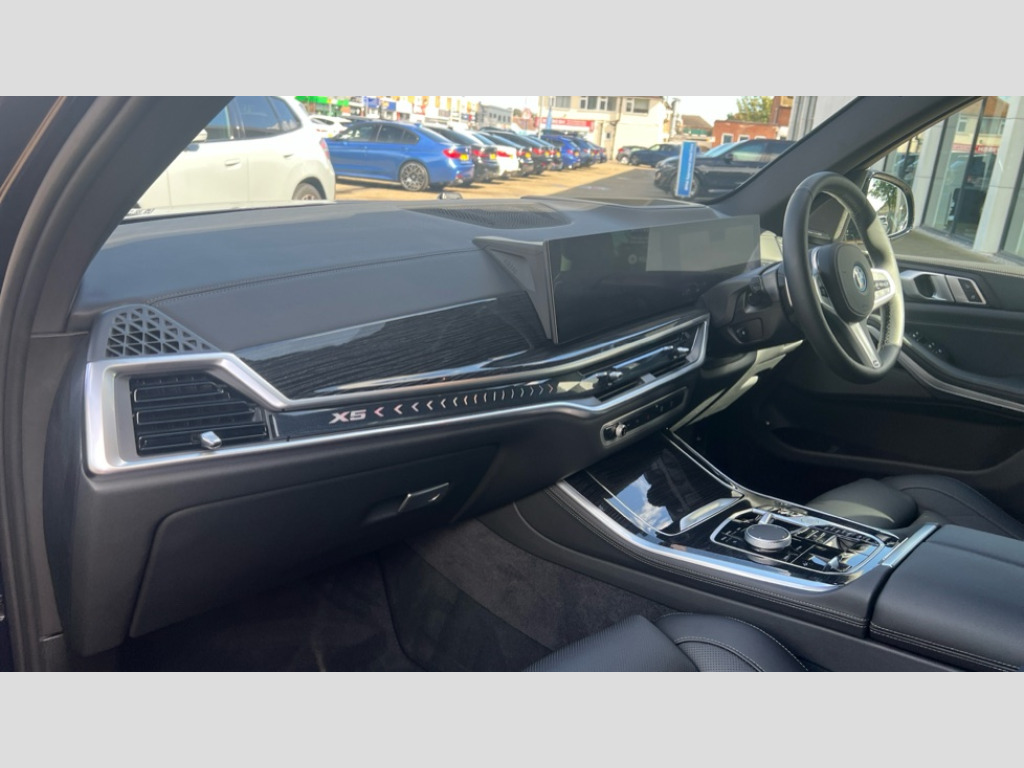 BMW X5 xDrive50e M Sport 5dr Auto Attentiveness assist, Automatic tailgate operation, BMW ConnectedDrive online services, BMW Teleservices, Condition based service, Cruise control with brake assist, eCall emergency call system, Enhanced bluetooth with wireless charging, Integrated owner's handbook, Navigation/Tuner with diversity reception,RDS/4GLTE/remote software upgrade, PAS, Speed limiter, Wi-Fi hotspot, AC Fast charging preparation (Maximum charging power 11kW), Adaptive 2-axle Front and rear air suspension, Drive performance control with ECO PRO comfort + sport mode, Eight speed steptronic sport automatic transmission and gearshift paddles on the steering wheel, Adaptive LED Headlights, BMW Iconic glow kidney grille, Front and rear electric windows, High beam assistant, High gloss black shadow line roof rails, LED daytime running lights, Rain sensor, Rear side wing doors, Third brake light in rear spoiler, Variable intermittent rear wash/wipe, 12V - Power sockets with 2x centre console and 1x luggage compartment, 3 seat bench in 2nd row, Foldable rear centre armrest with 2 cupholders and storage compartment, Front and rear side armrest integrated into door trim, Headrests for all seats, Luggage compartment separating net, Lumbar support with height and depth adjustment in backrest, Single front passenger seat, Three spoke sport M leather steering wheel, Velour floormats, Ambient light interior pack - X5, Driving assistant pack with radar based driver assistance system - X5, Expanded exterior mirror pack - X5/X5 M, M aerodynamics pack - X5, M sport pro package - X5 50e, 3 rear seatbelts, Acoustic protection for pedestrians, Active protection, Airbags - driver/front passenger, rear and side, first and second row seats head airbags, front passenger seat airbag deactivation + knee airbag, Anti-lock braking system (ABS), Automatic Stability Control (ASC), Brake energy regeneration, Cornering brake control (CBC), Crash sensor activating central locking release, hazard warning lights, fuel cut off, interior lighting + activation of safety battery terminal clamp, DSC - Dynamic Stability Control, Dynamic Traction Control - DTC, Electromechanical parking brake with automatic drive away release and auto hold function, Electronic brake force distribution, Hill start assistant, Mechanical child proof lock on rear doors, Tyre pressure monitoring system, Tyre pressure sensors, Ventilated front and rear disc brakes, Warning triangle and first aid kit, Alarm system, Closing system with central locking, Comfort access system, Locking wheel bolts