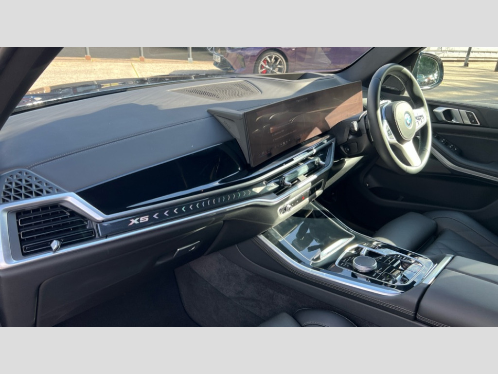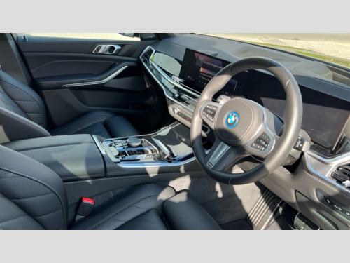 BMW X5 xDrive50e M Sport 5dr Auto Attentiveness assist, Automatic tailgate operation, BMW ConnectedDrive online services, BMW Teleservices, Condition based service, Cruise control with brake assist, eCall emergency call system, Enhanced bluetooth with wireless charging, Integrated owner's handbook, Navigation/Tuner with diversity reception,RDS/4GLTE/remote software upgrade, PAS, Speed limiter, Wi-Fi hotspot, AC Fast charging preparation (Maximum charging power 11kW), Adaptive 2-axle Front and rear air suspension, Drive performance control with ECO PRO comfort + sport mode, Eight speed steptronic sport automatic transmission and gearshift paddles on the steering wheel, Adaptive LED Headlights, BMW Iconic glow kidney grille, Front and rear electric windows, High beam assistant, High gloss black shadow line roof rails, LED daytime running lights, Rain sensor, Rear side wing doors, Third brake light in rear spoiler, Variable intermittent rear wash/wipe, 12V - Power sockets with 2x centre console and 1x luggage compartment, 3 seat bench in 2nd row, Foldable rear centre armrest with 2 cupholders and storage compartment, Front and rear side armrest integrated into door trim, Headrests for all seats, Luggage compartment separating net, Lumbar support with height and depth adjustment in backrest, Single front passenger seat, Three spoke sport M leather steering wheel, Velour floormats, Ambient light interior pack - X5, Driving assistant pack with radar based driver assistance system - X5, Expanded exterior mirror pack - X5/X5 M, M aerodynamics pack - X5, M sport pro package - X5 50e, 3 rear seatbelts, Acoustic protection for pedestrians, Active protection, Airbags - driver/front passenger, rear and side, first and second row seats head airbags, front passenger seat airbag deactivation + knee airbag, Anti-lock braking system (ABS), Automatic Stability Control (ASC), Brake energy regeneration, Cornering brake control (CBC), Crash sensor activating central locking release, hazard warning lights, fuel cut off, interior lighting + activation of safety battery terminal clamp, DSC - Dynamic Stability Control, Dynamic Traction Control - DTC, Electromechanical parking brake with automatic drive away release and auto hold function, Electronic brake force distribution, Hill start assistant, Mechanical child proof lock on rear doors, Tyre pressure monitoring system, Tyre pressure sensors, Ventilated front and rear disc brakes, Warning triangle and first aid kit, Alarm system, Closing system with central locking, Comfort access system, Locking wheel bolts