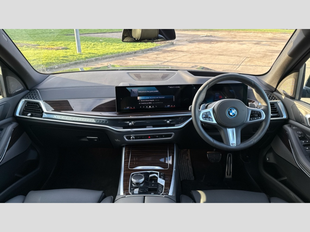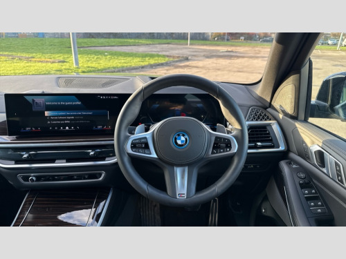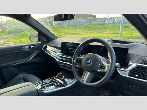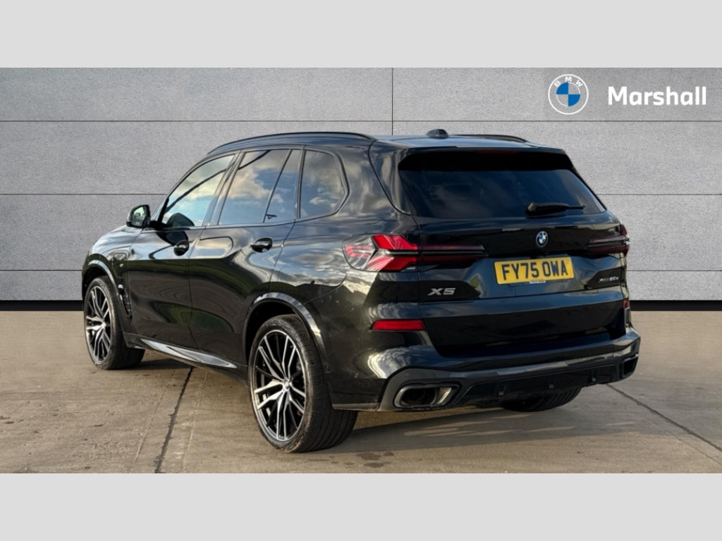 BMW X5 xDrive50e M Sport 5dr Auto Attentiveness assist, Automatic tailgate operation, BMW ConnectedDrive online services, BMW Teleservices, Condition based service, Cruise control with brake assist, eCall emergency call system, Enhanced bluetooth with wireless charging, Integrated owner's handbook, Navigation/Tuner with diversity reception,RDS/4GLTE/remote software upgrade, PAS, Speed limiter, Wi-Fi hotspot, AC Fast charging preparation (Maximum charging power 11kW), Adaptive 2-axle Front and rear air suspension, Drive performance control with ECO PRO comfort + sport mode, Eight speed steptronic sport automatic transmission and gearshift paddles on the steering wheel, Adaptive LED Headlights, BMW Iconic glow kidney grille, Front and rear electric windows, High beam assistant, High gloss black shadow line roof rails, LED daytime running lights, Rain sensor, Rear side wing doors, Third brake light in rear spoiler, Variable intermittent rear wash/wipe, 12V - Power sockets with 2x centre console and 1x luggage compartment, 3 seat bench in 2nd row, Foldable rear centre armrest with 2 cupholders and storage compartment, Front and rear side armrest integrated into door trim, Headrests for all seats, Luggage compartment separating net, Lumbar support with height and depth adjustment in backrest, Single front passenger seat, Three spoke sport M leather steering wheel, Velour floormats, Ambient light interior pack - X5, Driving assistant pack with radar based driver assistance system - X5, Expanded exterior mirror pack - X5/X5 M, M aerodynamics pack - X5, M sport pro package - X5 50e, 3 rear seatbelts, Acoustic protection for pedestrians, Active protection, Airbags - driver/front passenger, rear and side, first and second row seats head airbags, front passenger seat airbag deactivation + knee airbag, Anti-lock braking system (ABS), Automatic Stability Control (ASC), Brake energy regeneration, Cornering brake control (CBC), Crash sensor activating central locking release, hazard warning lights, fuel cut off, interior lighting + activation of safety battery terminal clamp, DSC - Dynamic Stability Control, Dynamic Traction Control - DTC, Electromechanical parking brake with automatic drive away release and auto hold function, Electronic brake force distribution, Hill start assistant, Mechanical child proof lock on rear doors, Tyre pressure monitoring system, Tyre pressure sensors, Ventilated front and rear disc brakes, Warning triangle and first aid kit, Alarm system, Closing system with central locking, Comfort access system, Locking wheel bolts