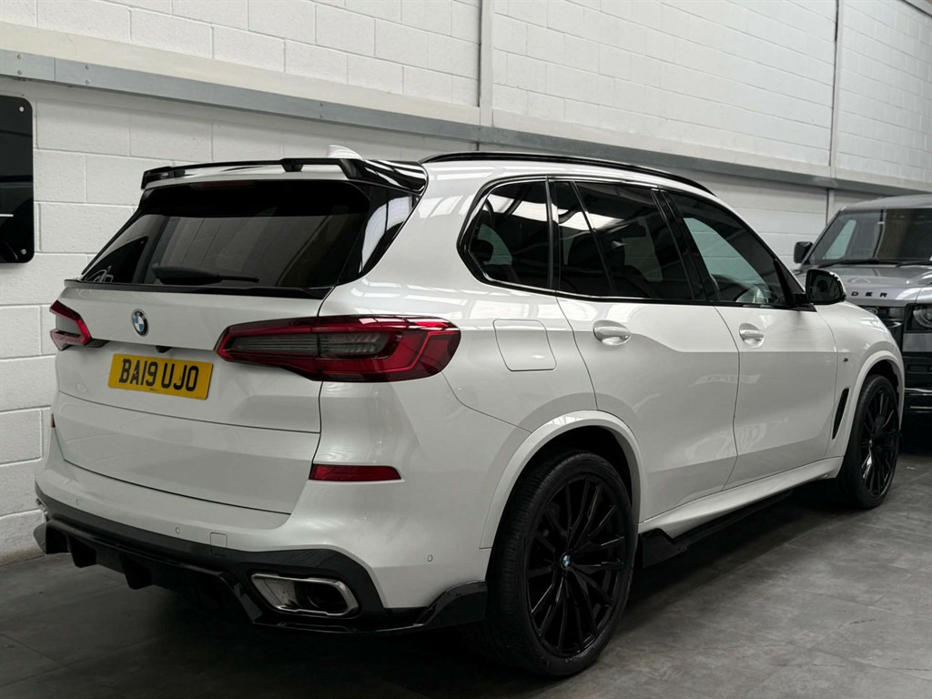 Full Service History, Sat Nav, M Performance Kit, Black Pack, 360 Surround View Cameras, Harman Kardon Sound System, 20GB Hard Disc Drive HDD Memory,Active Air Stream Kidney Grille,Active Guard Plus,Adaptive 2-Axle Air Suspension,Adaptive Air Flap Control Bar - High-Gloss Black,Air Conditioning - Automatic with 2.5 Zone Control,Airbags - Driver - Front Passenger- Rear and Side,Alarm System - Thatcham 1 with Remote Control and Engine Immobiliser,Ambient Interior Lighting,Armrest - Front and Rear Integrated into Door Trim,Attentiveness Assistant,Automatically Dimming Rear View Mirror,BMW Connected Package Professional,BMW ConnectedDrive Online Services,BMW Gesture Control,BMW Individual High-Gloss Shadowline,BMW Individual Roof Rails High-Gloss Shadow Line,BMW Live Cockpit Professional,BMW TeleServices,Brake Force Display,Brake System,Brake-Pad Wear Indicator,Centre Armrest - Rear - Foldable with 2 Cupholders and Storage Compartment,Centre Console Includes Storage Compartment,Centre Lock Switch - Driver and Front Passenger Door,Child Seat ISOFIX Attachment - Outer Rear Seats - includes Top Tether,Closing System with Central Locking,Compartment in Front of Cupholder,Crash Sensor - Activating Central Locking Release - Hazard Warning Lights - Fuel Cut Off - Interior Lighting and Activation of the Safety Battery Clamp,Cruise Control with Brake Function,Cup Holders - Front x2 and Rear x2,DAB Tuner,DSC - Dynamic Stability Control - Stabilises the Vehicle in Extreme Situations - Controls Traction,Daytime Running Lights - LED,Deformation Zones - Front and Rear,Door Pockets - Front and Rear,Door Sill Inlays - BMW M Designation Illuminated,Drive Performance Control with ECO PRO - Comfort and Sport,Dynamic Brake Lights with LED Technology,EPS - Electric Power Steering with Servotronic,Electric Windows - Front and Rear with Open-Close Fingertip Control - Anti-Trap Facility and Comfort Closing Function,Electrical Steering Column with Adjustable Height and Length,Electro-Mechanical Parking Brake with Automatic Drive-Away Release and Auto-Hold Function,Enhanced Bluetooth Telephone Preparation with Wireless Charging,Exhaust Tailpipes - Single - Left and Right - Chrome,Expanded Exterior Mirror Package,Exterior Mirror Housing - Body Colour,Exterior Mirrors - Electrically Adjustable - Automatic Parking Function - Heated and Drivers Anti-Dazzle,Favourite Buttons,First Aid Kit and Warning Triangle,Follow Me Home Headlight Function,Footwell Lights - Front,Front Grille Bars - Pearlescent Chrome,Head Airbags - For First and Second Row Seats,Head Restraints - Front Anti-Whiplash,Headlining - Anthracite,Heated Windscreen Washer Jets,HiFi Loudspeaker System,Interior Light - Rear Centre,Interior Trim - Aluminium Tetragon,Knee Airbag,LED Fog Lights,LED Headlights,LED Rear Lights,Light Inside Glove Compartment,Lockable Glove Compartment,Locking Wheel Bolts,Luggage Compartment - Light,Luggage Compartment Floor Panel with Integral Storage Tray,M Aerodynamic Bodystyling,M Designation on Front Side Panels - Left and Right,M Leather Steering Wheel,M Specific Floor Mats,M Specific Key,M Specific Pedals,M Specific Steering Wheel,M Sport Braking System,Make-Up Mirror Lights,Mechanical Childproof Lock - Rear Doors,Multi-Function Controls for Leather Steering Wheel,Multifunctional Hooks,Non Smokers Package,OBC - On Board Computer,Oil Sensor For Level and Grade,Outer and Centre Air Intakes on Front Bumper - High-Gloss Black with Pearlescent Chrome Finish,PDC - Park Distance Control - Front and Rear,Parking Assistant,Passenger Seat Airbag Deactivation - Front,Passenger Seat Occupancy Sensor For Driver and Passenger Side,Passive Protection for Pedestrians,Power Sockets 12v - 2x Centre Console - 1x Luggage Compartment,Rain Sensor with Automatic Headlight Activation and Windscreen Wiper Control,Reading Lights - Front,Safety Battery - Terminal Clamp,Seat Adjustment - Front Electric with Driver Memory,Seat Back with Flap Pocket,Seat Belts Front and Rear - Seat Belt Tensioner - Front and Outer Rear Seats - Belt Force Limit,Seat Heating for Driver and Front Passenger,Side Elements - High Gloss Black,Side Impact Protection,Side Window Graphics - Satin Aluminium,Speed Limit Display,Speed Limiting Function,Split Folding Rear Seats 40-20-40 Configuration,Sport Automatic Transmission,Sport Seats for Driver and Front Passenger,Start-Stop Toggle - Diamond-Shaped Trim Finisher in Pearl Chrome,Storage Tray and Compartment with Lid in Centre Console,Sun Visors with Illuminated Vanity Mirrors,TPMS - Tyre Pressure Monitoring System,Tailgate Automatic - Two Part Top-Hinged Section Which Can Be Opened Separately and Manual Bottom-Hinged Section,Telephony with Wireless Charging,Third Brake Light - Spoiler,Toolkit Located in Luggage Compartment,Two Tone Horn,USB Connection - USB Type A 1.5A in Cupholder - USB Type C 3A in Centre Armrest,Welcome Light Carpet,WiFi Hotspot Preparation,X5 on Tailgate - Left,iDrive Touch Controller with Shortcut Buttons,xDrive Designation on Tailgate - Right,BMW Emergency Call,Door Sill Finishers with Illuminated - BMW Designation - Front and Rear,Run-Flat Tyres,M Sport Package,22in Alloy Wheels - M Light Double-Spoke Style 742 M Bicolour with Mixed Tyres,M Sport Plus Package,Sun Protection Glazing,Technology Package,Mineral White,Perforated Vernasca Leather - Black-Black