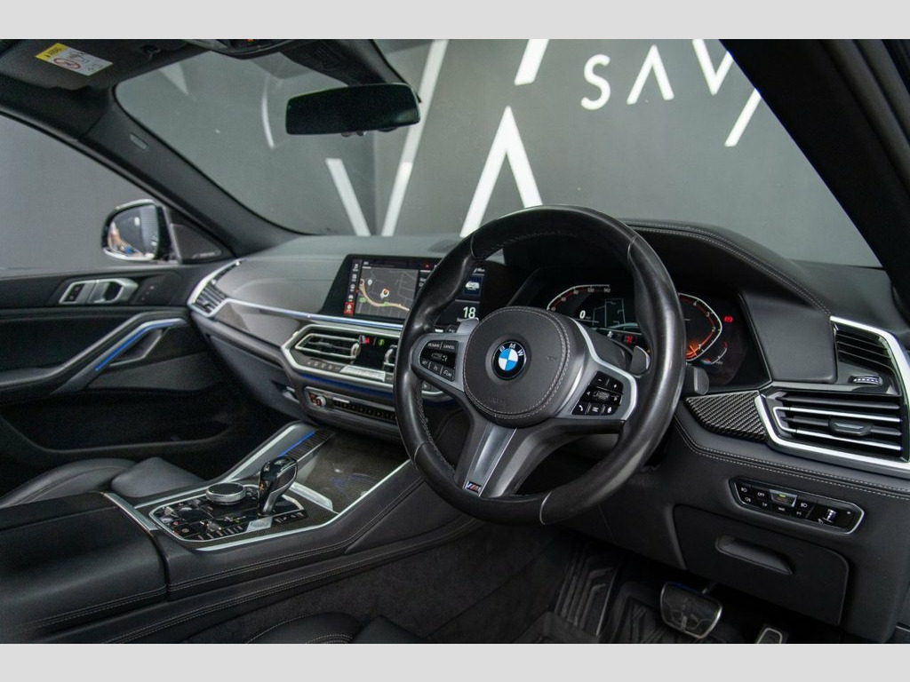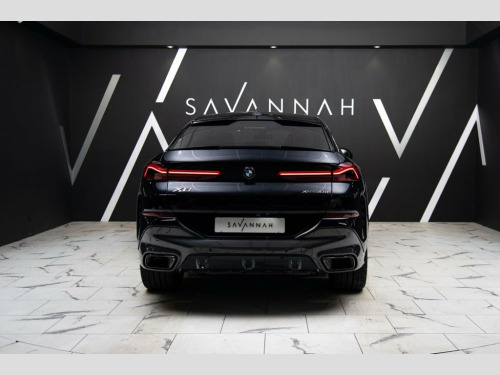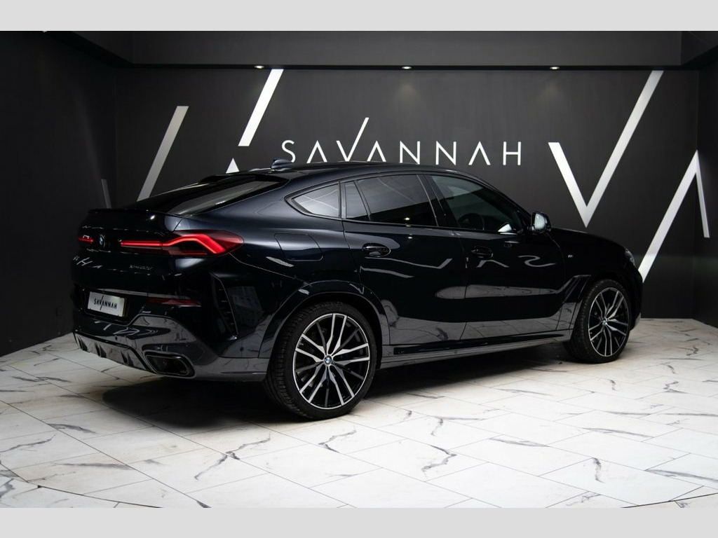 SG69YWO BMW X6 3.0 30d M Sport SUV 5dr Diesel Auto xDrive Euro 6 (s/s) (265 ps) delivers the perfect fusion of coupe-inspired styling, commanding SUV presence, and BMW's hallmark driving dynamics. Finished in Carbon Black, its striking exterior is elevated by the 22in M Light Double-Spoke Alloy Wheels, M Aerodynamic bodystyling, and BMW Icon Adaptive LED Headlights, while details such as the BMW Individual High-Gloss Shadowline with extended contents, M Sport Exhaust System, and Sun Protection Glazing enhance its athletic and sophisticated appeal. Inside, craftsmanship meets innovation with the BMW Individual Full Merino Leather upholstery in Black, complemented by the Carbon Fibre interior trim, leather instrument panel, and ambient lighting with selectable colours. Comfort and convenience are assured with four-zone automatic climate control, Comfort Package, and Technology Package, incorporating advanced features such as Gesture Control, Enhanced Bluetooth with wireless charging, and BMW Live Cockpit Professional with Navigation. Driver-focused highlights include M Sport seats with electric memory adjustment and heating, the M leather steering wheel with gearshift paddles, and the M Sport Braking System with precision stopping power. With adaptive two-axle air suspension, Drive Performance Control modes, and xDrive all-wheel drive, the X6 balances refinement with thrilling performance, making it a statement of both luxury and sporting intent. 21in Alloy Wheels - M Light Y-Spoke Styl, 40-20-40 Split Folding Rear Seats, 50GB Hard Disc Drive HDD Memory, Active Air Stream Kidney Grille - High-G, Active Guard Plus, Adaptive 2-Axle Air Suspension, Adaptive Air Flap Control Bar - High-Glo, Air Conditioning - Automatic with 2.5 Zo, Airbags, Alarm System - Thatcham 1 with Remote Co, Ambient Lighting - Colour Selection, Attentiveness Assistant, Automatically Dimming Rear View Mirror, BMW Connected Package Professional, BMW ConnectedDrive Online Services, BMW Emergency Call, BMW Icon Adaptive LED Headlights, BMW Individual Headliner - Anthracite, BMW Live Cockpit Professional, BMW TeleServices, Brake Force Display, Brake Lights with LED Tec