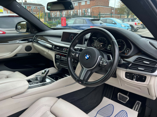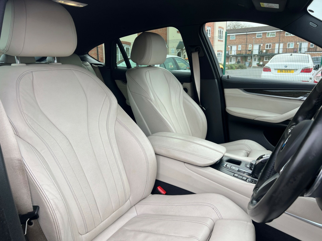 2017 BMW X6 3.0 40d M Sport SUV Auto xDrive Euro 6 (313 PS) - ULEZ Compliant Full Service History Refurbished Alloys Long MOT 6 Months AA Warranty IncludedThe 2017 BMW X6 3.0 40d M Sport is a superb blend of power, luxury, and practicality. Perfect for families or professionals seeking comfort and performance, this X6 offers a refined drive with outstanding style and capability.** Features and Technology **This M Sport model includes nearly £5,000 in extras such as 20-inch refurbished M Double Spoke Jet Black alloys, Harman Kardon sound, Head-Up Display, reversing camera, and Dakota Ivory White leather. Other features include adaptive LED headlights, electric glass sunroof, BMW Professional Navigation, dual-zone climate control, and M aerodynamic styling.** Performance and Economy **Powered by a 3.0-litre twin-turbo diesel engine producing 313 bhp, this X6 delivers strong acceleration through its smooth 8-speed automatic gearbox. The xDrive all-wheel-drive system ensures excellent grip and stability, while adaptive M suspension balances comfort and control. Ideal for long journeys or daily driving with impressive efficiency.** Comfort and Practicality **The cabin offers heated electric front seats with memory, ambient lighting, and luxury materials throughout. Spacious and versatile with split-folding rear seats, automatic tailgate, and excellent visibility, making it perfect for everyday use or long-distance travel.** Safety and Security **Equipped with multiple airbags, Dynamic Stability Control (DSC), Driving Assistant, Active Security Package, and ISOFIX points. Adaptive LED headlights with high-beam assistant enhance night visibility, and an advanced alarm system adds extra peace of mind.** Ownership and Condition **First registered on 17/03/2017, this example has covered 54,500 miles and includes full service history, 2 keys, and refurbished alloys. Comes with a Long MOT valid until 02/04/2026 and is fully ULEZ compliant. Excellent condition throughout.** AA Benefit and Warranty **• A 6-month AA warranty included, which can be extended• 12-month free AA breakdown cover• £75 gift card toward your next MOT and service• Drive away insurance available (T&Cs apply)• Finance options available** Next Steps **This BMW X6 40d M Sport is a fantastic choice and ready to drive away today. To book a test drive, request a personalised video walkaround, or reserve this car, call us on +44 7863 107747 or visit www.iandbcarsvaletingltd.co.uk v power socket - rear of centre console x2, 12v power sockets, 12v power socket - small folding compartment in centre console, 20gb hdd memory, auxiliary input point for auxiliary playing devices, bmw connecteddrive online services, bmw connecteddrive services, bmw emergency call, bmw professional radio with single cd player - with mp3 playback compatibility, bmw teleservices, bluetooth hands free with usb audio interface, concierge service, dab digital radio, full black panel display, loudspeaker system with six speakers, navigation system - bmw professional multimedia, power socket - 12v in luggage compartment, power socket - 12v in storage compartment under front centre armrest, real time traffic information, remote services, 20in alloy wheels - light m double spoke style - 469m, air breather - black high gloss, direction indicator - side repeaters - integrated in exterior mirrors, door handles - body colour, door mirrors - aspheric - tinted - heated - electric adjustment, downlights in exterior door handles, electric windows - front and rear with open-close fingertip control - anti-trap facility and comfort closing function, exhaust tailpipes - single - left and right - chrome - quadrilateral, exterior trim - high gloss shadowline, folding side mirrors with auto-dimming, indicator lenses - clear, kidney grille - high-gloss black front with black vertical slats, locking wheel bolts, m aerodynamic bodystyling, m designation on front side panels - left and right, m sport package, run flat tyres, windows - heat insulated-green tinted all round, windscreen washer jets - heated, 40-20-40 split folding rear seats, air conditioning - automatic with two-zone control and extended features, ambient lighting - colour selection, armrest - front with storage compartment, automatic start-stop button, automatically dimming rear view mirror, courtesy lights - front and rear with soft on-off dimming, cup holders - front and rear, door sill finishers - m designation, extended storage, favourite buttons, floor mats - velour, footwell lights - front with led, glove compartment - centrally-lockable and illuminated, head restraints - front and rear, headlining - anthracite, interior trim - aluminium hexagon, knee pads on centre console for driver and front passenger, luggage compartment - retractable and removable cover, m leather steering wheel with gearshift paddles, multifunction controls for steering wheel, personal profile, rain sensor with automatic headlight activation, reading lights - front, seat adjustment - front electric with driver memory, seat heating - front, smokers package, sport seats - front, steering column with manual reach and rake adjustment, storage compartment - interior door panels, sun visors with illuminated vanity mirrors, tailgate - automatic - one piece with intermediate stop function and sill finisher in stainless steel, tool kit located in luggage compartment, adaptive m suspension, brake force display, check control warning system, cruise control with brake function, eco pro mode, instrument binnacle with speedometer - tachometer - fuel level and consumption, obc - on-board computer, optimum shift indicator, pdc - park distance control - front and rear, servotronic steering, tpms - tyre pressure monitoring system, voice control, idrive touch controller with shortcut buttons, airbags, alarm system - thatcham 1 with remote control and engine immobiliser, all round anti-corrosion system with partial hot galvanising - phosphate treatment 
