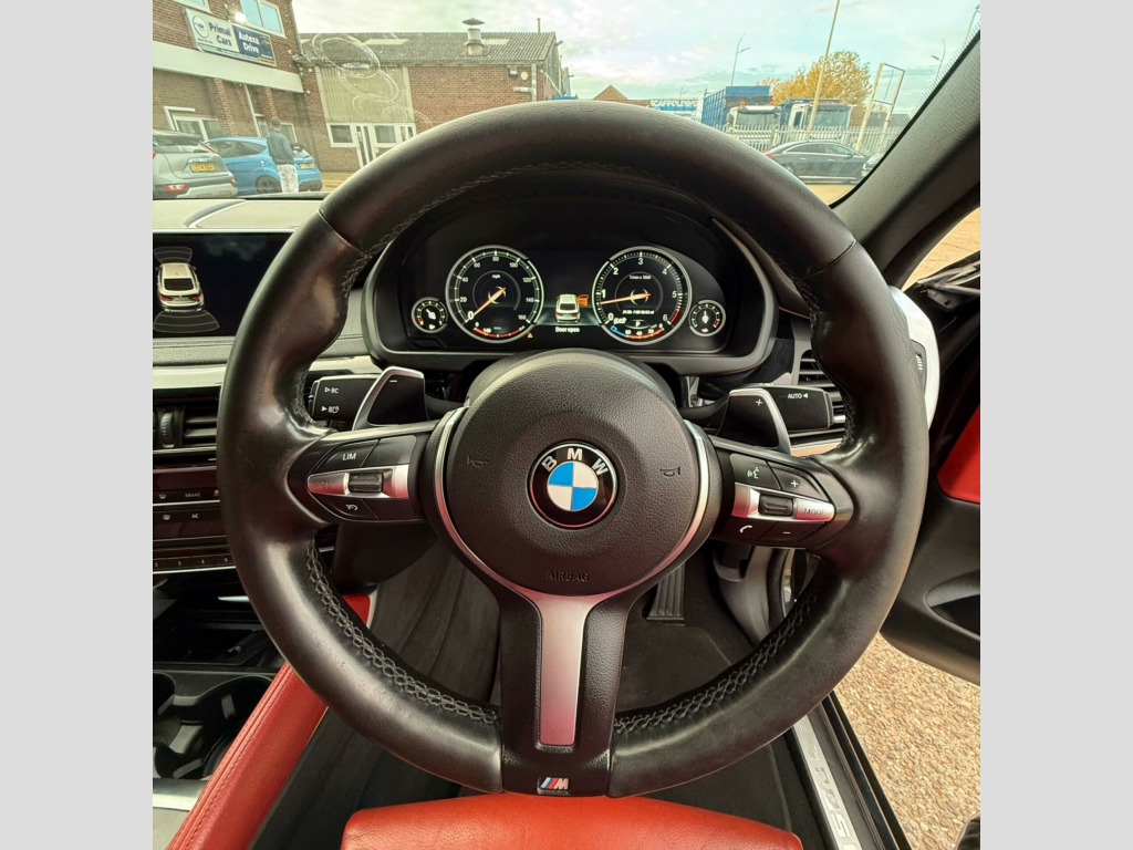 This 2015 BMW X6 M50d offers a compelling blend of performance and luxury, boasting a powerful 3.0L diesel engine and a sophisticated four wheel drive system. As a Euro 6 compliant vehicle, it meets stringent emission standards. This impressive SUV also features a premium Harman Kardon speaker system for an immersive audio experience, an electric glass sunroof to brighten the cabin, and adaptive LED headlights with high beam assist for enhanced visibility. Inside, you'll find front seats with 4 way electric lumbar support for added comfort and elegant BMW Individual Piano Black interior trim, all contributing to a refined driving environment.The X6 M50d excels with its remarkable acceleration, achieving 0-62mph in just 5.2 seconds, demonstrating its dynamic capabilities. This performance, combined with a substantial towing weight of 3500 kg and generous boot space, makes it a highly versatile vehicle. These attributes indicate how this BMW X6 M50d stands out from other similar vehicles, offering a superior combination of speed, practicality, and premium features for discerning drivers. v power socket - front x2, 12v power socket - luggage compartment, 20in alloy wheels - light m double spoke style - 468m, 40-20-40 split folding rear seats, abs - anti lock braking system, asc - automatic stability control, adaptive m sport suspension, air conditioning - automatic with two-zone control, airbags - curtain, airbags - driver, airbags - first and second seat row its head, airbags - front side, airbags - passenger, airbags - passenger deactivation, alarm system thatcham 1 with remote control, armrest - front with storage compartment, automatically dimming rear view mirror, auxiliary input, bmw apps interface, bmw connecteddrive online services, bmw emergency call, bmw professional radio - single cd and mp3, bmw teleservices, bluetooth hands free facility, brake drying, brake fade compensation, brake force display, brake pre-tensioning, cbc - cornering brake control, central locking - remote, child proof locking system - rear doors, child seat isofix attachment - rear x2, city collision mitigation, crash sensor - activating central locking-hazard warning lights-fuel cut off, cruise control with brake function, cup holders - front and rear, dab digital radio, dbc - dynamic brake control, dsc - dynamic stability control plus, dtc - dynamic traction control, daytime running lights, deformation zones - front and rear, door handles - body colour, door handles - exterior puddle lights, door mirrors - ferric grey housing, door mirrors - folding - automatically dimming, door sill finishers - m50d designation, driving assistant, ebd - electronic brake-force distribution, electric windows - front and rear with open-close fingertip control, electro-mechanical parking brake with auto-hold function, exhaust tailpipes - stainless steel with black chrome finishers left and right, exterior trim - high-gloss shadowline, first aid kit, floor mats - velour, follow me home headlight function, forward collision warning system, glove compartment - lockable and illuminated, hdc - hill descent control, head restraints - front and rear, headlights - automatic activation, headlining - anthracite, heated windscreen washer jets, high level third brake light, hill start assist, interior trim - aluminium hexagon, kidney grille - matt aluminimum with black vertical slats, led fog lights - front, lane departure warning system, locking wheel bolts, multifunction controls for steering wheel, navigation system - bmw professional multimedia, obc - on-board computer, pdc - park distance control - front and rear, pdc - park distance control - rear, preventive pedestrian protection, rain sensor, real time traffic information, run flat tyres, seat adjustment - front electric with driver memory, seats - front heated, self-levelling air suspension - rear, servotronic steering, side impact protection, smokers package, speakers x6, sport seats - front, steering column with manual reach and rake adjustment, steering wheel - sport leather multifunction - 3 spoke, sun visors with illuminated vanity mirrors, suspension - sport, tpws - tyre pressure warning system, tailgate operation - powered, tool kit located in luggage compartment, usb audio interface, vdc - variable damper control, voice control - phone, warning triangle, windows - heat insulated tinted all round, xenon headlights, idrive controller with shortcut buttons, adaptive led headlights with high-beam assistant, glass sunroof, head-up display, speaker system - harman kardon, interior trim - bmw individual - piano black, sun protection glazing, multi-functional instrument panel, seats - front 4-way electric lumbar support, high-beam assistant