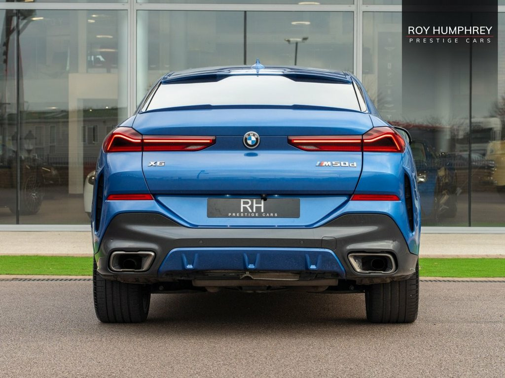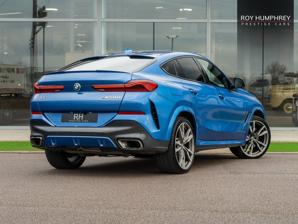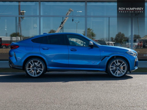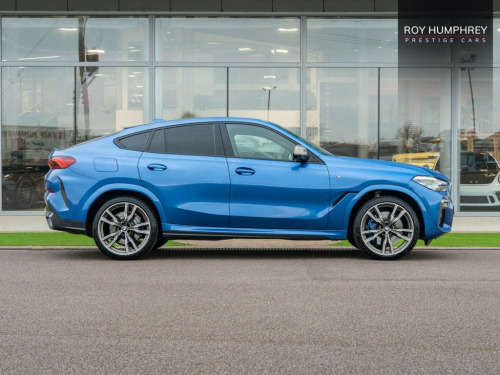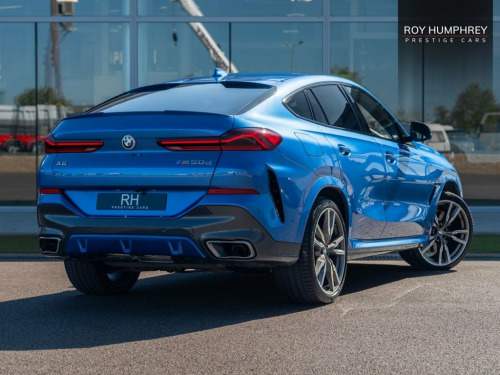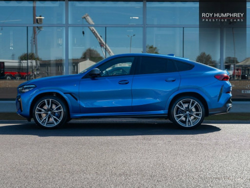 2020 (70) BMW X6 3.0 M50d xDrive finished in Riverside Blue with Vernasca Leather - Black with Brown Contrast Stitching. Further specification includes but is not limited to, 22in Alloy Wheels - M Light V-Spoke Style 747 M Bicolour with Mixed Tyres | Adaptive M Suspension | Air Conditioning - Automatic with 2.5 Zone Control | Ambient Lighting - Colour Selection | BMW Icon Adaptive LED Headlights | Cruise Control with Brake Function | Drive Performance Control with ECO PRO - Comfort and Sport Modes | Enhanced Bluetooth Telephone Preparation with Wireless Charging | M Aerodynamic Bodystyling | Loudspeaker System - Harman Kardon | High-Beam Assistant | M Leather Steering Wheel with Gearshift Paddles | M Sport Differential | M Sport Exhaust System | PDC - Park Distance Control - Front and Rear | Seat Adjustment - Front Electric with Driver Memory | Technology Package 22in Alloy Wheels - M Light V-Spoke Styl, 40-20-40 Split Folding Rear Seats, 50GB Hard Disc Drive HDD Memory, Active Guard Plus, Active Protection, Adaptive Air Flap Control Bar - High-Glo, Adaptive M Suspension, Air Conditioning - Automatic with 2.5 Zo, Airbags, Alarm System - Thatcham 1 with Remote Co, Ambient Lighting - Colour Selection, Attentiveness Assistant, Automatically Dimming Rear View Mirror, BMW Connected Package Professional, BMW ConnectedDrive Online Services, BMW Emergency Call, BMW Icon Adaptive LED Headlights, BMW Individual Headliner - Anthracite, BMW Live Cockpit Professional, BMW TeleServices, Brake Force Display, Brake Lights with LED Technology, Brake Pad Wear Indicato